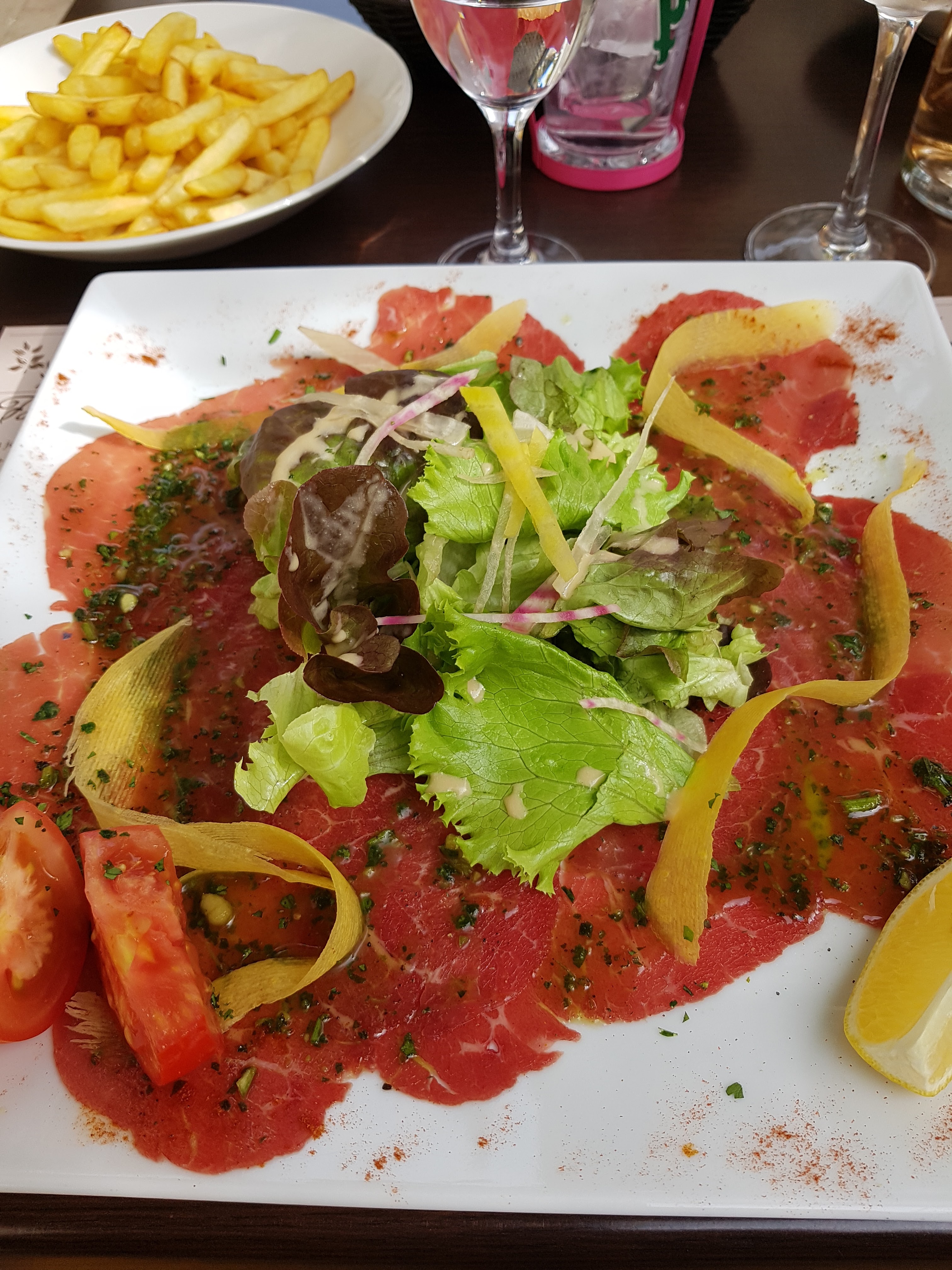 Je connaissais pour boire un verre mais pas pour manger. Pas déçu du tout!! Très belle assiette avec une viande cuite comme je l'avais demandé et de la couleur avec des légumes bien présentés et cuits juste comme il fallait. Merci à la responsable de nous avoir trouvé une place sur la terrasse malgré le monde en cette belle journée du 1er mai.