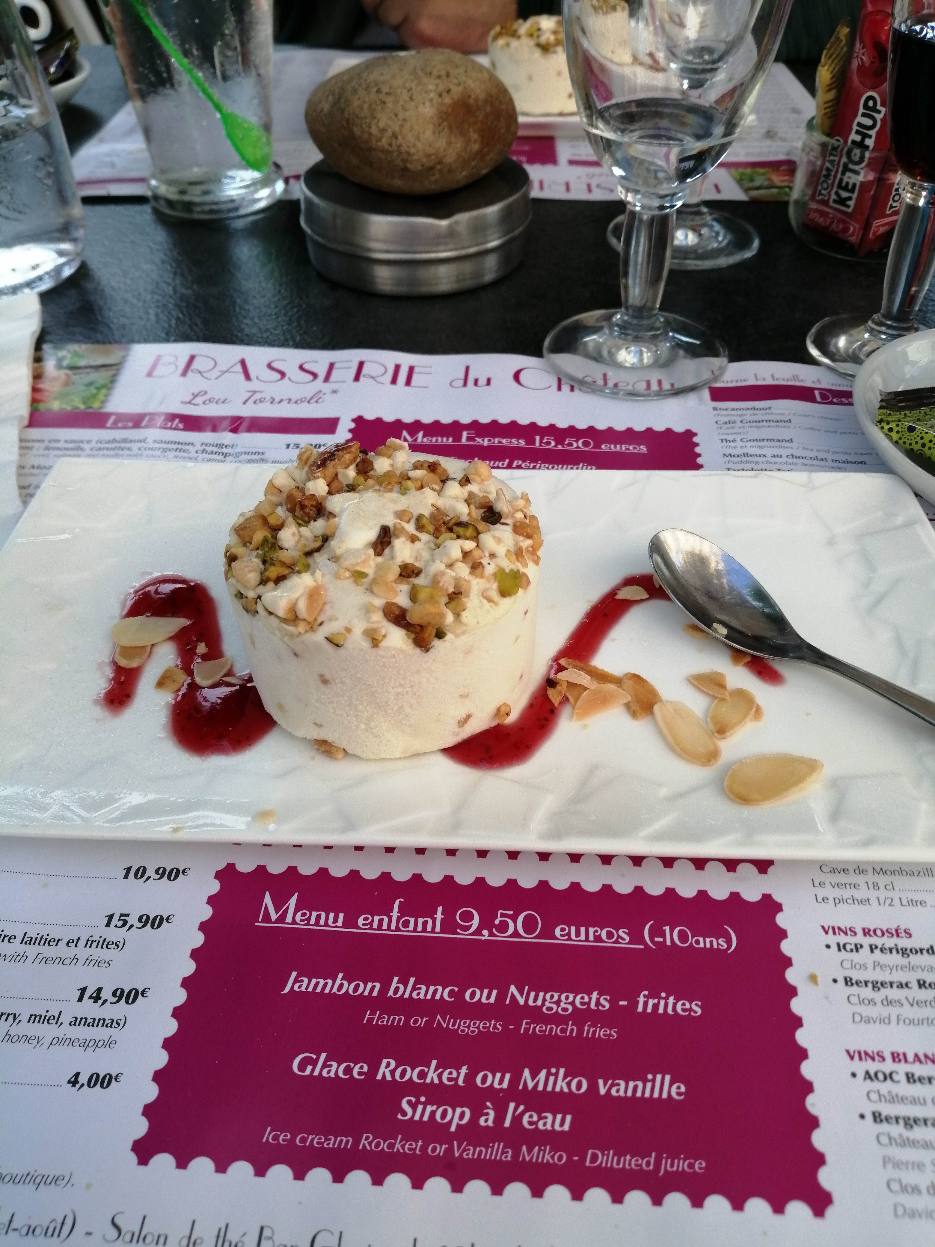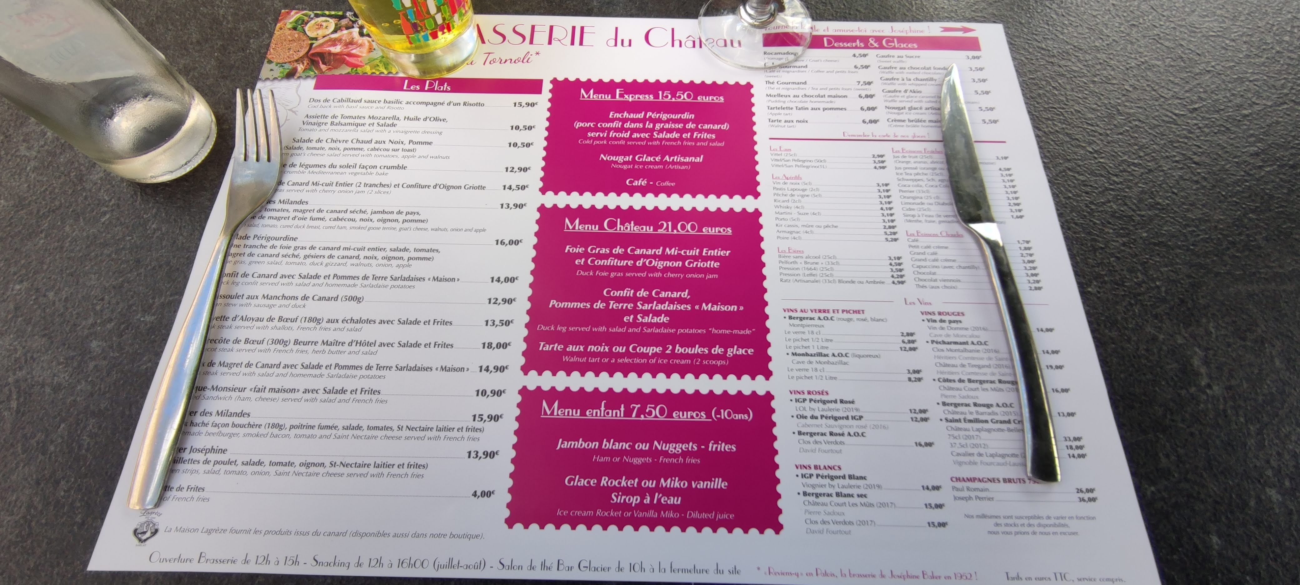 Moment de repos après la visite du château et du parc de Milandes. Repas très correct, service rapide et personnel agréable.