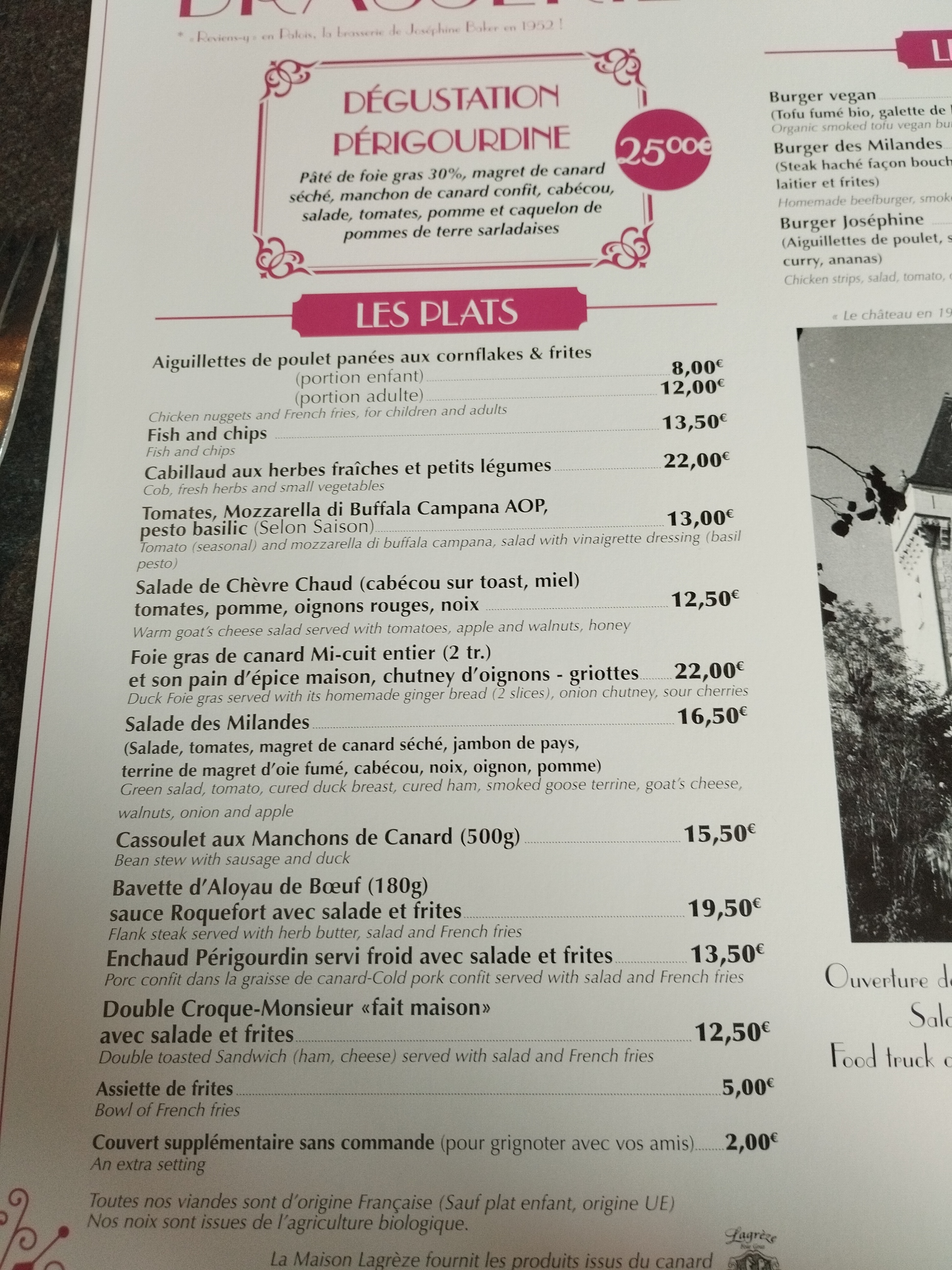La brasserie du château est une merveille. Le personnel est d une gentillesse et rapide. Nos plats très bon, copieux très savoureux. Nous avons pris le steak de canard et la salade périgourdine avec le café gourmand. Un délice !!! Nous recommandons.