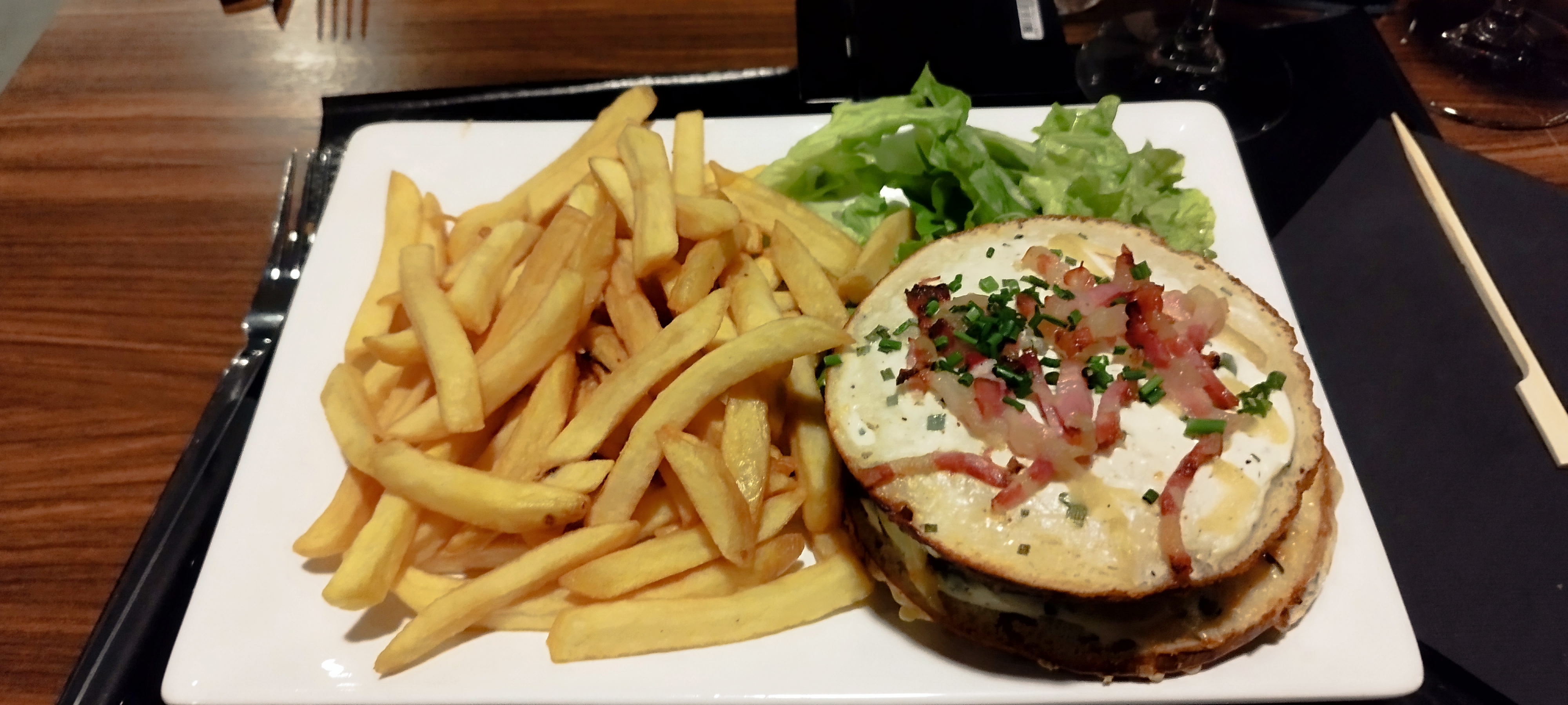 Nous étions venu un vendredi midi pour manger un Burger, malheureusement, ce n est servi que le Week-end, plat du jour banal, sans plus