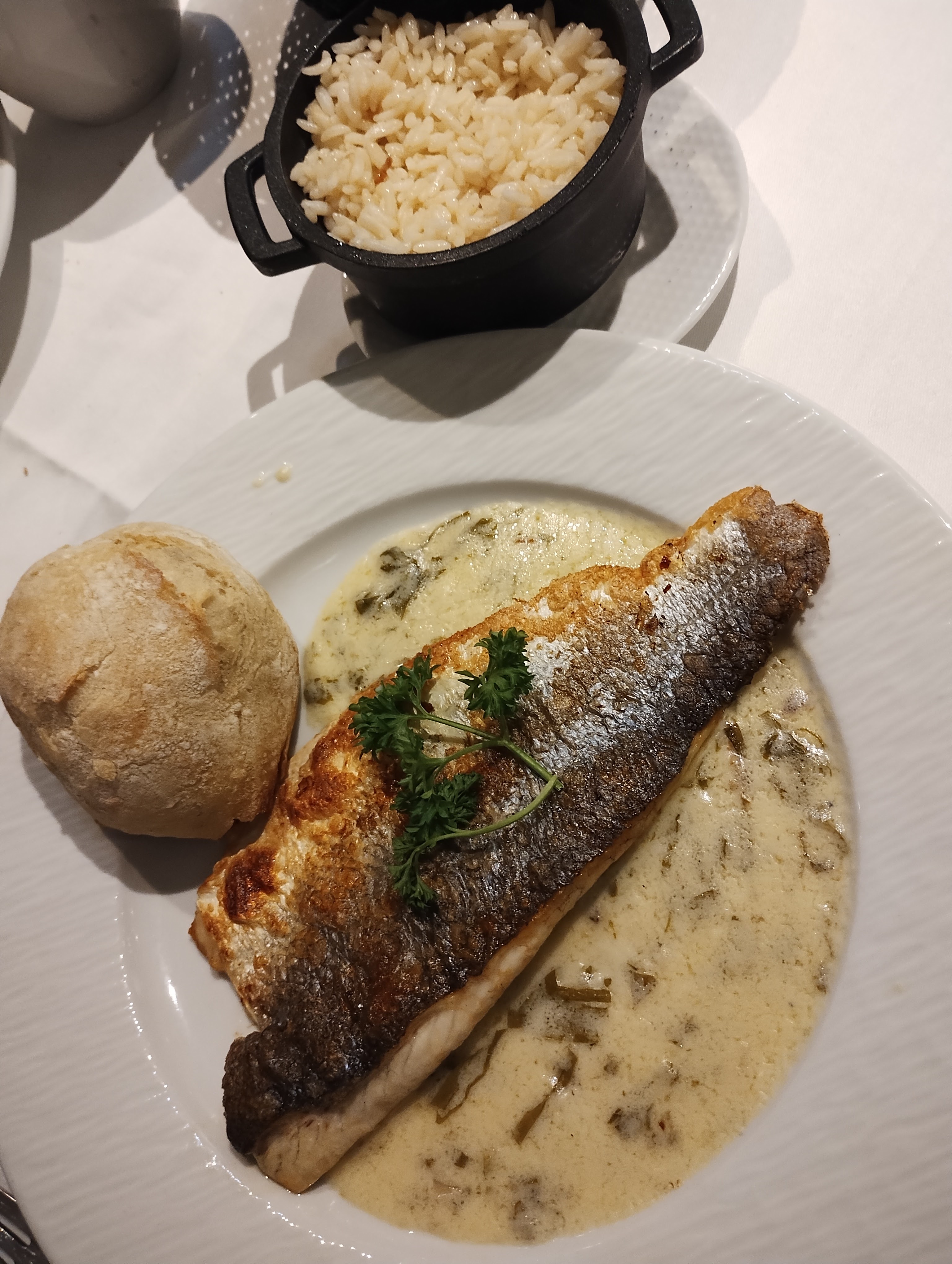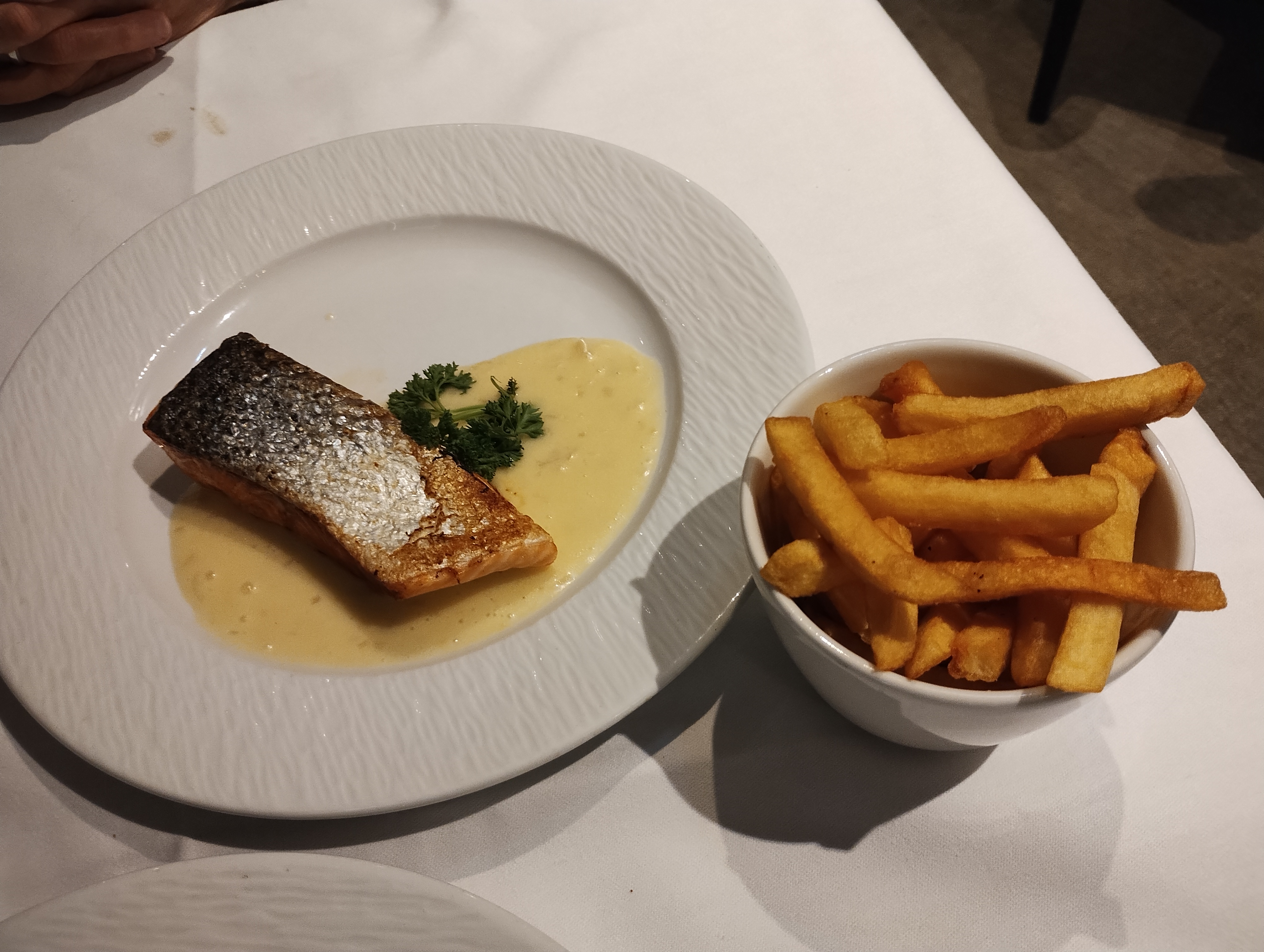 Bien dans l’ensemble, en revanche, la sauce hollandaise était tranchée, pas très agréable en bouche. Et autre chose: les serveurs ont débarrassé nos morceaux de pain entamés que nous aurions terminé si nous avions eu le temps, ils ont fini à la poubelle…
