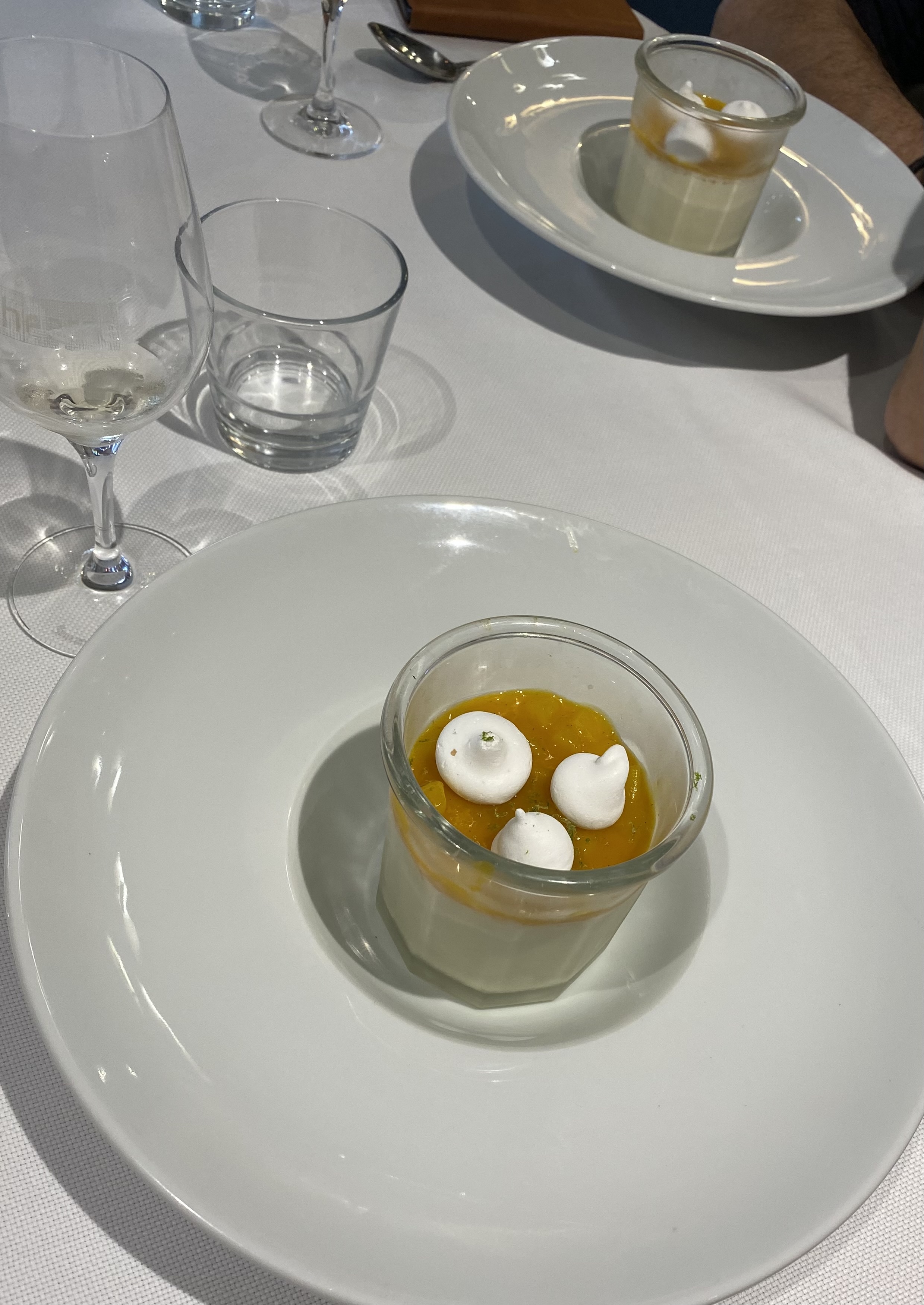 Dans l'ensemble, c'était bien. Nos plats étaient très bons, les vins aussi. Le serveur était gentil. Les bémol : les entrées sont arrivées 2min après l'aperitif... C'est vraiment pénible. Les entrées (saumon, et terrine) étaient bonnes mais la présentation très simple. En dessert, la crème brûlée n'était pas assez cuite. Dommage, car c'est quand même un dessert basique au restaurant. Pour un restaurant d'un certain standing,il y a encore une marge de progression.