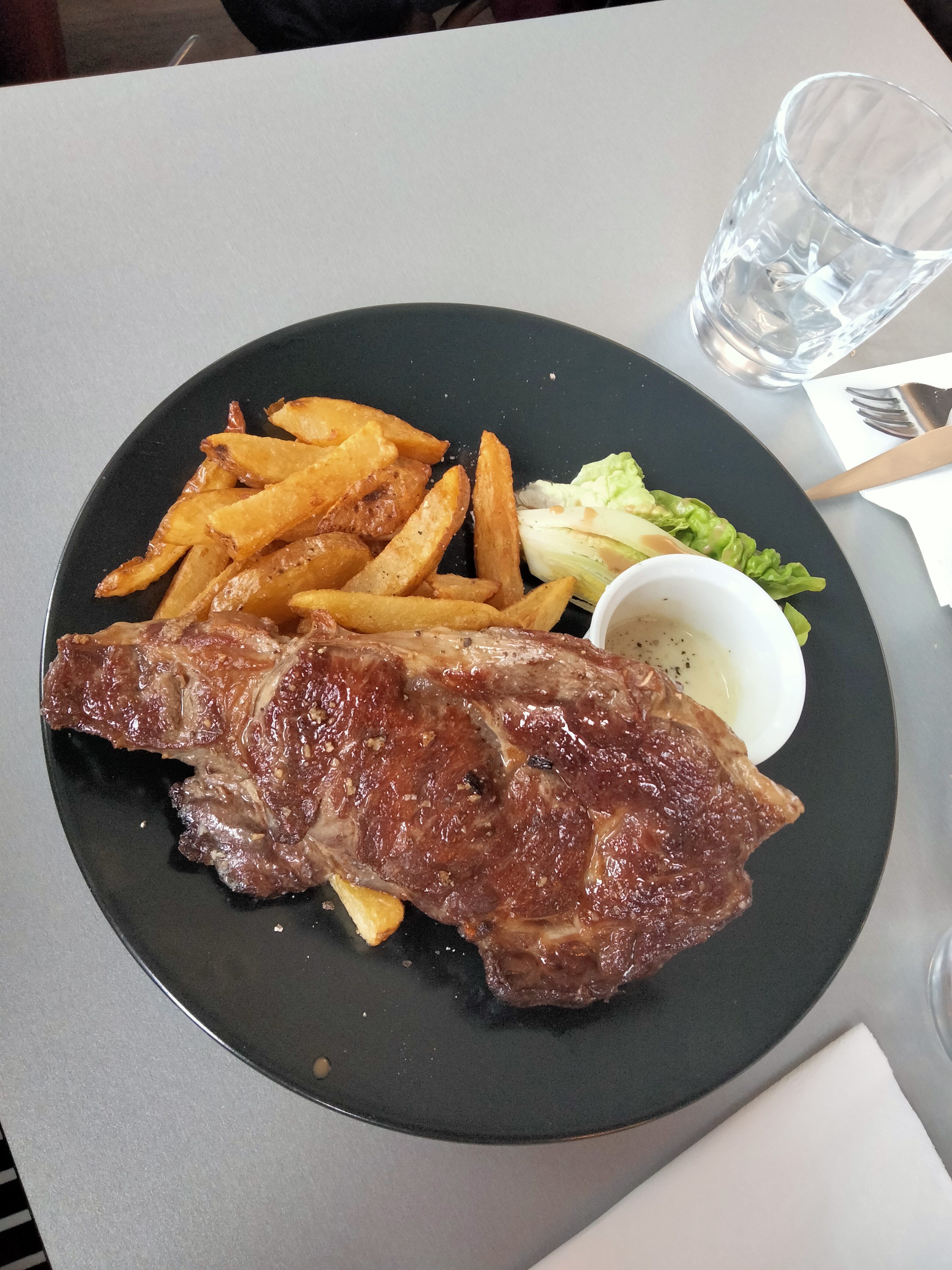 Très bon petit restaurant que je recommande. L'entrecôte commandé par la personne avec moi n'a pas eu un bon morceau (morceau nerveux et dur) la patronne lui a gentiment demander de changer de plat plutôt que de reprendre une entrecôte car c'était le même morceau. Donc service nickel serveuse gentille et souriante. Prix normal pour la qualité de leurs plats. Très bon et une déco très sympa de la salle aux toilettes 👍 j y reviendrais.