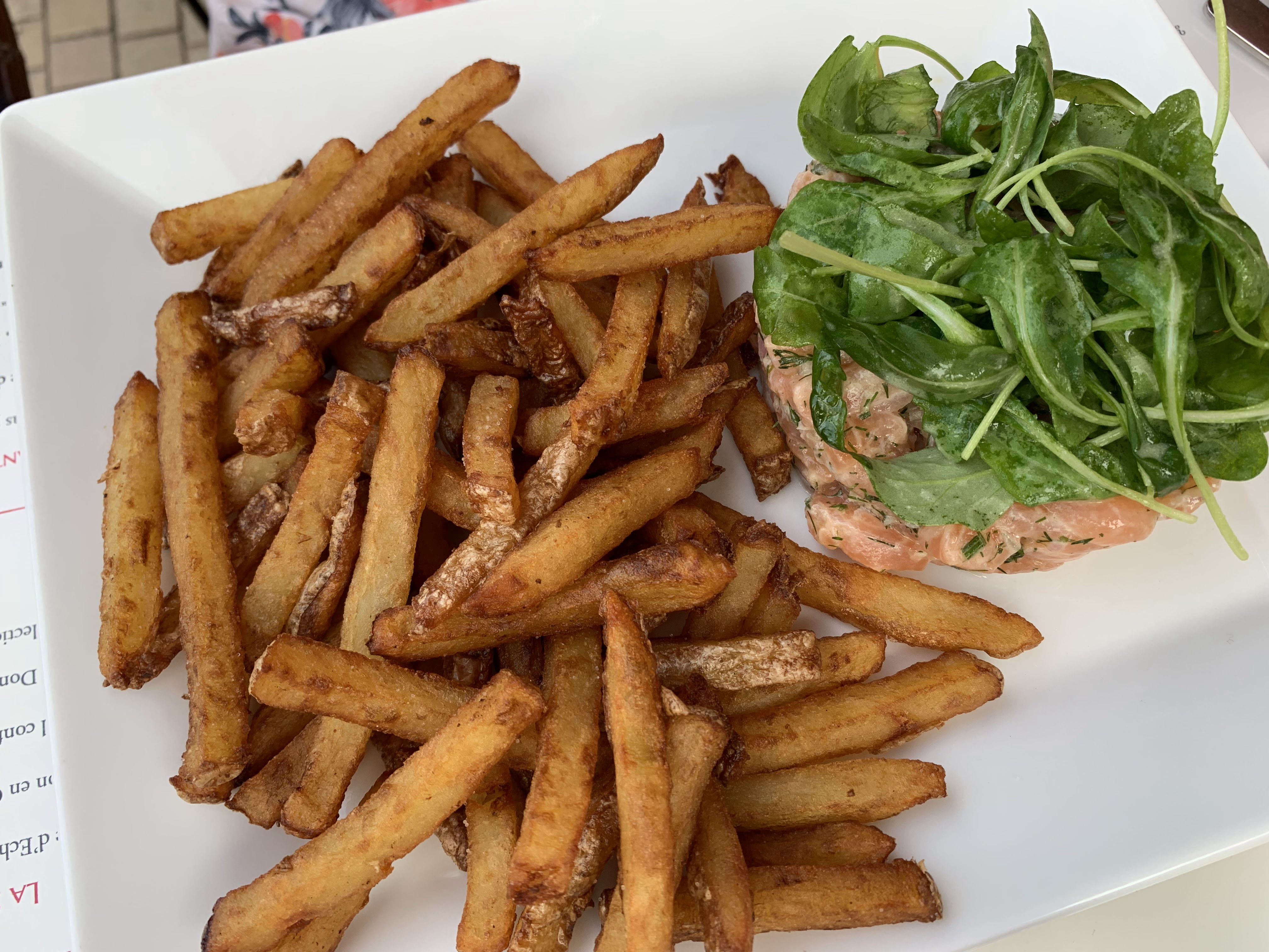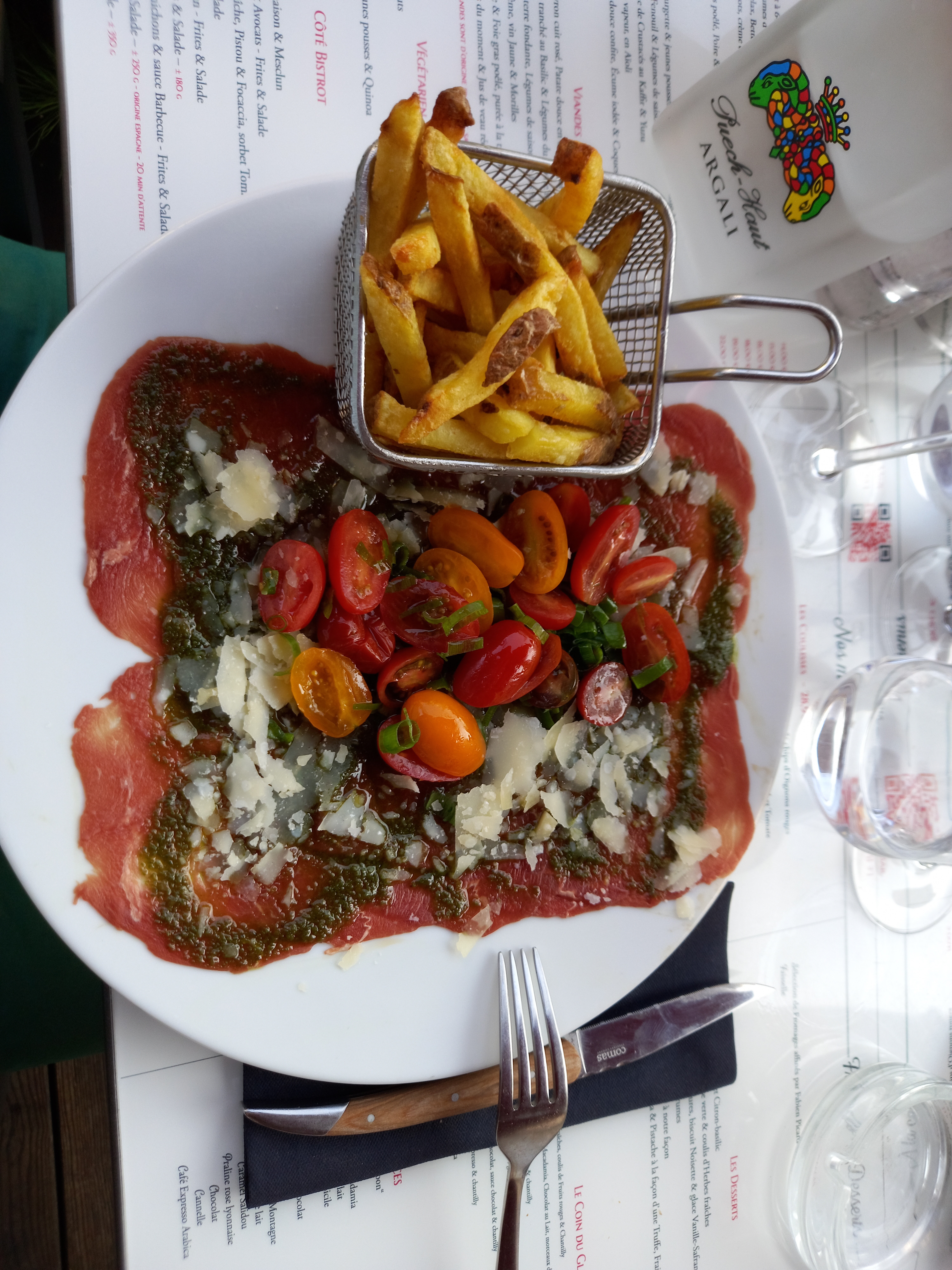 Cela fait plusieurs fois que nous allons manger un tartare de boeuf dans cet établissement. Mais aujourd'hui rien n'allait... Nous n'avons pas eu droit à l'amuse bouche, le serveur a fait déguerpir un client qui voulait boire quelque chose sous prétexte qu'il allait occuper une table alors qu'il n'y avait que huit clients en terrasse, pas de savon ni de gel dans les toilettes.... Reprenez vous...