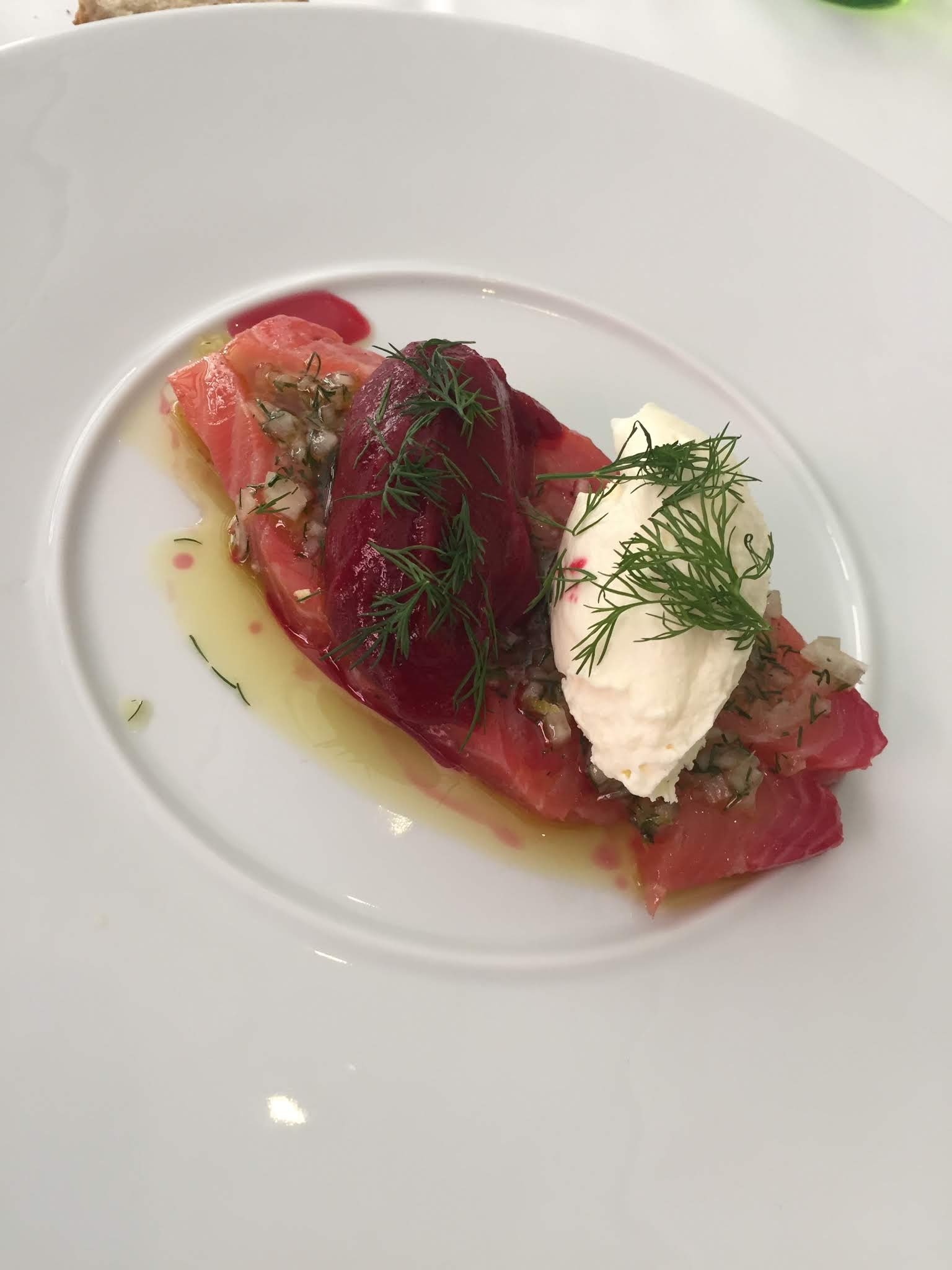 Le cadre est particulièrement agréable, l'accueil aussi. Et la suite est un régal. Dès l'arrivée, on vous sert une panna cotta de Saint-Jacques qui met littéralement en bouche : un délice qui fait son effet. Puis suivent les surprises suivantes : délicieuses huîtres, excellent burger de saumon (sans pain au chorizo, étant végétarien) puis tarte au citron déstructurée à la fois original et exquise.
