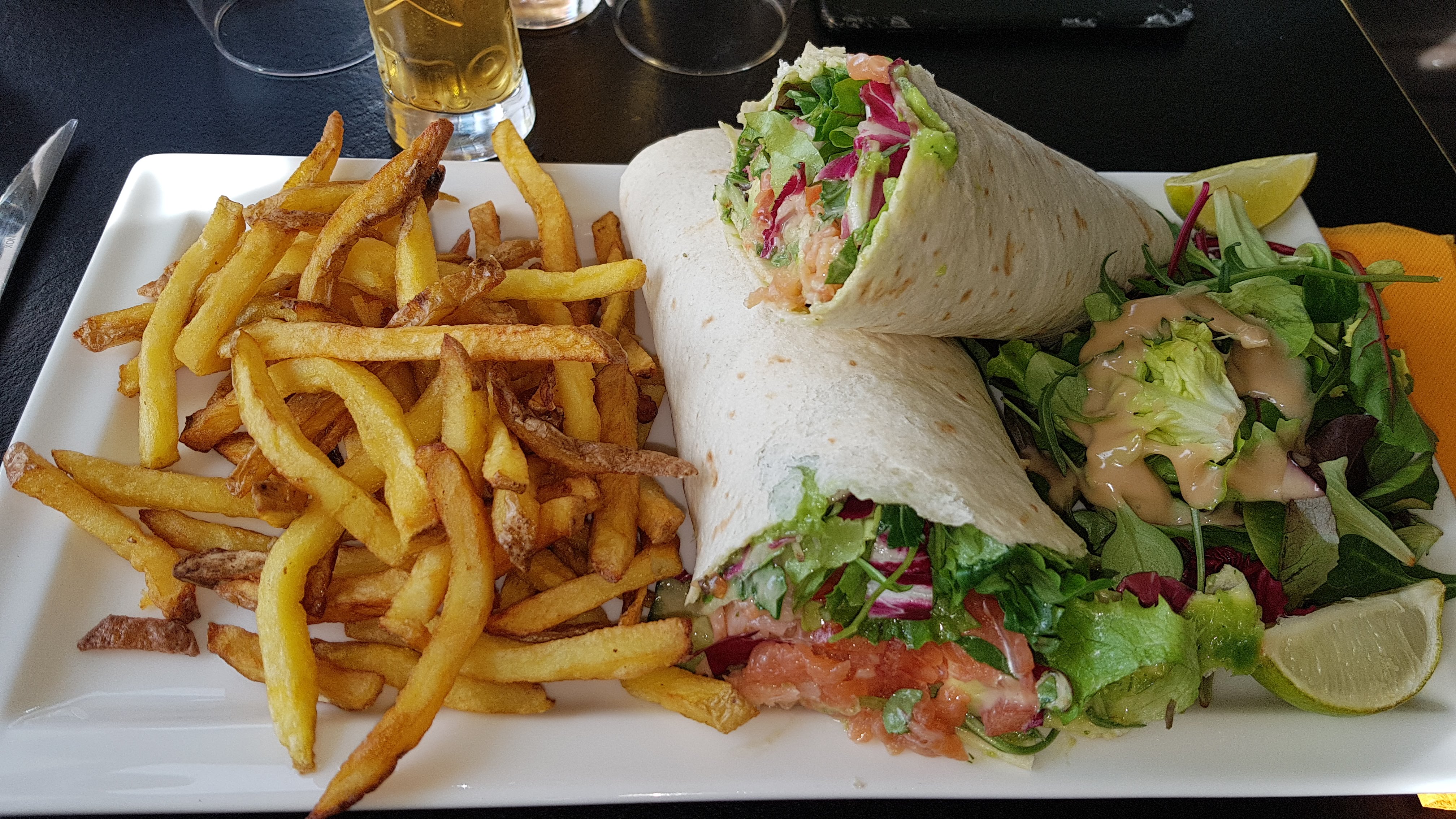 Pour une première visite, une vrai réussite ! Un service avec le sourire avec des plats copieux et très bons. Ma femme a pris des wraps qui étaient conséquents et excellents, pour ma part j'ai pris un tartare poêlé avec frites qui était très bien préparé et généreux, nous nous sommes régalés. Comme quoi ont peut faire bon, copieux avec un prix raisonnable ! Félicitations à vous et soyez sûr que nous reviendrons... Merci pour l'accueil et la bonne cuisine