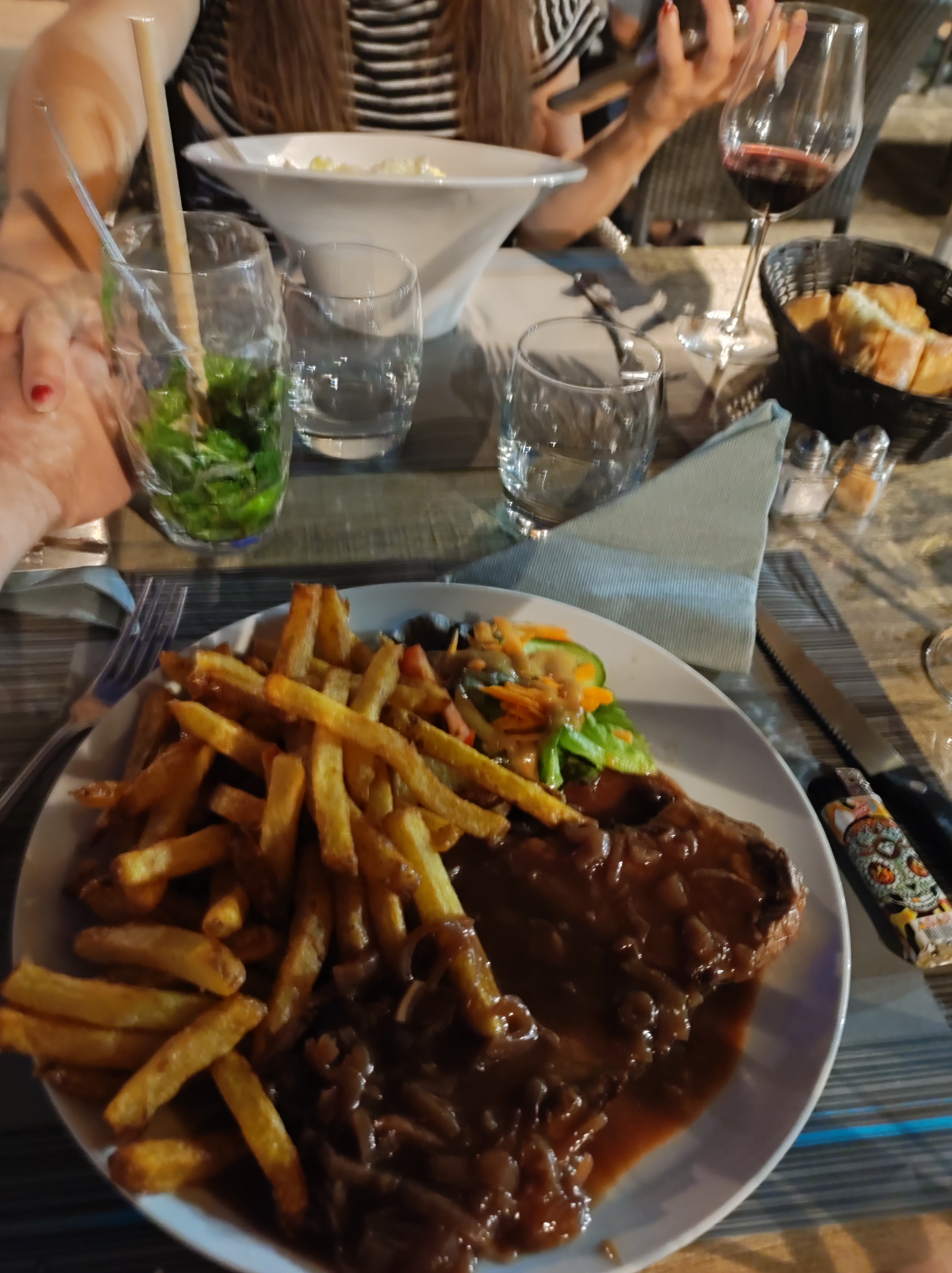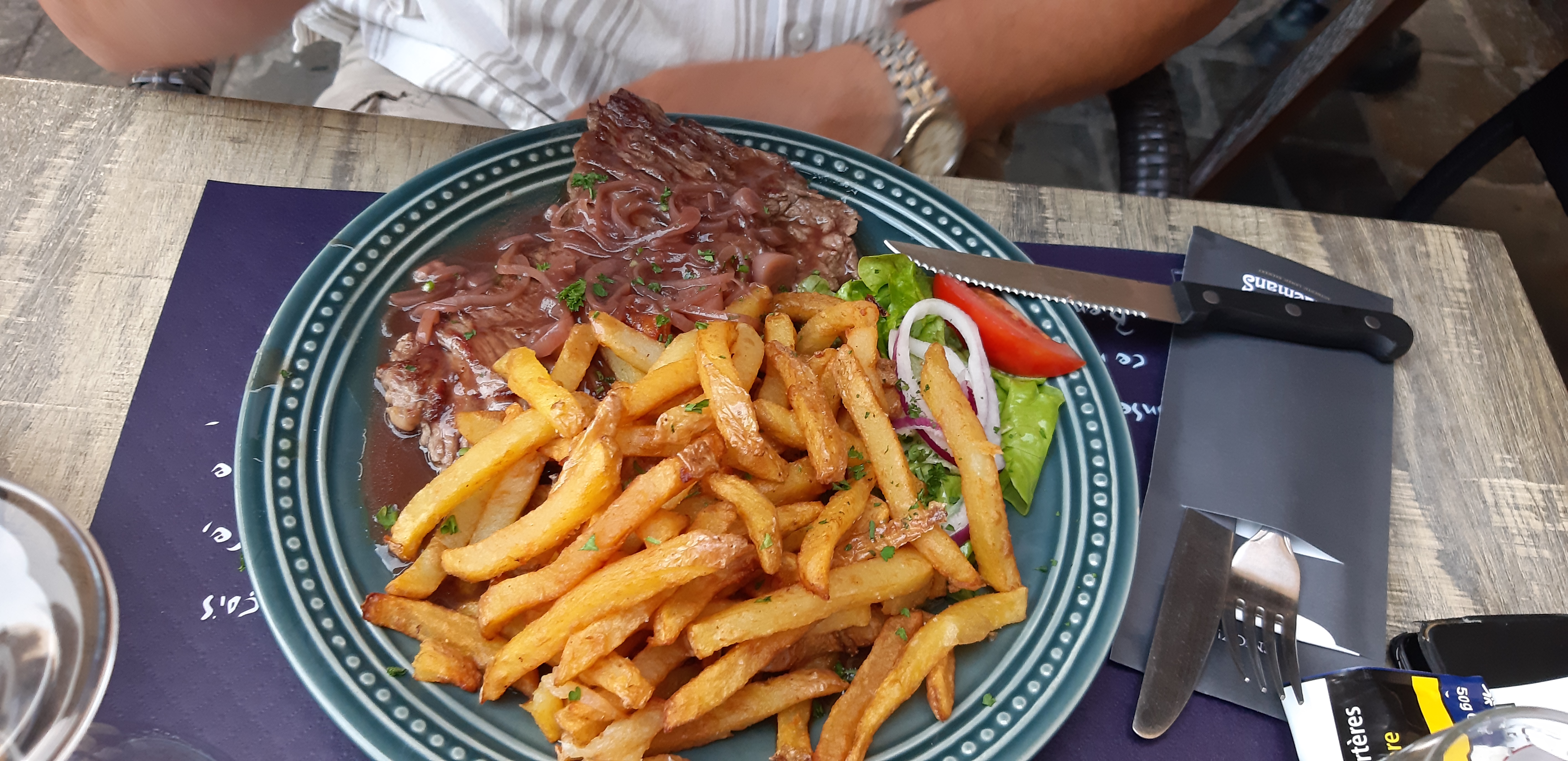Bon rapport qualité-prix , serveurs agréables, souriants et à l'écoute. Établissement soucieux de satisfaire sa clientèle. Repas copieux, frites excellentes et le reste très très bon ! Nous recommandons et nous y retournerons avec plaisir, plutôt en intérieur quand il pleut quand on pourra :)