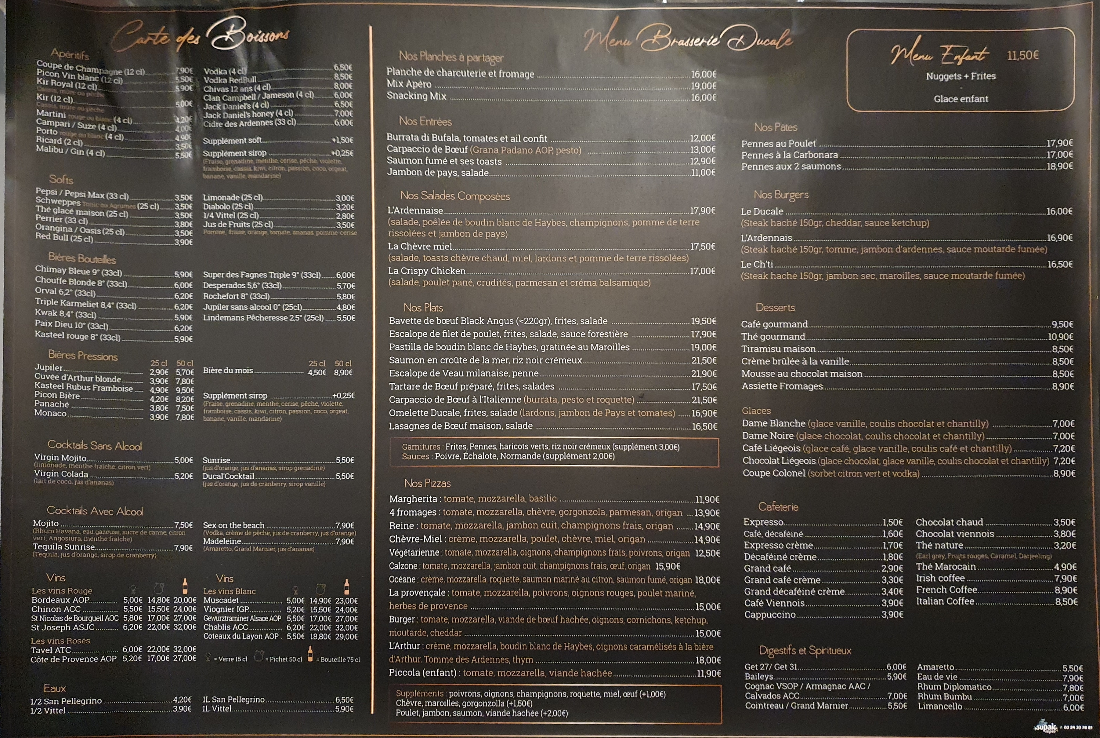 Nous sommes allés manger a la brasserie ducale dimanche soir il y a eu beaucoup beaucoup d'attente alors qu'il n'y avait pas énormément de monde, les plats n'étaient pas bons!les frites pas bonnes une amie a eu un pavé de saumon pas cuit, la serveuse lui dit c'est pas grave et ramene la même assiette 20 min plus tard avec le saumon recuit au micro ondes donc immangeable ! C'était mieux avant, on ne retournera pas dans ce restaurant