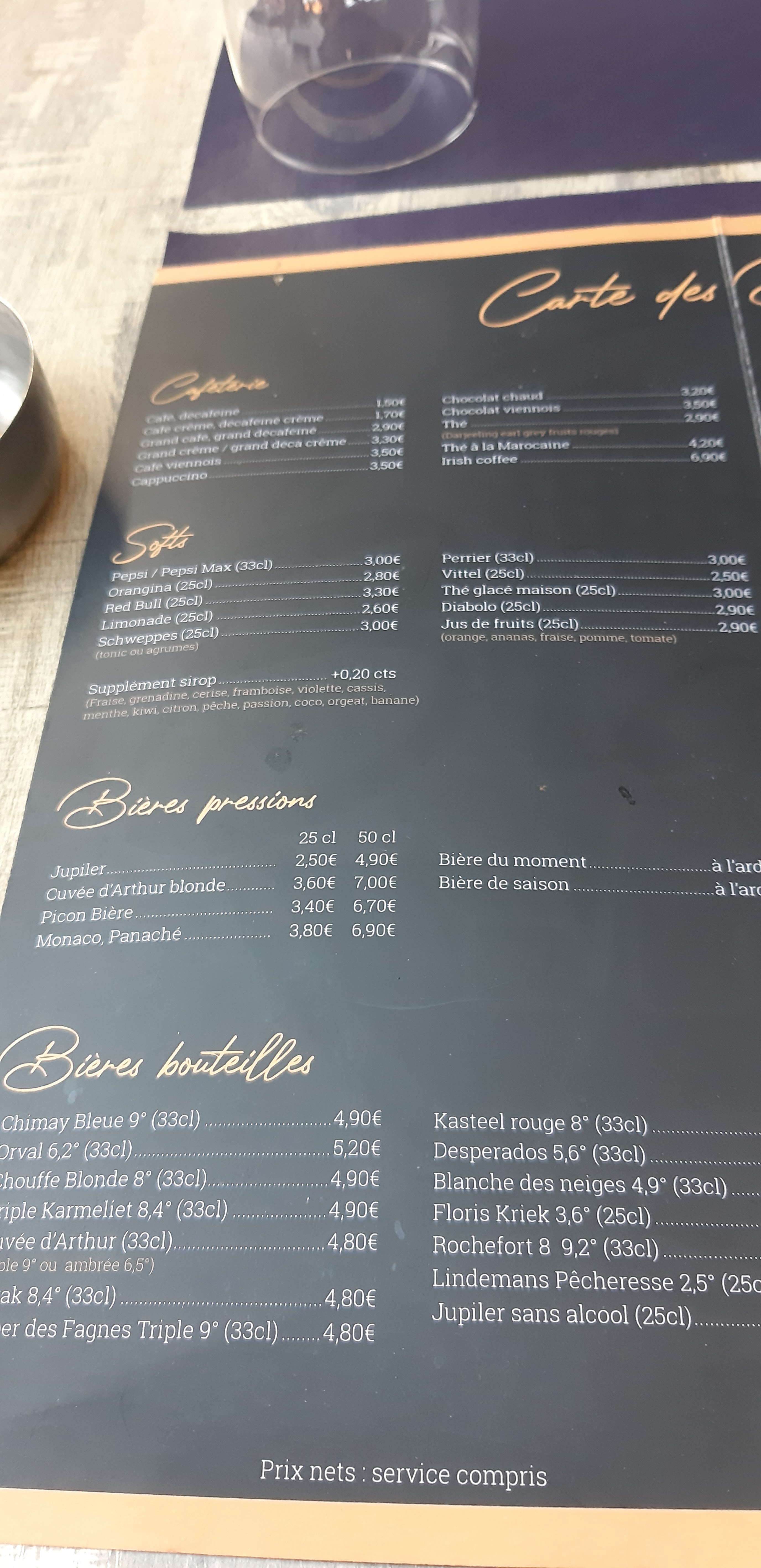 Sympa. Patron au top! Bonne carte. Malheureusement un peu cher comme beaucoup à Charleville-Mézières. Pej de concurrents !!