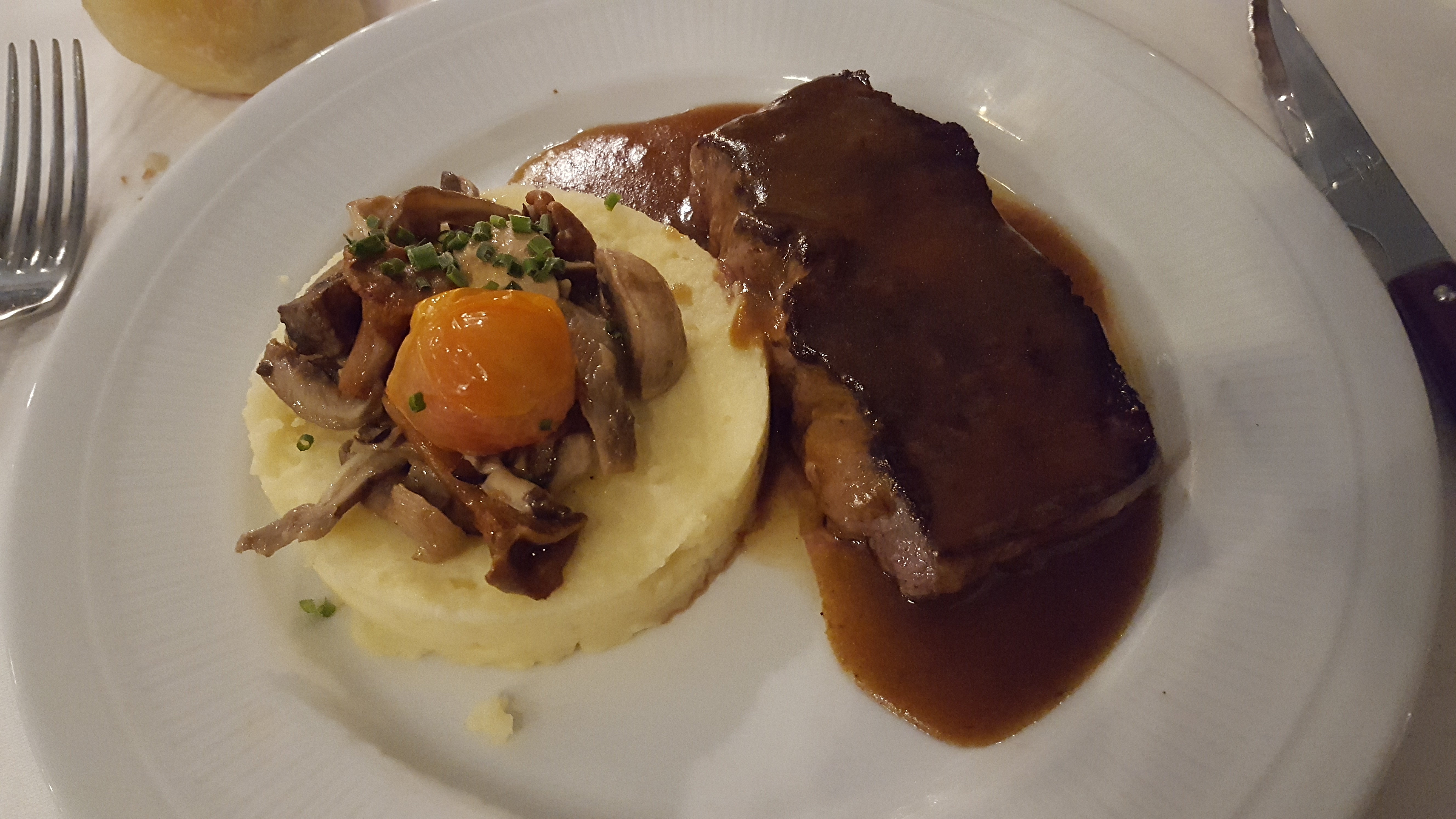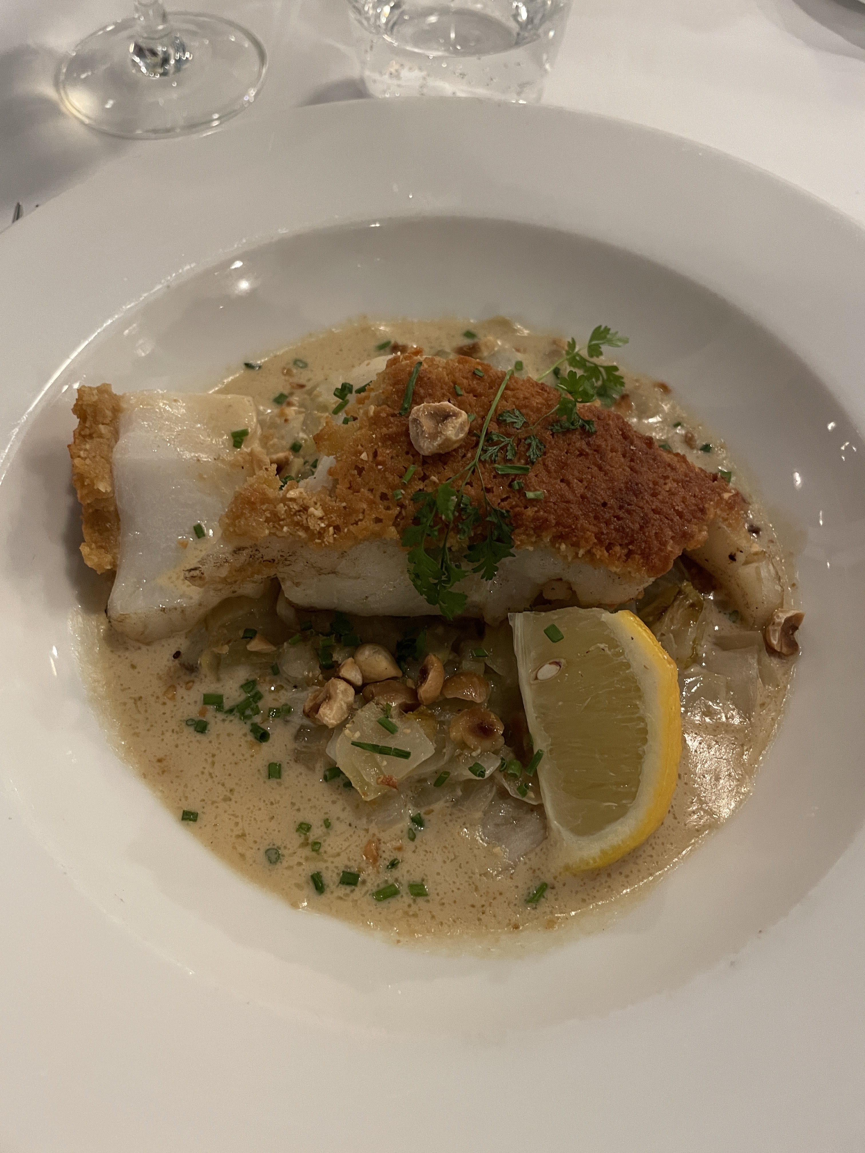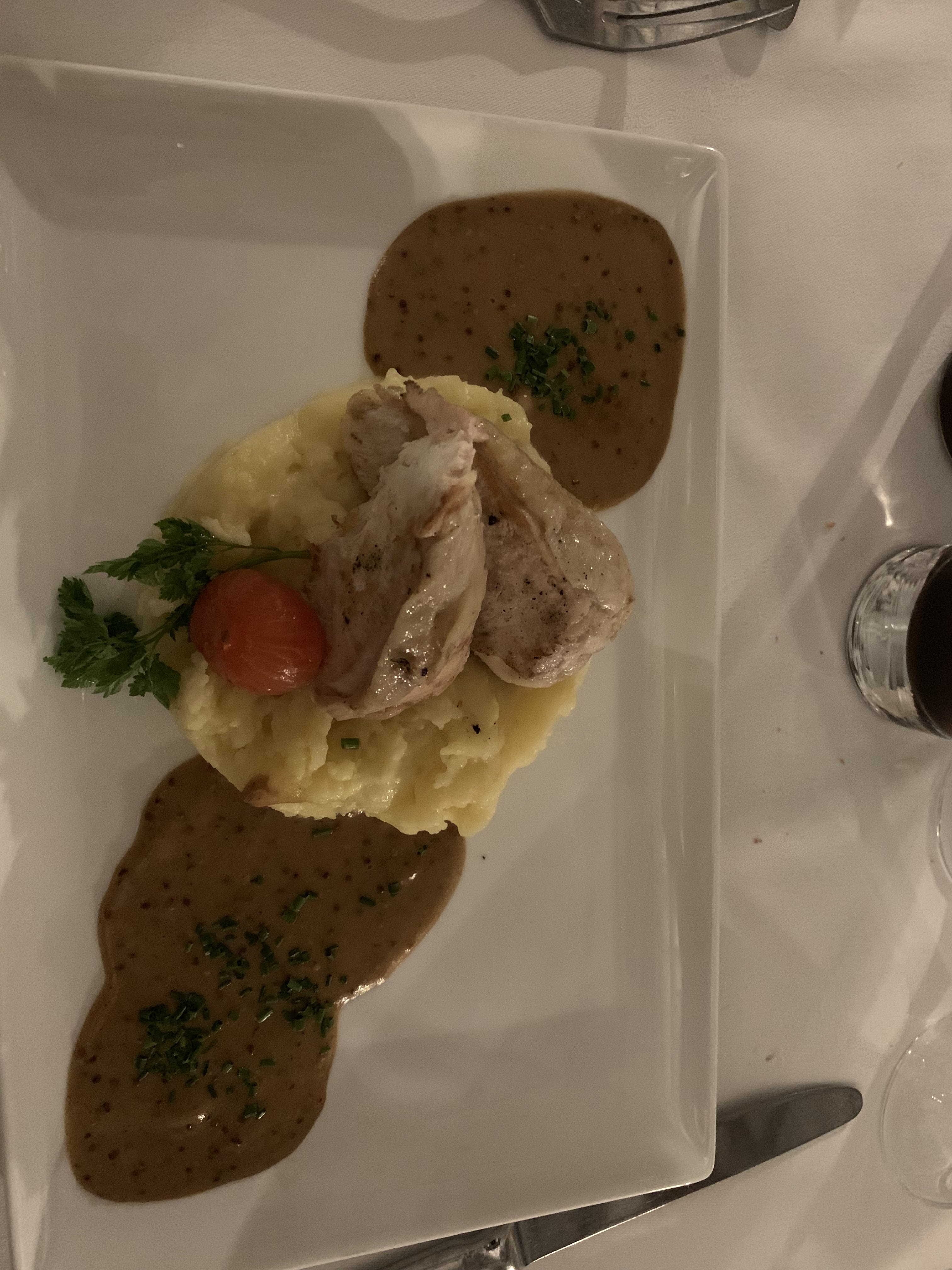 La cuisine n'est pas au top. Poisson en croûte (noire carbonisé), Jarret de porc revisité, (minimum de viande) . Il fallait la trouver .. Sinon service impeccable, boisson aussi .