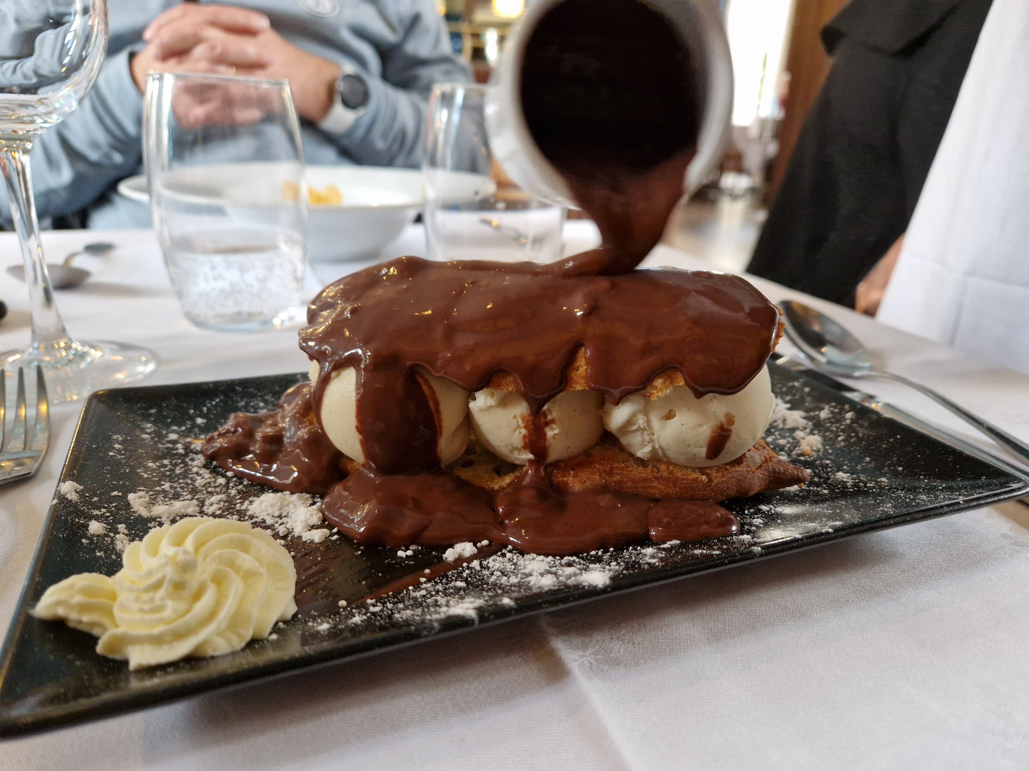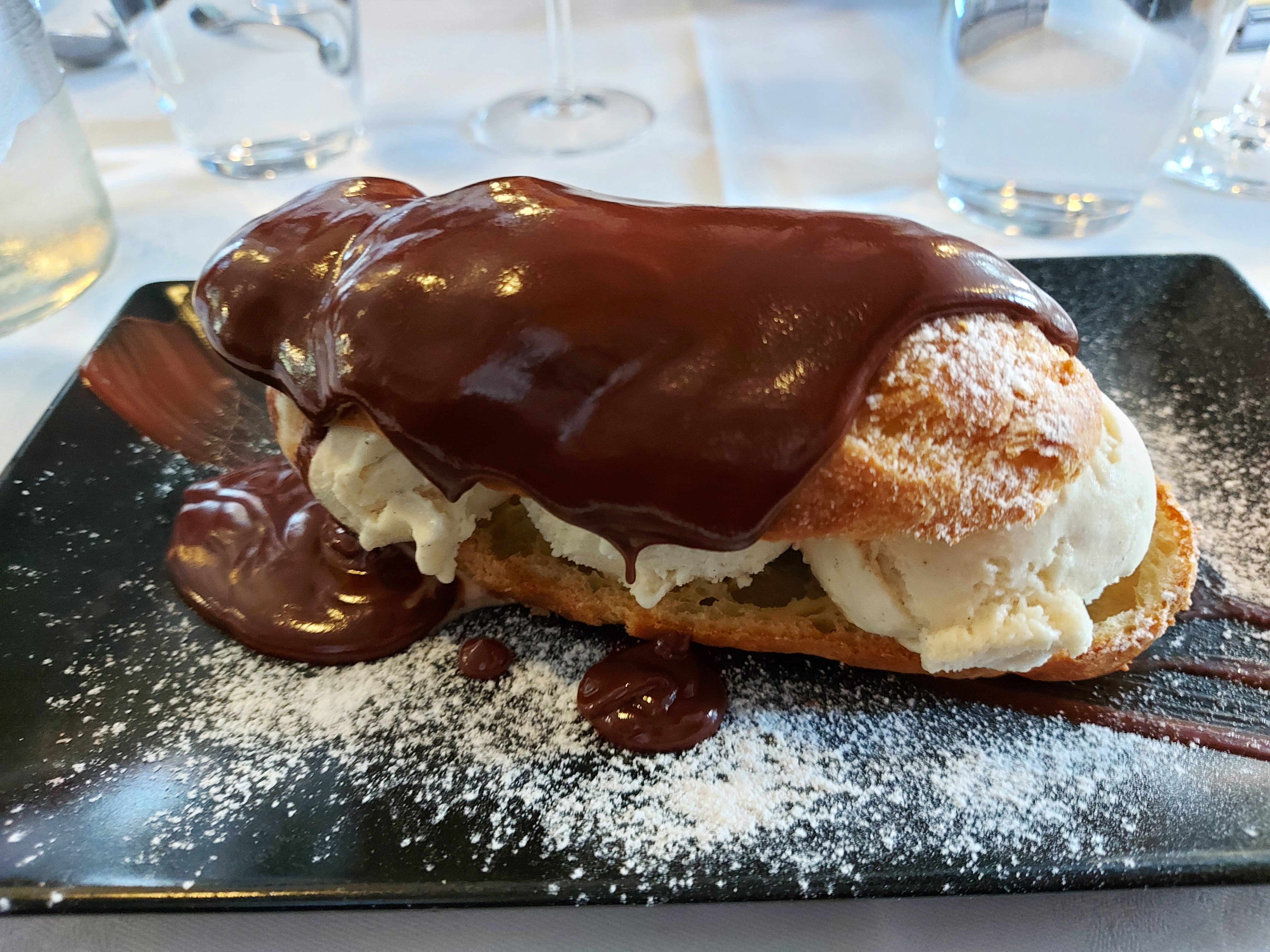 Absolument super ! Cadre magnifique, accueil chaleureux et service de qualité par une vraie équipe de professionnels. Et les plats sont délicieux, notamment la profiterole au chocolat Valrhona 🤗 Nous avons hâte d'y retourner !