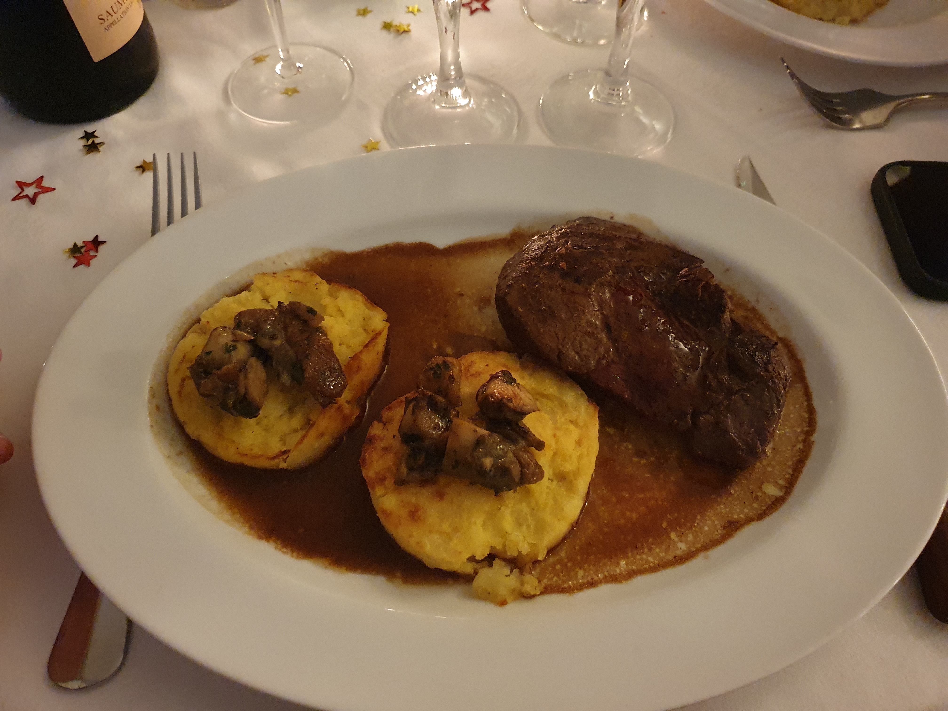 Nous avons très bien mangé dommage il faudrait pensé a refaire la décoration tout en gardant le cachet du lieux Le manque de décoration de Noël rendait l'endroit peu chaleureux Quand au service il manque quelques sourires chez le personnel Dommage car la cuisine est bonne