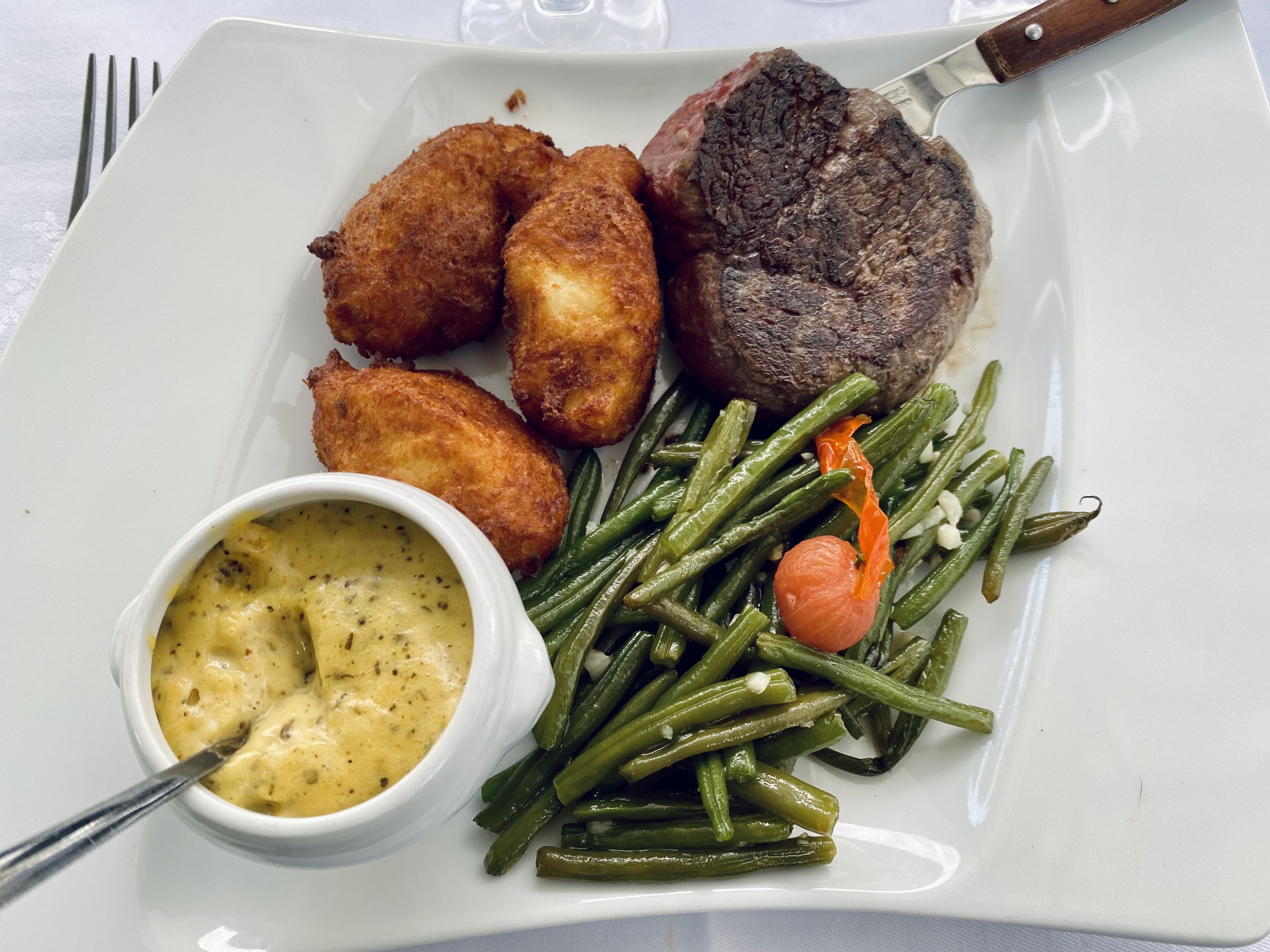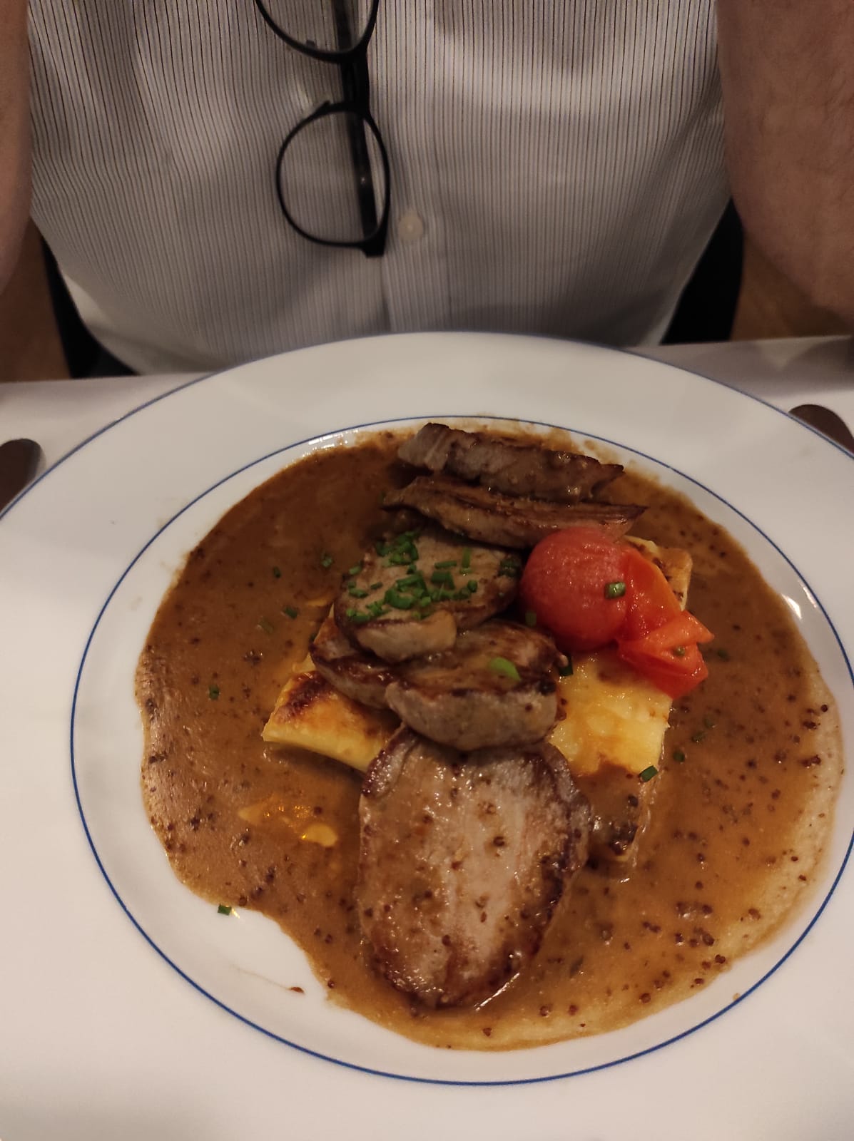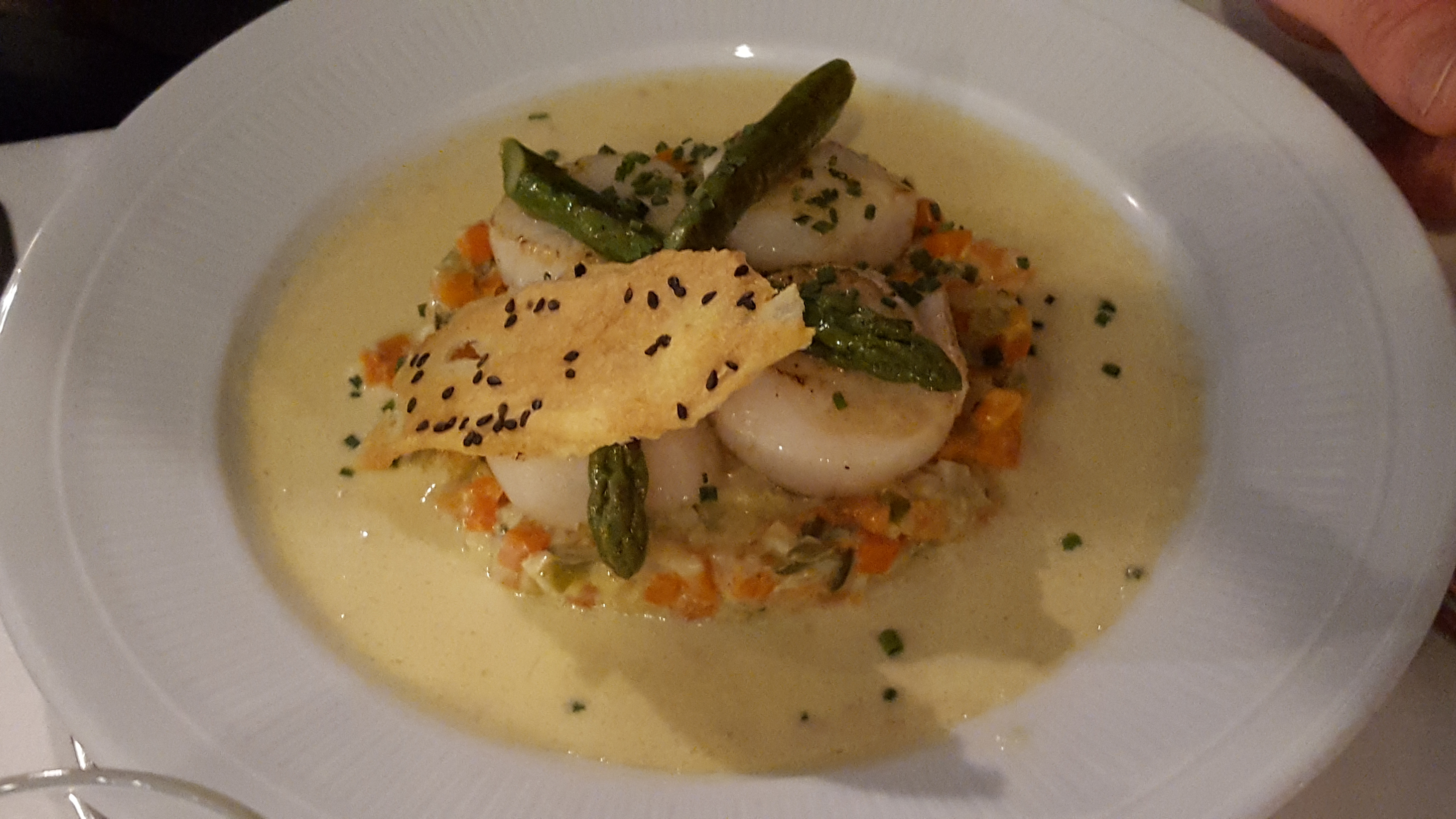 Assez déçu. Le magret de canard était trop sec et l'entrée quelconque. Le plat à base de noix de saint jacques etait un peu plus reussi. Nous avons du faire changer un verre qui était sale.