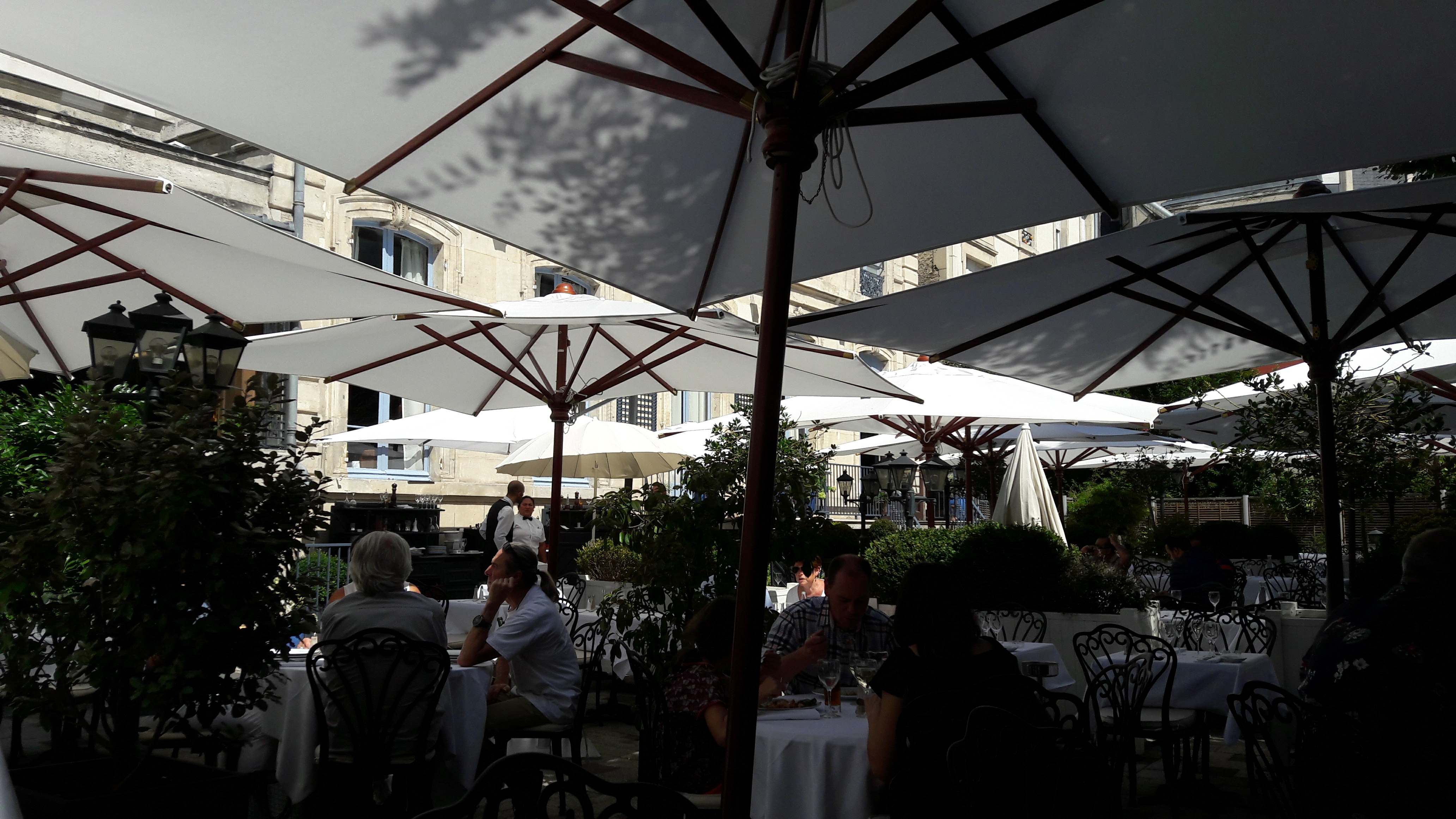 Tres bon lieu ! Un dîner en terrasse, par beau temps, avec le bruit des oiseaux et très peu de gènes de bruit de véhicule... Tout ceci en plein coeur de Reims ! Service un peu trop rapide, par un serveur qui visiblement est fâché avec le déodorant. Sinon ce qui est dans l'assiette est très harmonieux, avec une présentation soignée. Les serveurs passent mais restent discrets. Le cadre est très végétal, façade pierre et de belles tables dressées. Je recommande vivement pour un anniversaire, un déjeuner pro, ou juste un dîner amoureux.