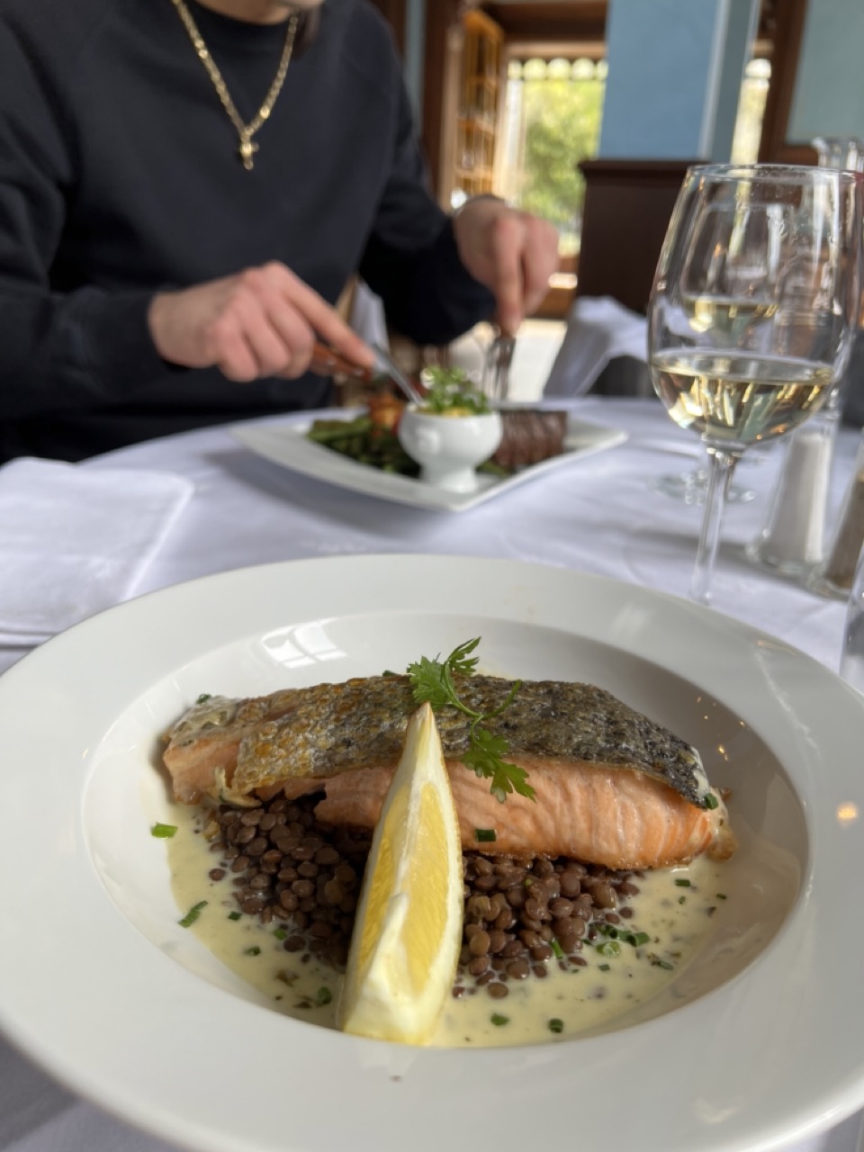Nous avons passé un très bon moment, dans un joli décor, avec un personnel discret et efficace. Le foie gras était délicieux et le saumon parfaitement cuit. Expérience à renouveler.