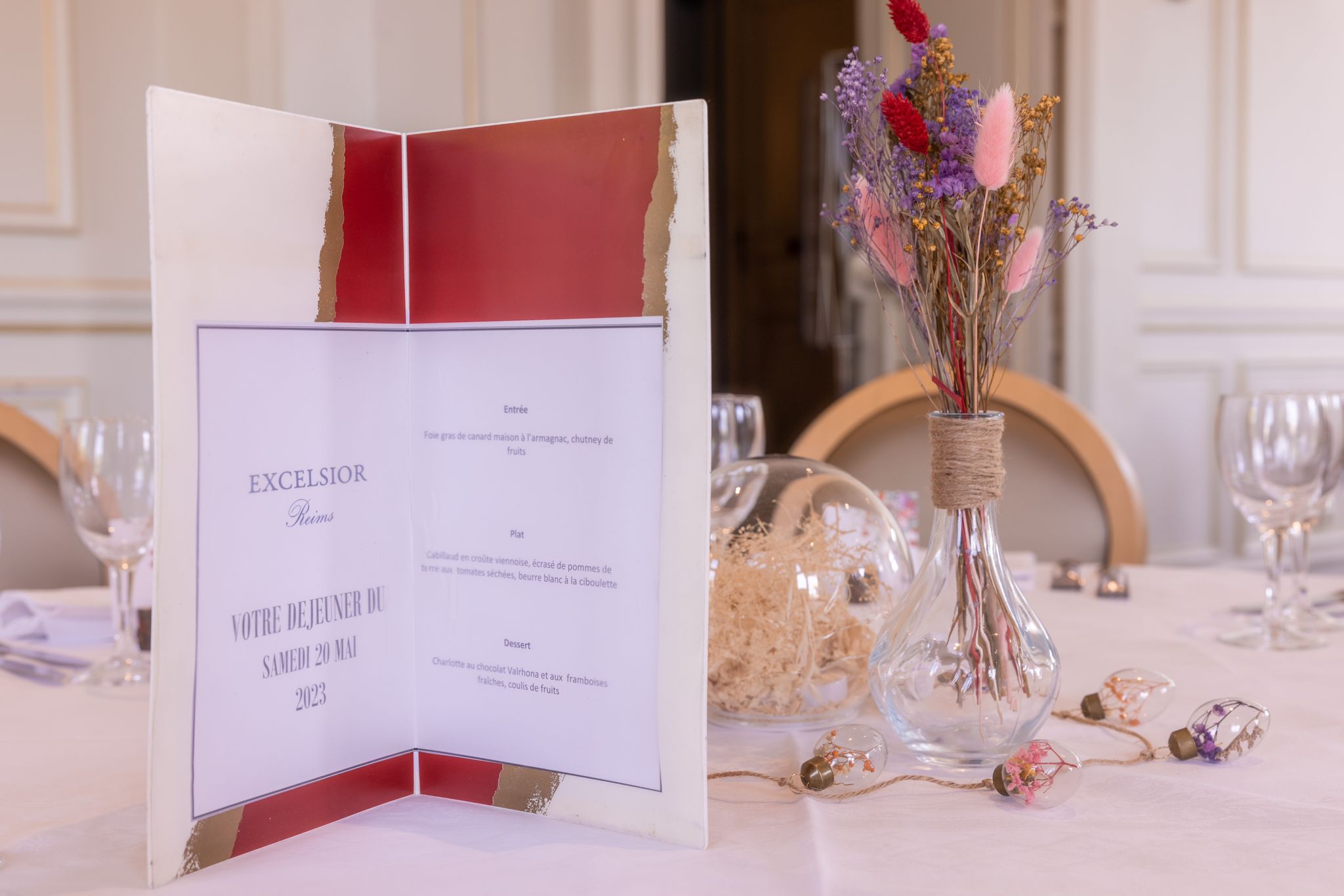 Cadre vieillot des chaises qui n ont plus d age et ou le revêtement en velours est usé jusqu'à la corde ...!!! Table bancale , Salle plus que bruyante surtout une table de 10 personnes passablement èmèchés qui vont au toilettes sans masque .diner d un homard trop cuit donc un peu sec d un pavé de saumon au sésame grillé le tout bien trop cuit donc trop sec seule la pièce de boeuf avait la cuisson adéquate .le service était parfait et le personnel très bien .bref beaucoup trop cher pour ce que cela vaut réellement .un joli petit chien à la table voisine s est fait entendre 2 ou 3 fois rien de gênant...! Hygièniquement parlant ( ?) les animaux aussi gentil soit il me dérange dans les commerces de bouches .très déçu je suis client de celui de Nancy et tenais à resté fidèle mais celui de Reims ne me verra plus