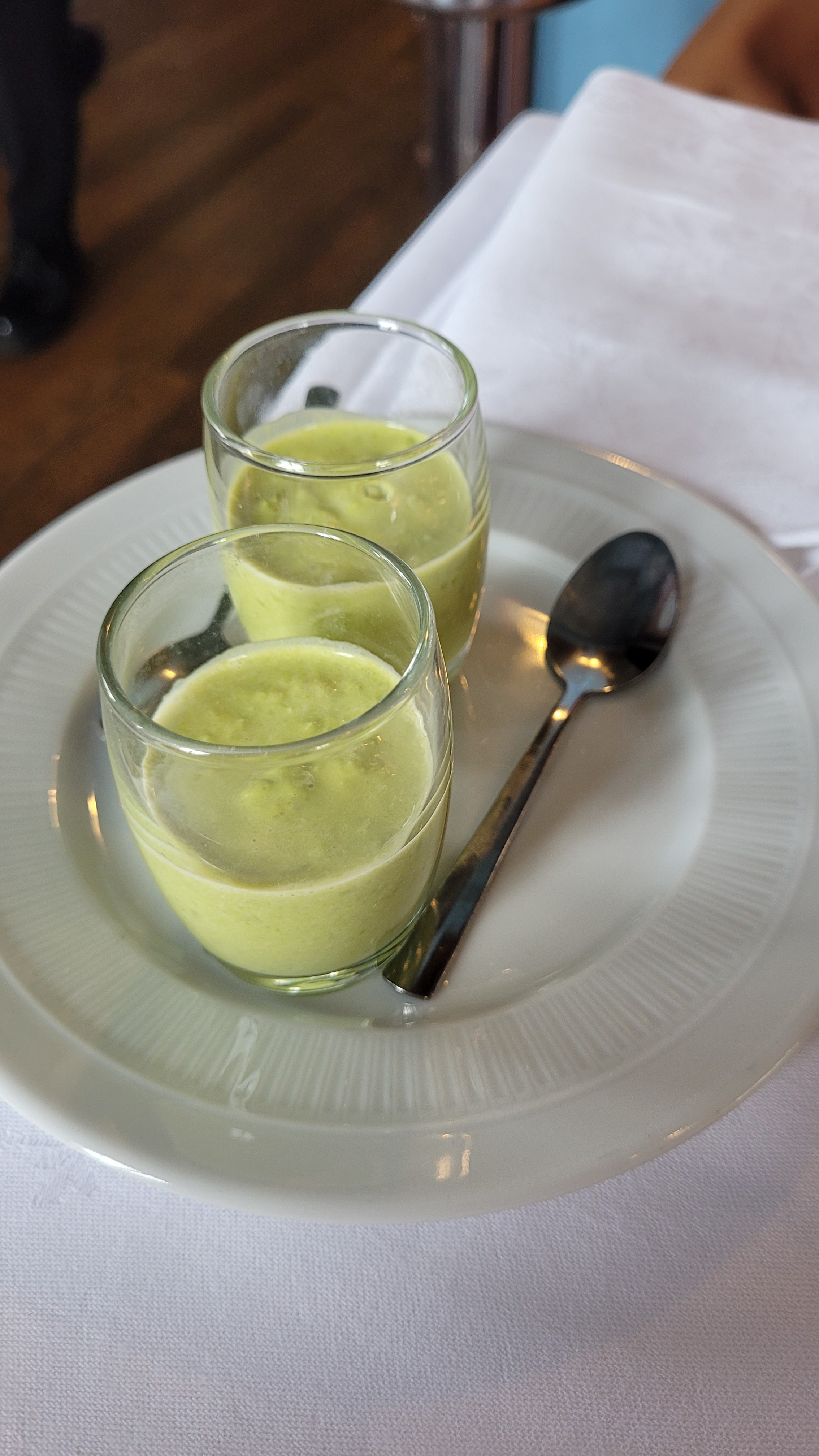 Le service en cuisine a perdu de son prestige à cause du manque de personnel sûrement mais le chef avait pu nettoyer l'assiette du tartare et mettre un peu de déco, l'assiette faisait cantine. La verrine de petit pois passée au chinois aurait été top. Les pavés de saumon sont arrivés avec la sauce figée, Les desserts : glaces arrivées fondues, gaspacho trop sucré. Ça n'est pas mauvais mais par rapport au tarif, on ne peut clairement pas faire wahouu et on s'attend à mieux, quelques petits réglages à faire. Les serveurs sont professionnels mais clairement pas suffisants. Espérant revenir une prochaine fois dans de meilleures conditions. Bon courage à toute l'équipe.