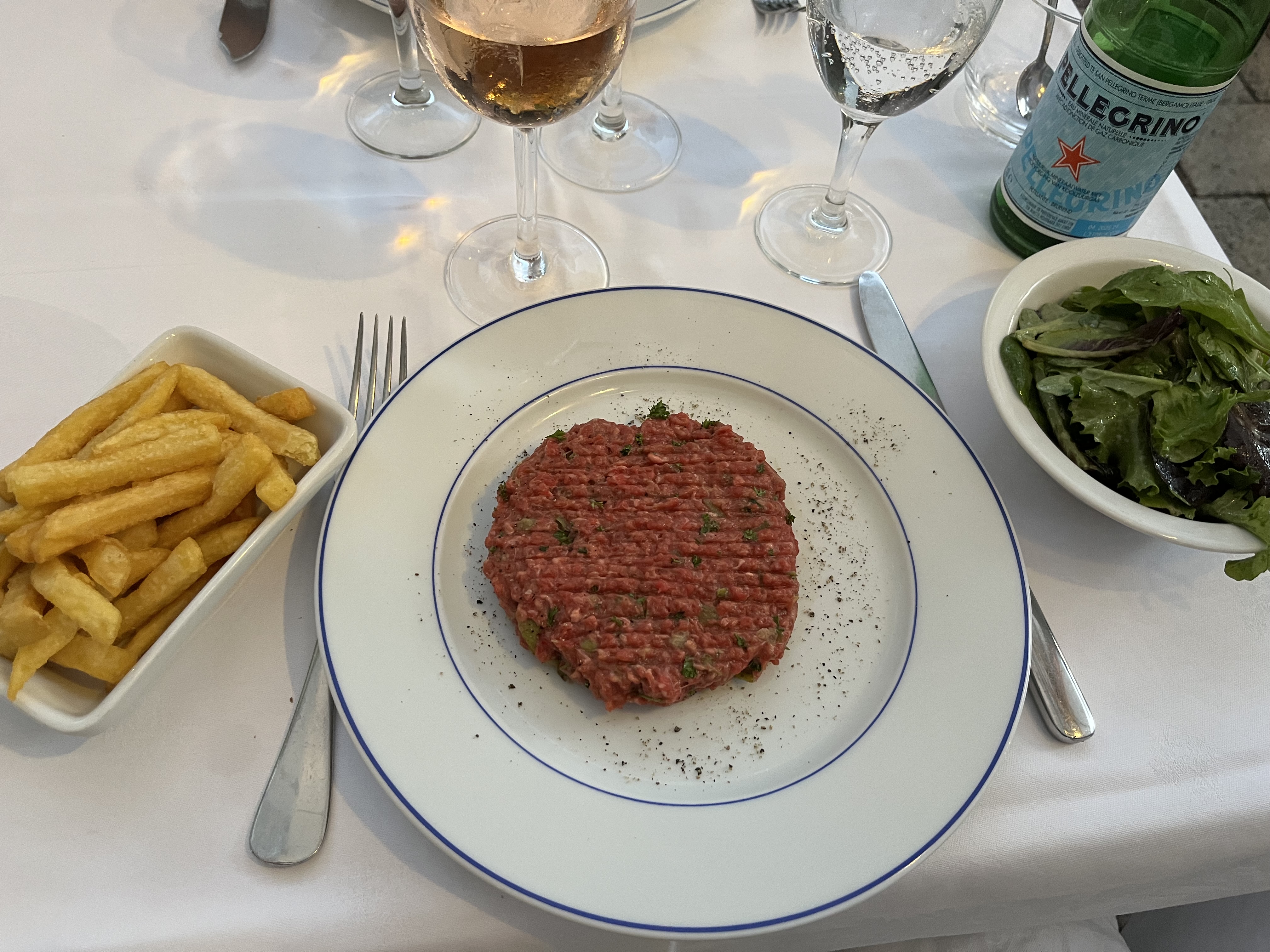Excellent établissement au cadre magnifique, autant a l’intérieur qu’à l’extérieur lorsque les beaux jours le permettent. J’ai eu plusieurs fois l’occasion d’y dîner ou déjeuner, à chaque fois un service et une qualité remarquable. Cependant, j’ai l’habitude de considérer que commander un tartare, c’est une façon de savoir quelle attention est accordée aux produits préparés. Et ce jour, lors du 5e ou 6e passage… avec beaucoup d’aplomb, on nous a servi un « tartare de charolais » gris. Après avoir demandé pourquoi, on nous a d’abord dit que c’est comme ça qu’il était préparé et servi ici (jamais vu de tartare gris dans mon expérience client). Après avoir demandé à ce qu’un autre nous soit servi, nous avons compris pourquoi : les cuisiniers le préparent d’avance, et donc il avait cuit dans le réfrigérateur. Avoir un tartare préparé quand il n’est pas annoncé préparé sur la carte est déjà en soit surprenant, mais qu’un tel établissement ose servir un tartare gris, c’est soit que la cuisine a changé, soit que les « maîtres d’hôtel » n’ont pas l’expérience pour défendre auprès de la cuisine qu’un tartare ne s’envoie pas gris. Deux étoiles alors qu’il en mériterait facilement 5, mais pour moi cette expérience est rédhibitoire… si vous y allez, évitez le tartare… car même refait, il est mal préparé (beaucoup trop acide et beaucoup trop épicé à mon goût).