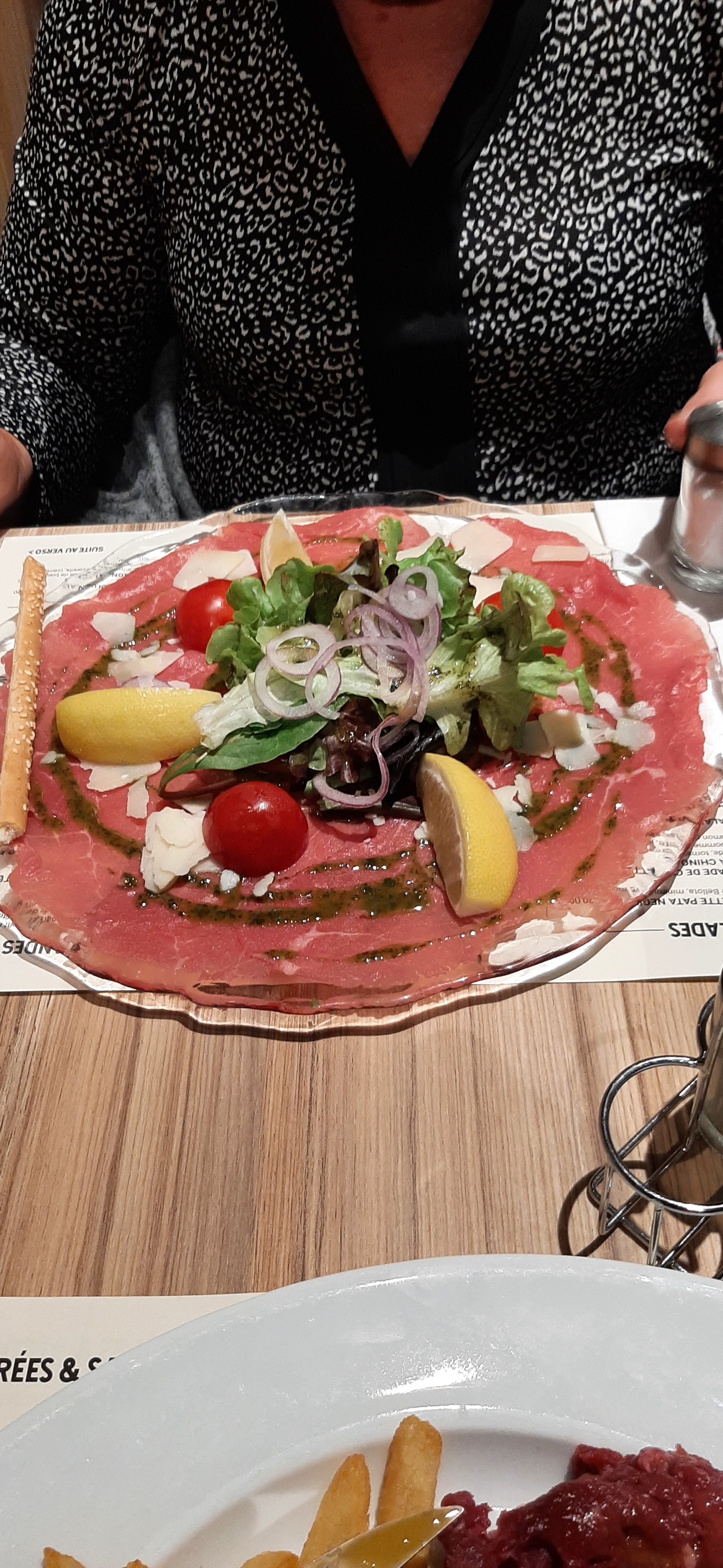 Pour un tartare haché au couteau je cherche encore les cornichons les câpres et les condiments après avoir demandé deux fois au serveur, on m'a répondu que c'était la sauce qui était servi avec (une espèce de béarnaise avec des échalotes) dommage car la viande était bonne. J'ai quand même pu avoir les condiments quand le patron m'a vu prendre une photo... Qui part ailleurs interdit de prendre des photos ! Un peu du foutage de gueule, je pense que le patron pourrait rouvrir son livre de cuisine pour voir la recette....