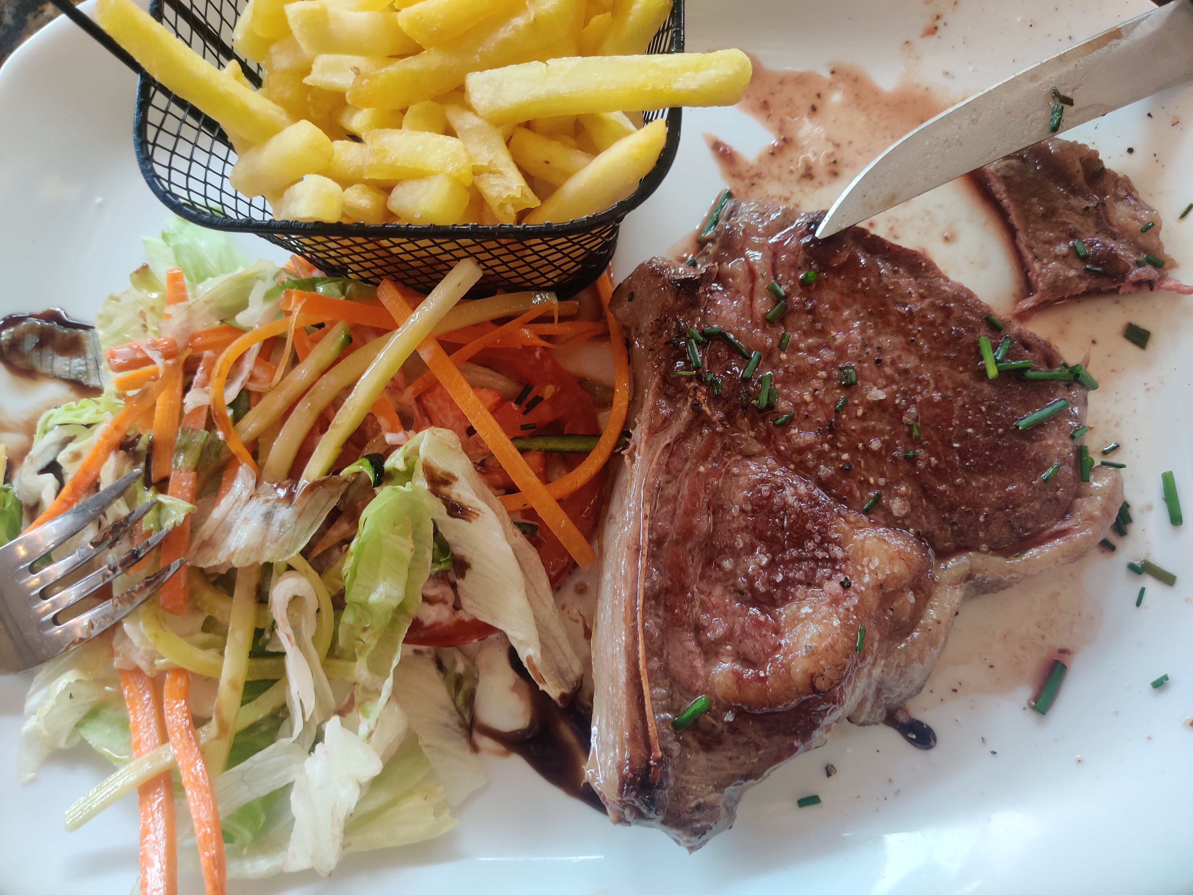Nous avons pris un Burger et une entrecôte de taureau. Le burger était excellent et la viande de taureau super tendre. Nous vous recommandons vivement le lieu.