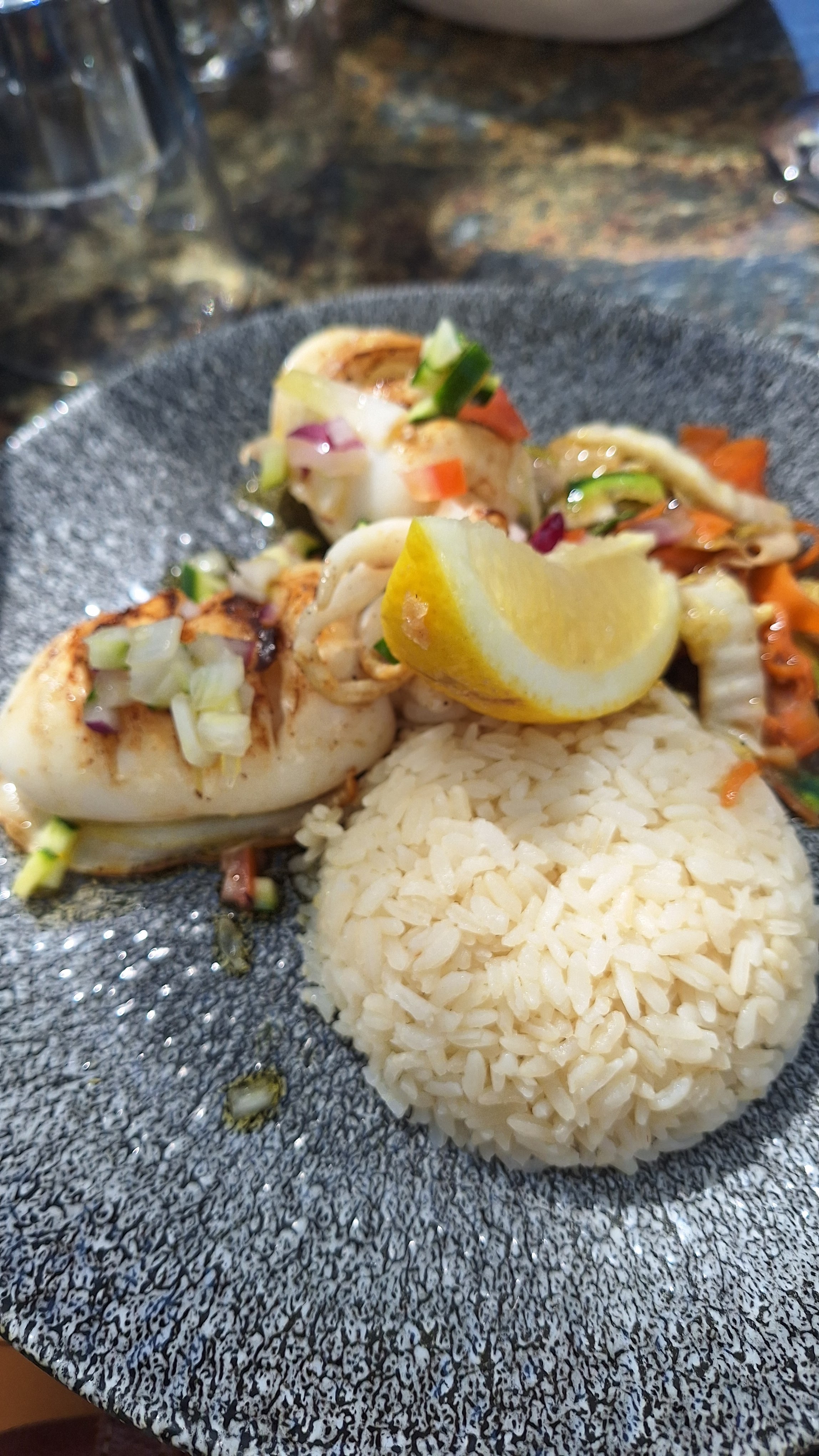 J ai mangé des seiches à la plancha a 17€, je me suis régalée, le personnel est sympathique et le service impeccable en ce mois d avril.