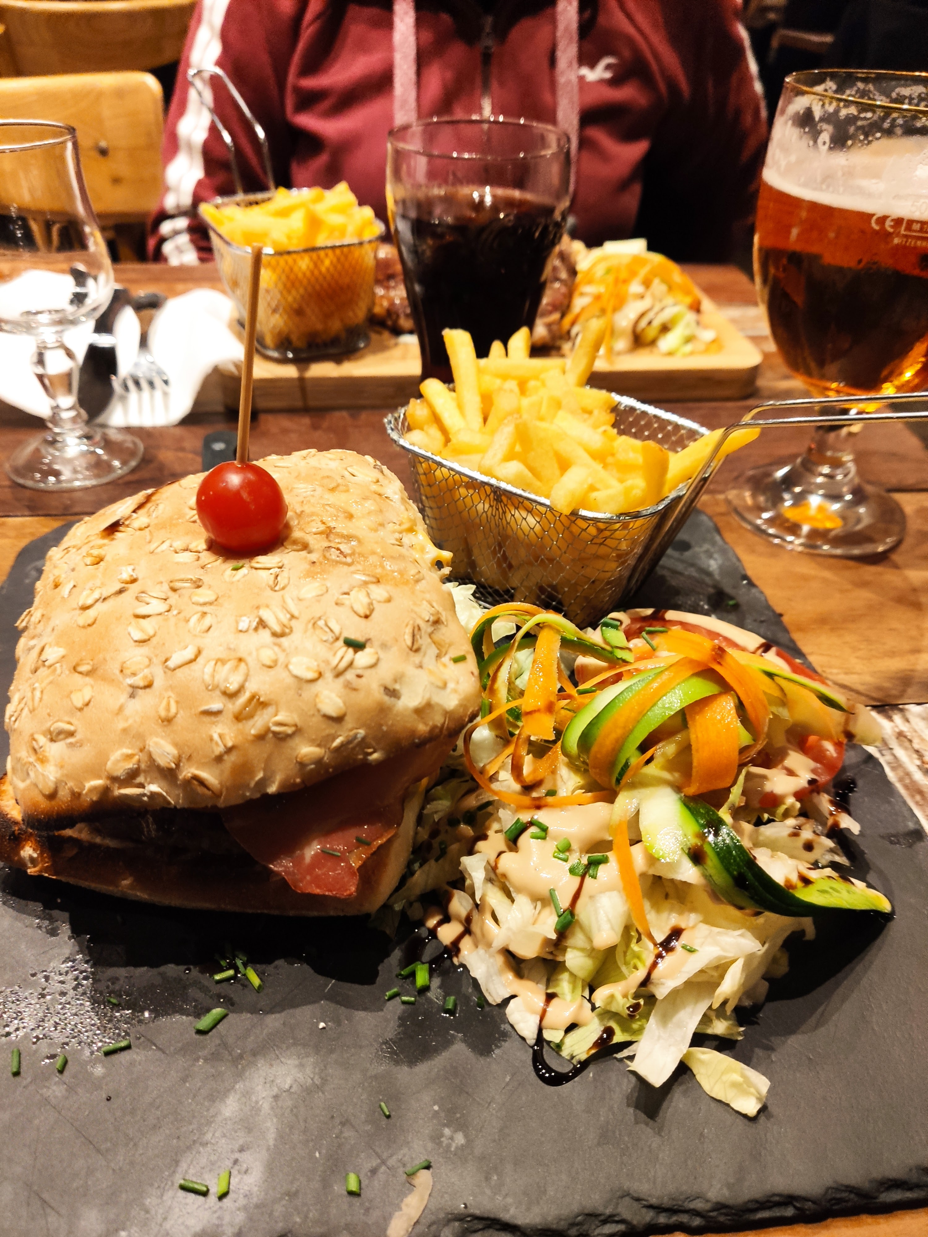 Nous avons mangé un burger XXL qui porte bien son nom ! Très bon burger, accompagné d'une salade de différents légumes et de frites. Du sel de camargue est à disposition à table. Nous avons très bien mangé, au cœur de la vieille ville. Le service était rapide, et le personnel souriant !
