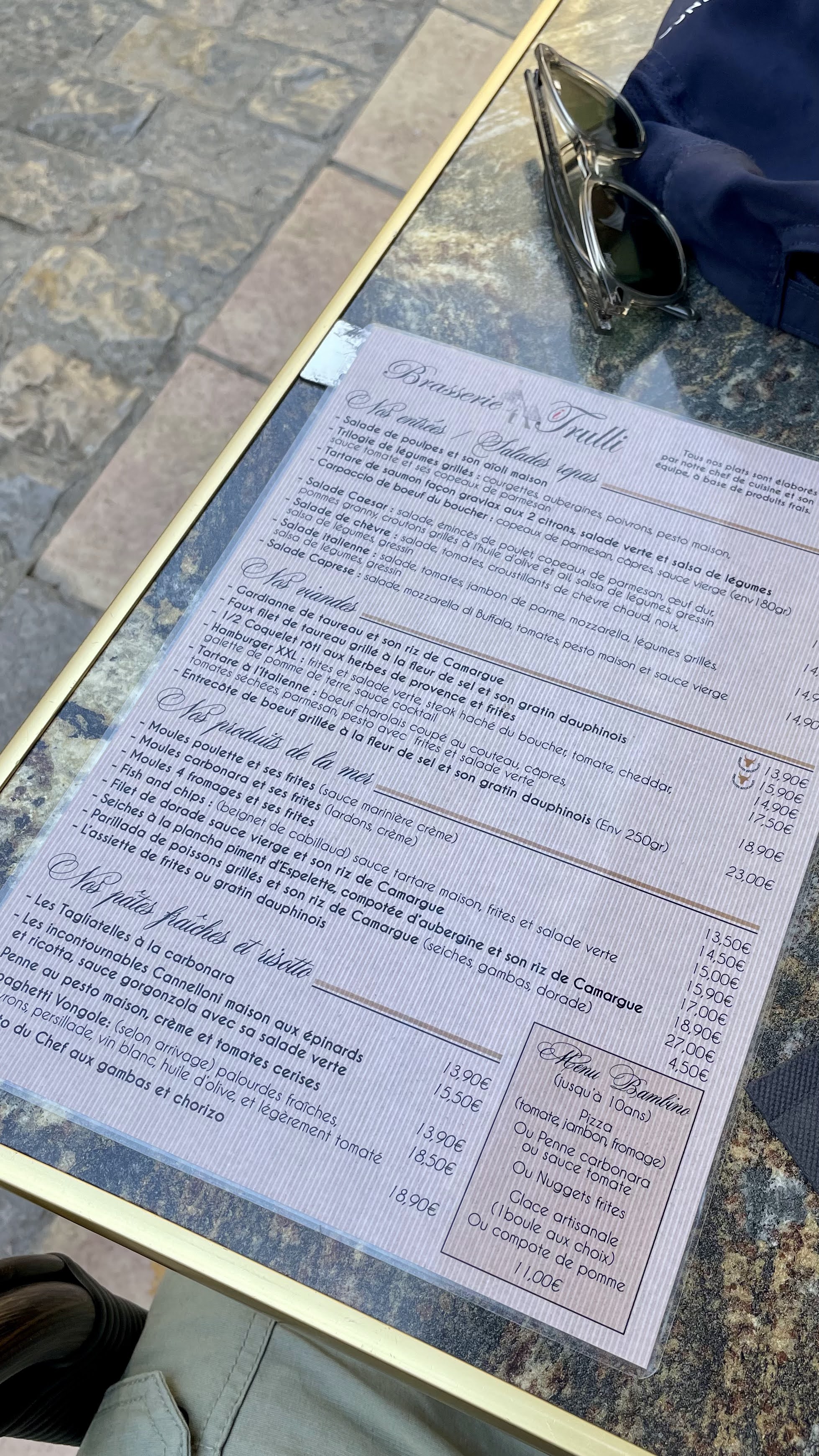 De passage à Aigues-Mortes nous nous sommes arrêtés sur cette terrasse au soleil. Monsieur était très agréable. Mes amis se sont régalés des cannellonis, quand j’ai adoré le gratin dauphinois.