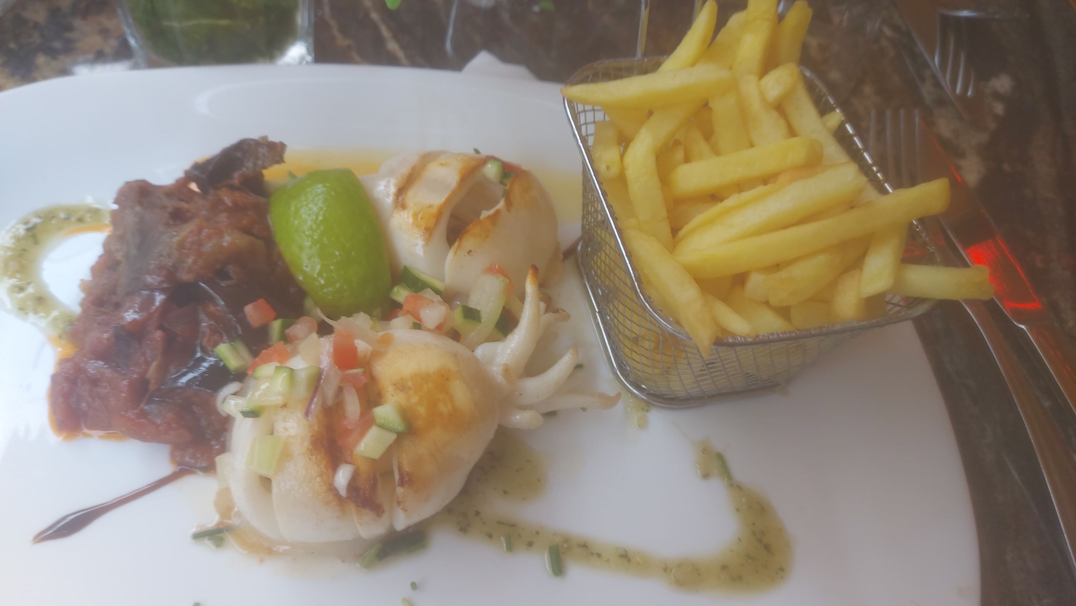 Nous avons trés bien mangé, c'était délicieux ! Parillada de poissons exquise, et filet de st pierre pareil. Café gourmand trés gourmand, avec un sorbet fruit rouge, un tiramisu, mousse chocolat, une panna cota, avec un café evidemment. Service irréprochable, et pas de temps d'attente. Je recommande les yeux fermés.