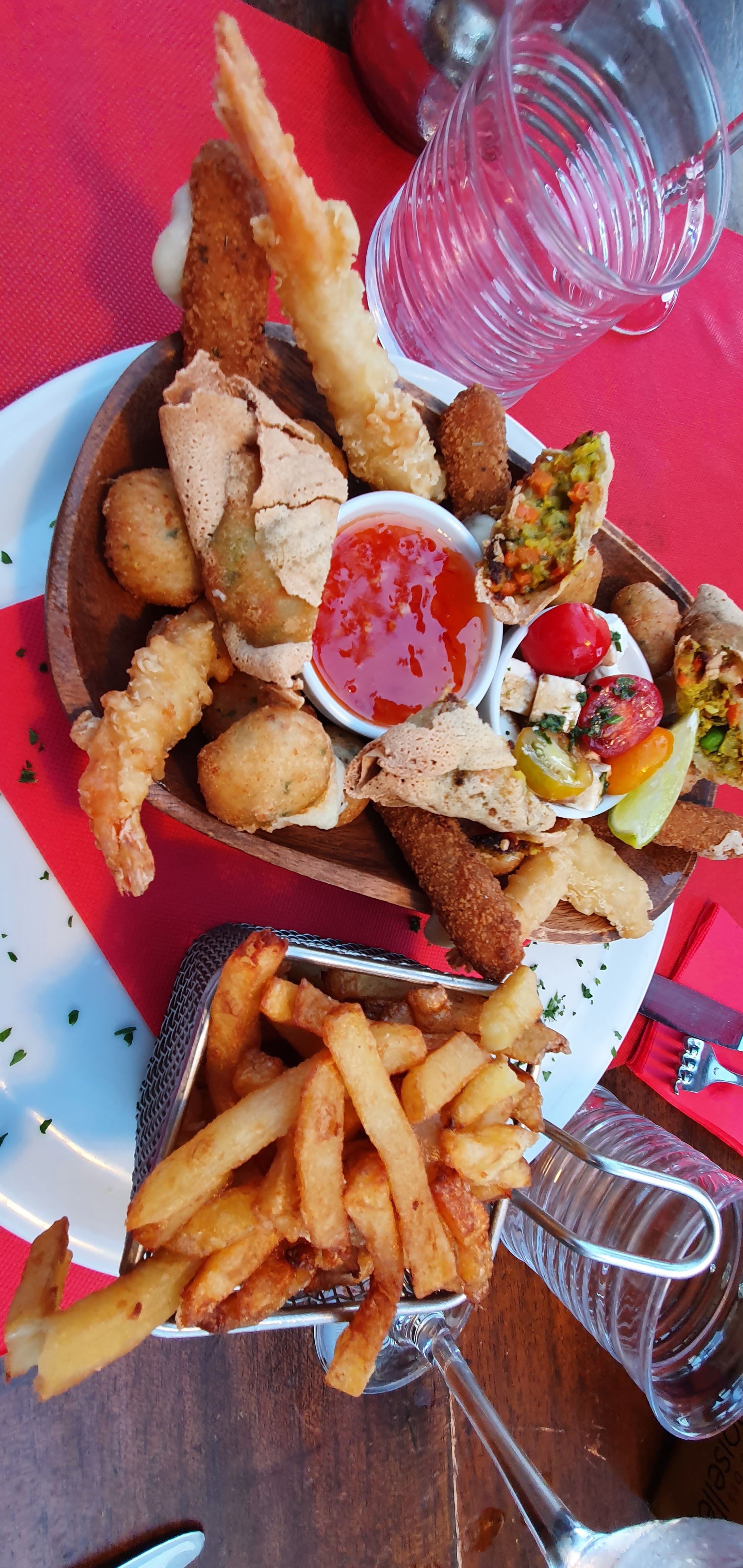 Super bon repas bien copieux. Spécialités les brochettes aux poissons et viandes extras... Dommage que les verres soient ebrecher au niveau des pieds. Je recommande mais ce serait bien de changer de verres