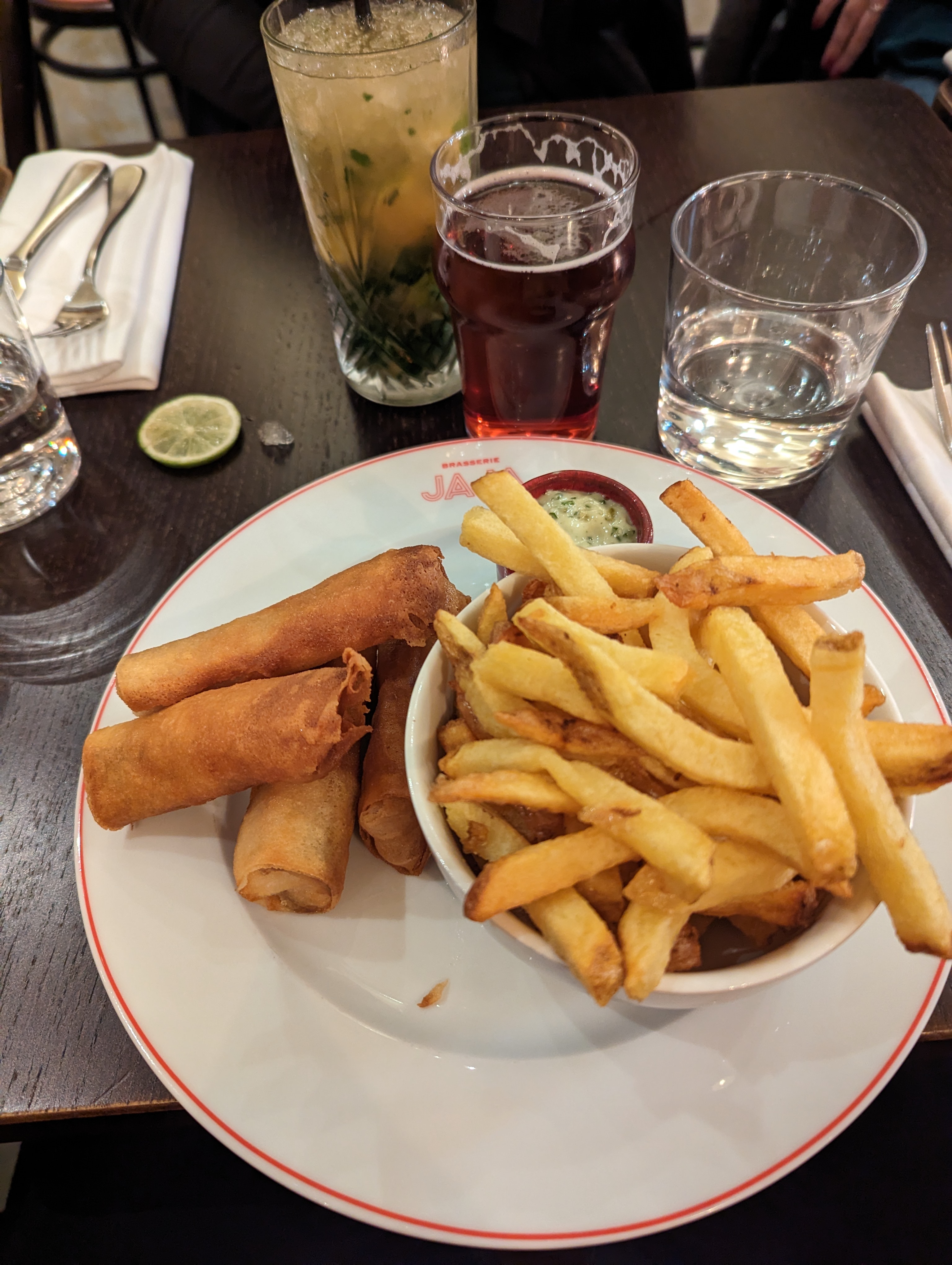 Repas extrêmement décevant. Prix élevés pour des quantités et une qualité déplorables. Je n’ai pas pu finir mon plat tellement c’était mauvais. Croustillant d’agneau à 27 euros qui avait l’air d’une bouille infâme servie avec un gros nem frit, on ne s’attend pas à cela dans une brasserie avec des prix si élevés. Incompréhensible comment certaines reviews qualifient la nourriture de bonne dans cet endroit.