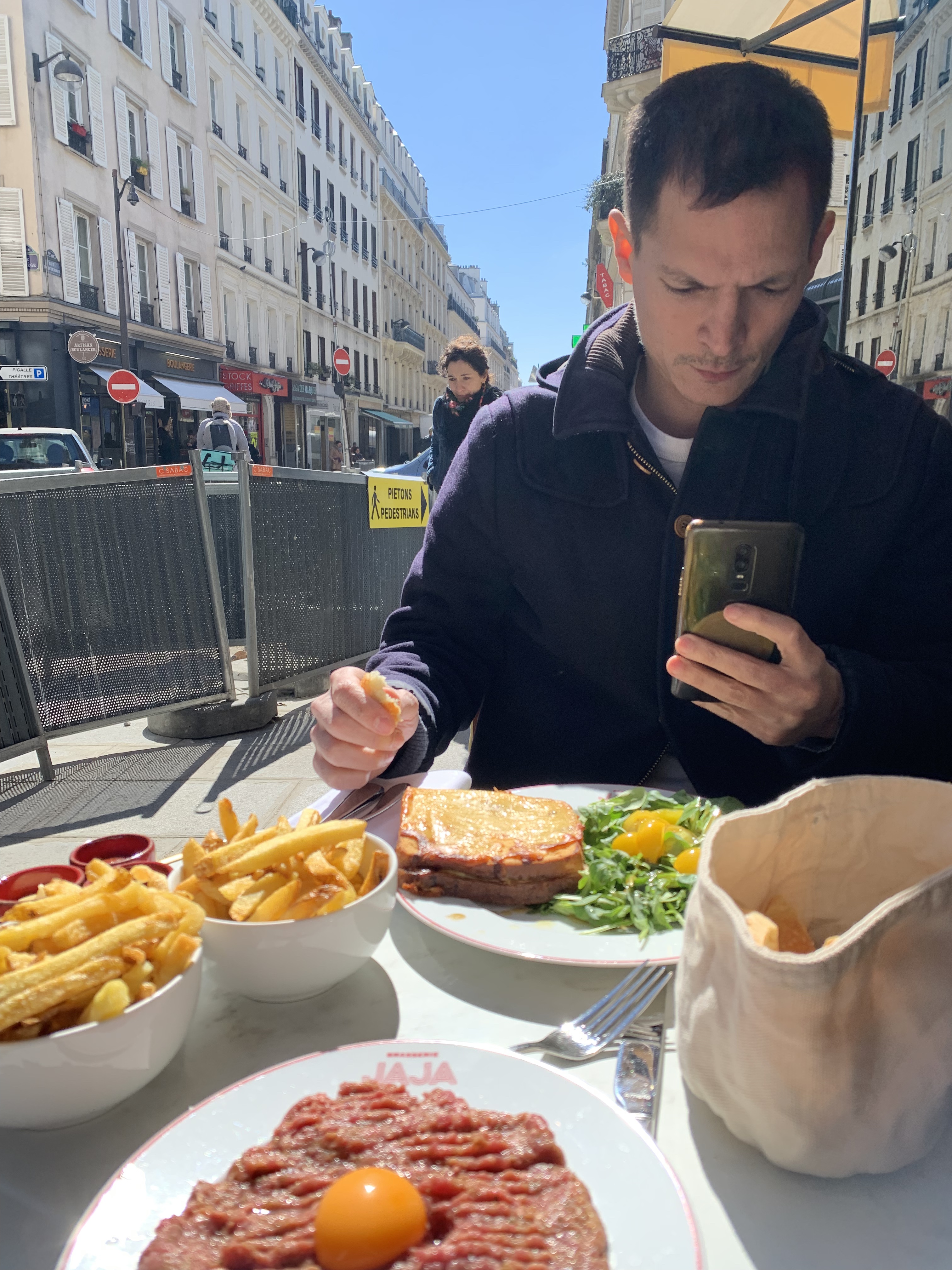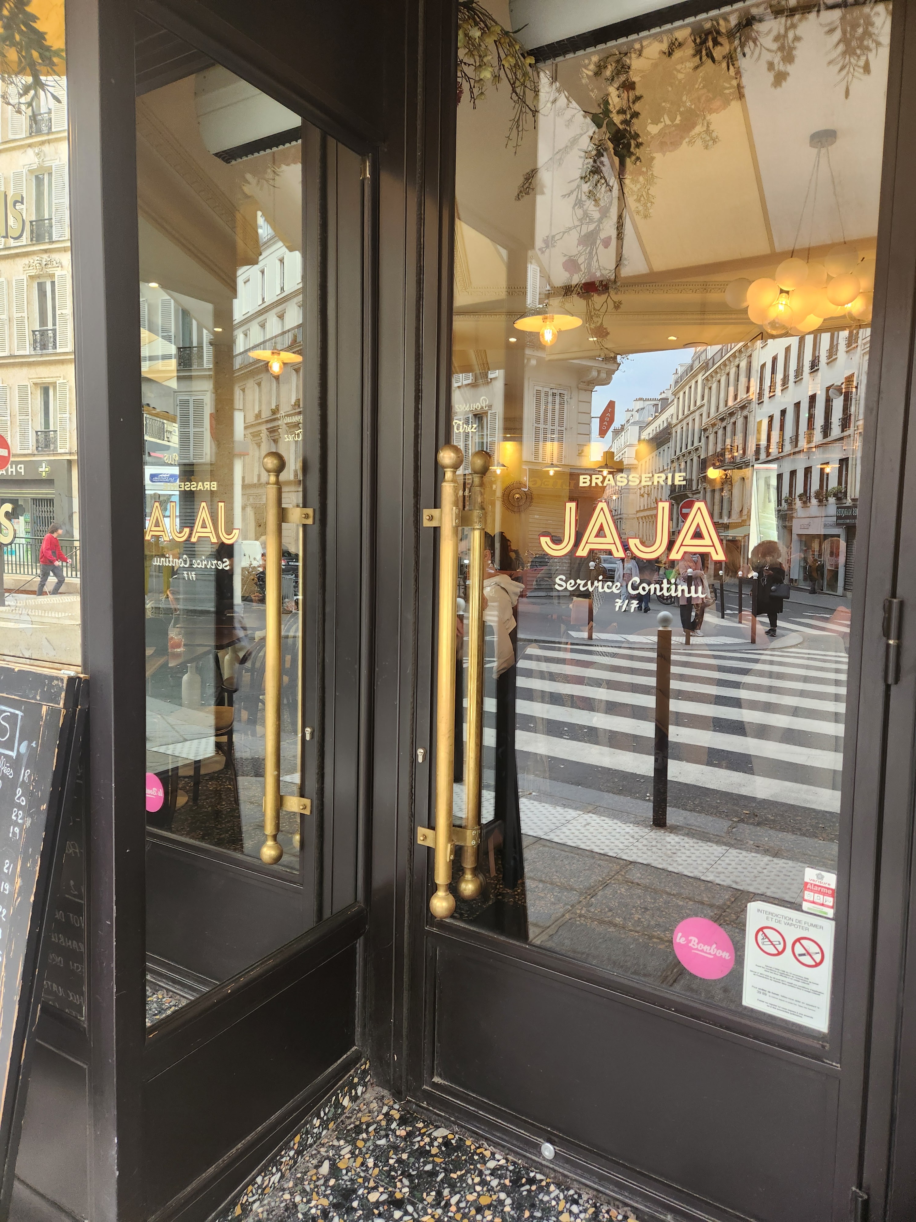 Súper brasserie pour un jour ensoleillé. Il y a du soleil des deux côtés jusqu’à 14h30 des le mois d’avril. Leur tartare frite fait vraiment plaisir. On se rappellera d’un petit dej en terrasse + café + digeot. Un must pour un jour ensoleillé. A noter que les toilettes sont un peu discrète et séparé du reste du resto. Le saviez vous « Jaja » veut dire : - en francais : du vin - en espagnole : c’est l’équivalent de hahah (onomatopée du rire) - en allemand : ja ja > oui oui > lèche moi le c**