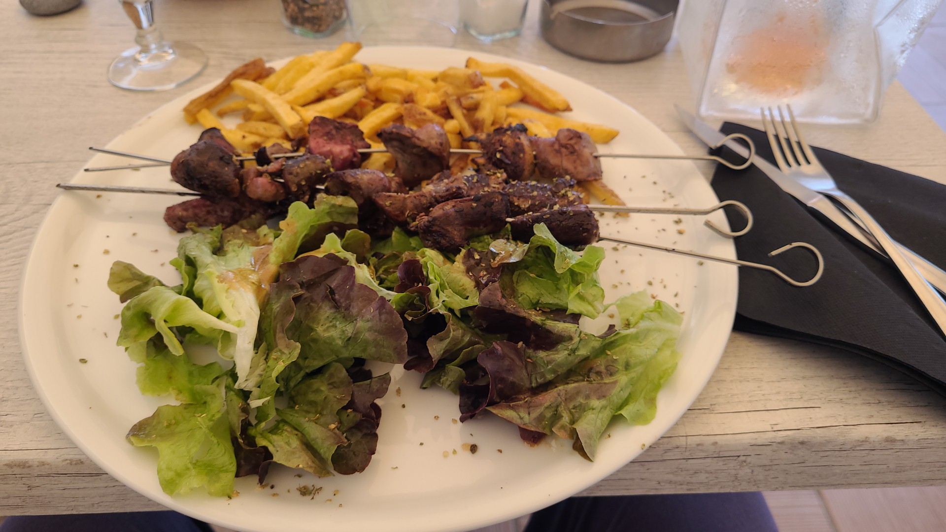 Un repas sur le pouce, le plaisir de bonnes brochettes un cadre agréable en terrasse, un service rapide. Tout y est pour passer un agréable moment. Je recommande la tarte aux figues c'est un déluge de douceur.