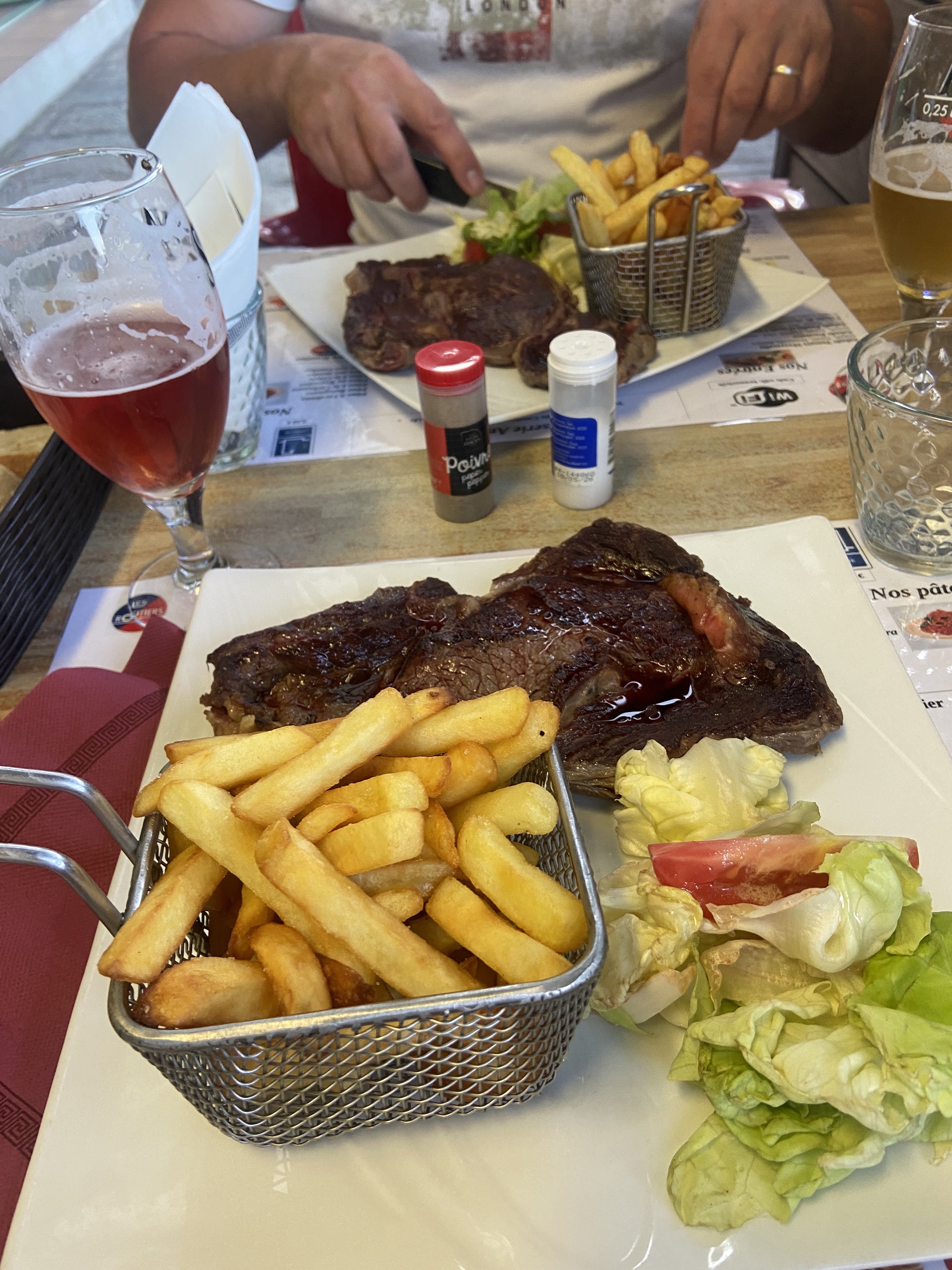 Accueilli chaleureusement par le patron ? Nous avons opté pour une entrecôte cuite à la perfection et tendre. Nous n’avons pas été déçu ! Un des seul restaurant ouvert un dimanche vers notre hôtel.