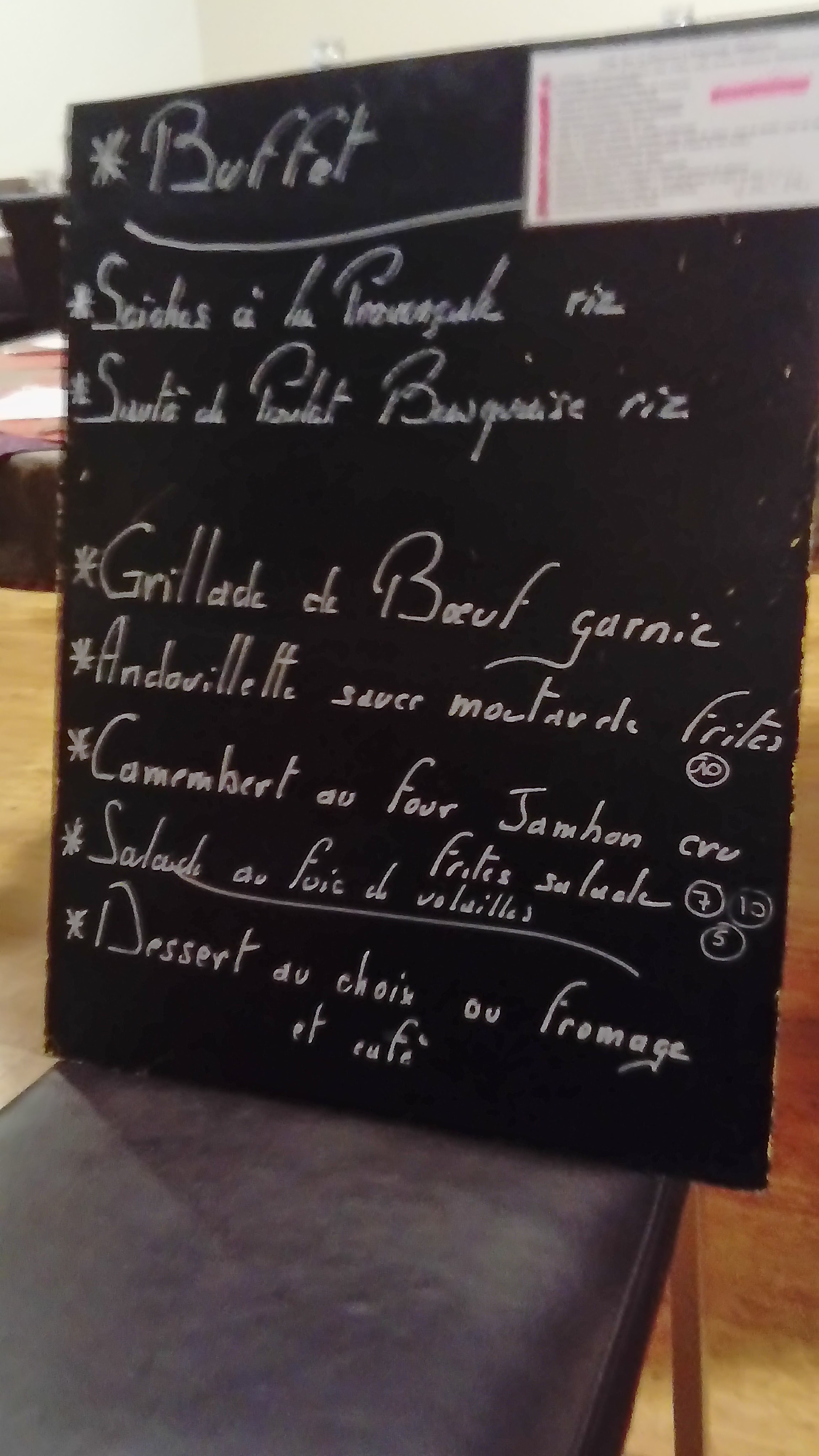 Première visite aujourd'hui un excellent accueil, un plat du jour cuisses de grenouilles pour 12 euros !!! Et je me suis régalée je recommande fortement