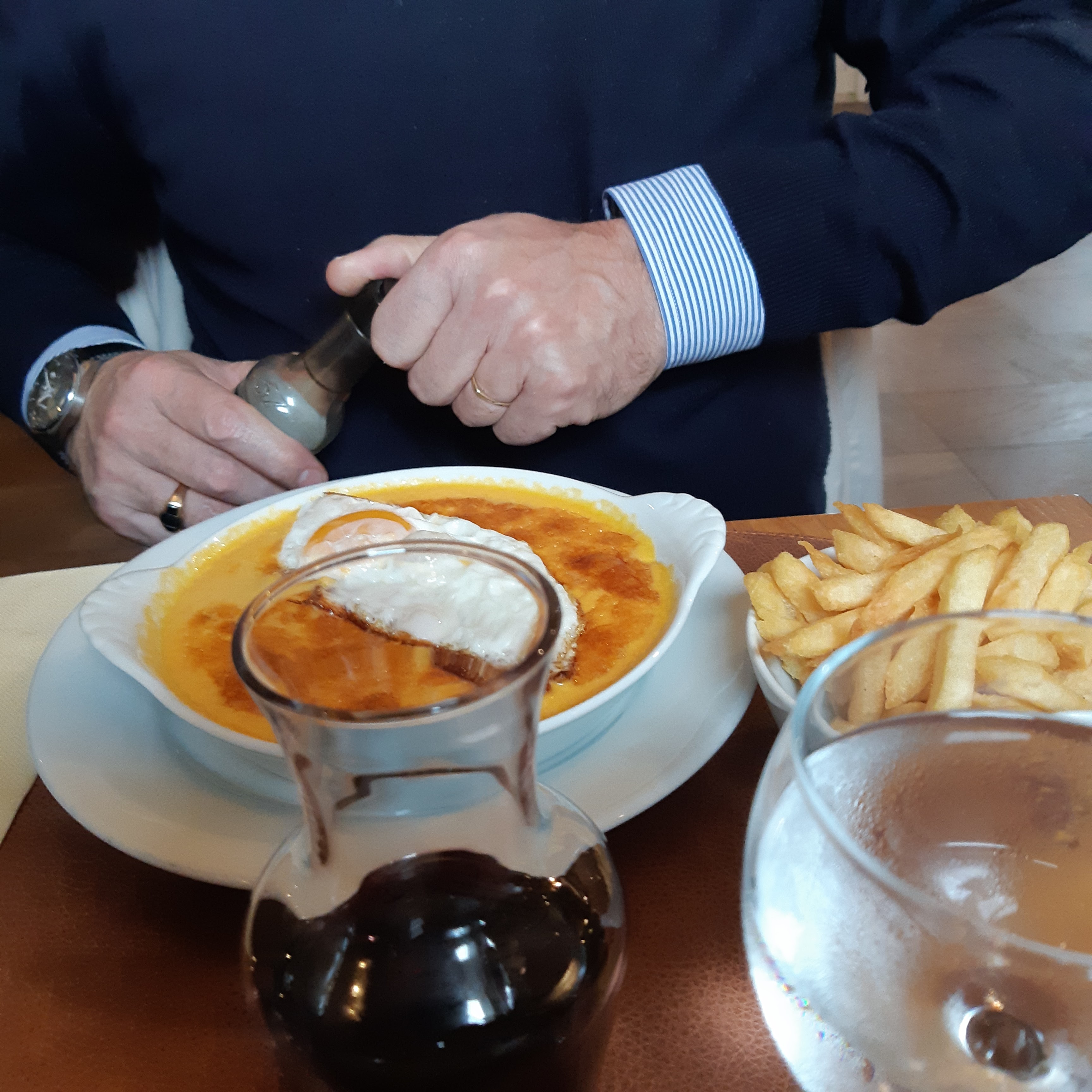 . Cappuccino de langoustine fade et décevant avec un mélange de ratatouille ( qui sert de garniture pour d’autres plat). . Thon mi-cuit cuit comme une semelle. Plat changé sans difficulté après en avoir fait la remarque. Changé pour des croquettes de crevettes grises …. Car à voir le premier … on n’a pas voulu prendre deux fois le risque. . Un sole meunière correcte mais servie avec des pommes de terre à l’eau juste cuites. Nous avons dû tomber sur un mauvais jour .. mais nous n’y reviendrons plus. Déjà une fois au printemps c’était limite. Peut être juste pour y dormir.