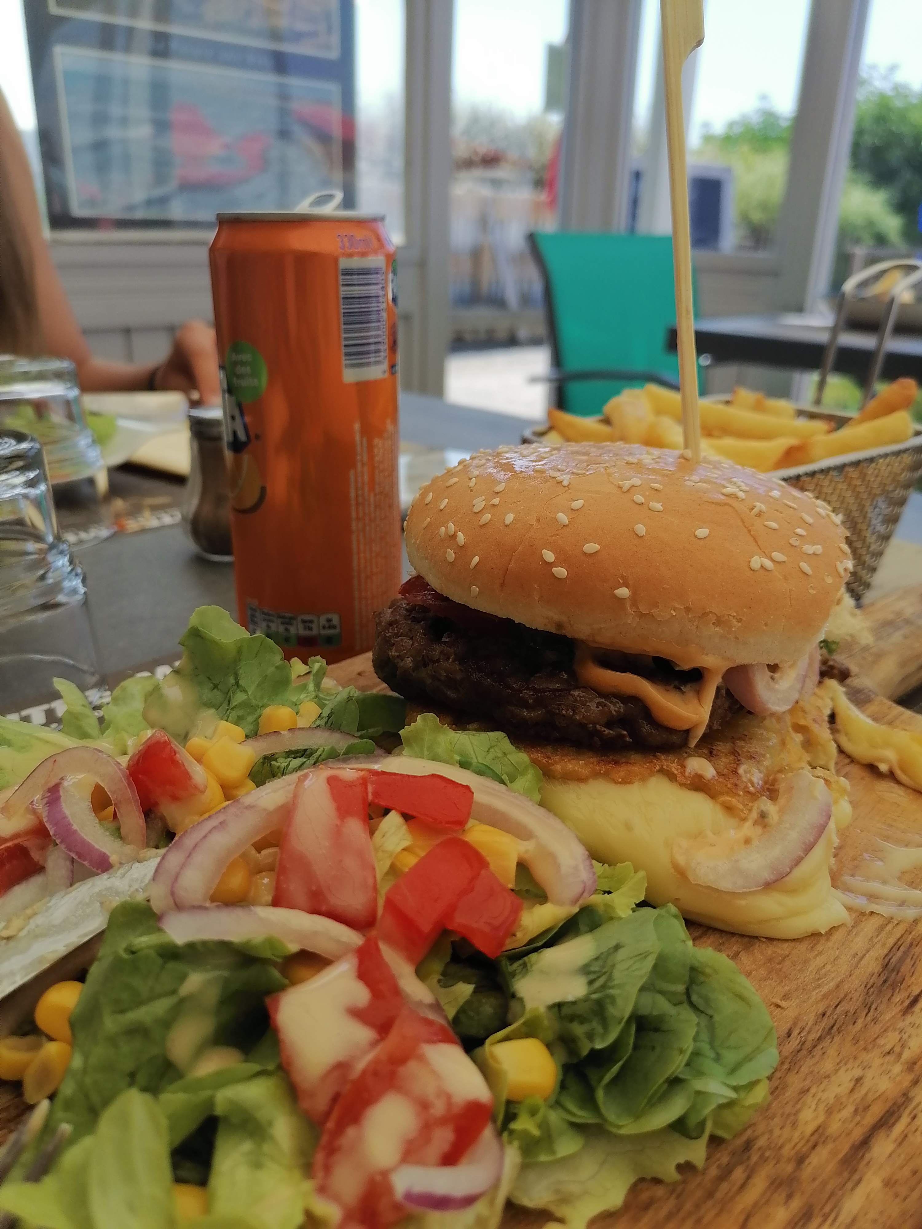 Très sympathique, restaurant complet mais le gérant est arrangeant, on patiente un peu, on a une table et on est même replacé en terrasse quand des places se libèrent ! Et la nourriture est très bonne : le fromage dans le burger est à tomber !