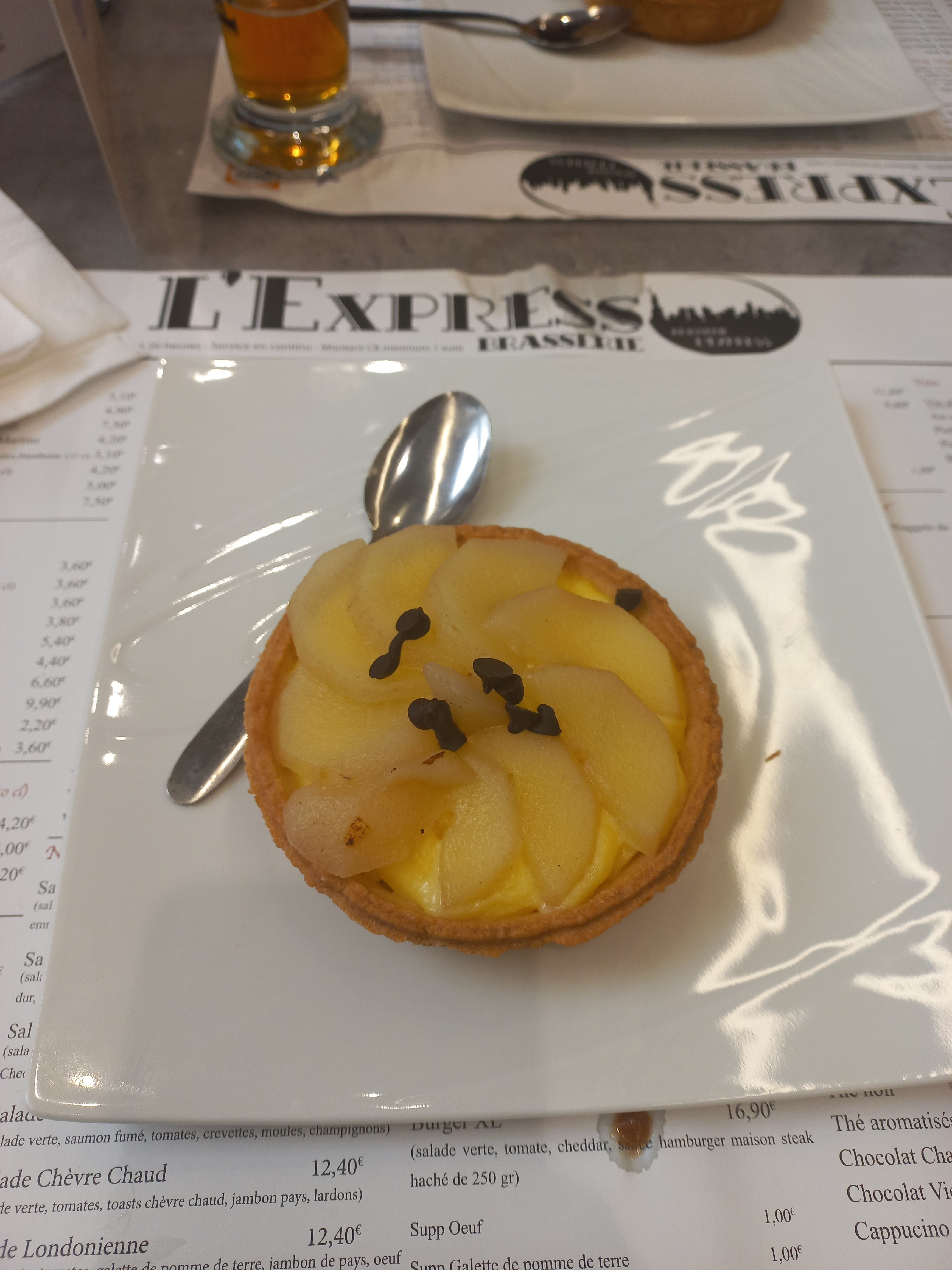 La brasserie L'Express à ne pas venir un dimanche en fin de service! Plusieurs serveurs mais que 1 qui sert et qui complète ment débordée et fatigué comme elle même le dit au client qui veulent être servis. Les tables ne sont pas débarrasser, les horaires ne sont pas changé. La serveuse oublie certaine de nos consommations ce qui fort dommage quand il reste que 4 table à servir. En ce qui concerne la nourriture et les boissons et glace. Vraiment à revoir! Le milkshake à 5€50 qui et tout petit et qui n'a pas de goût. La dame blanche à 6€90 où tu n'a le droit cas 1 boule de glace de la chantilly et un coulis de chocolat et avoir le reste de la coupe de glace vide. Le prix et totalement abusé. On demande un ice tea on futea ce qui n'est pas la même chose.La crêpe au Nutella pas de goût. Je ne conseille vraiment pas !