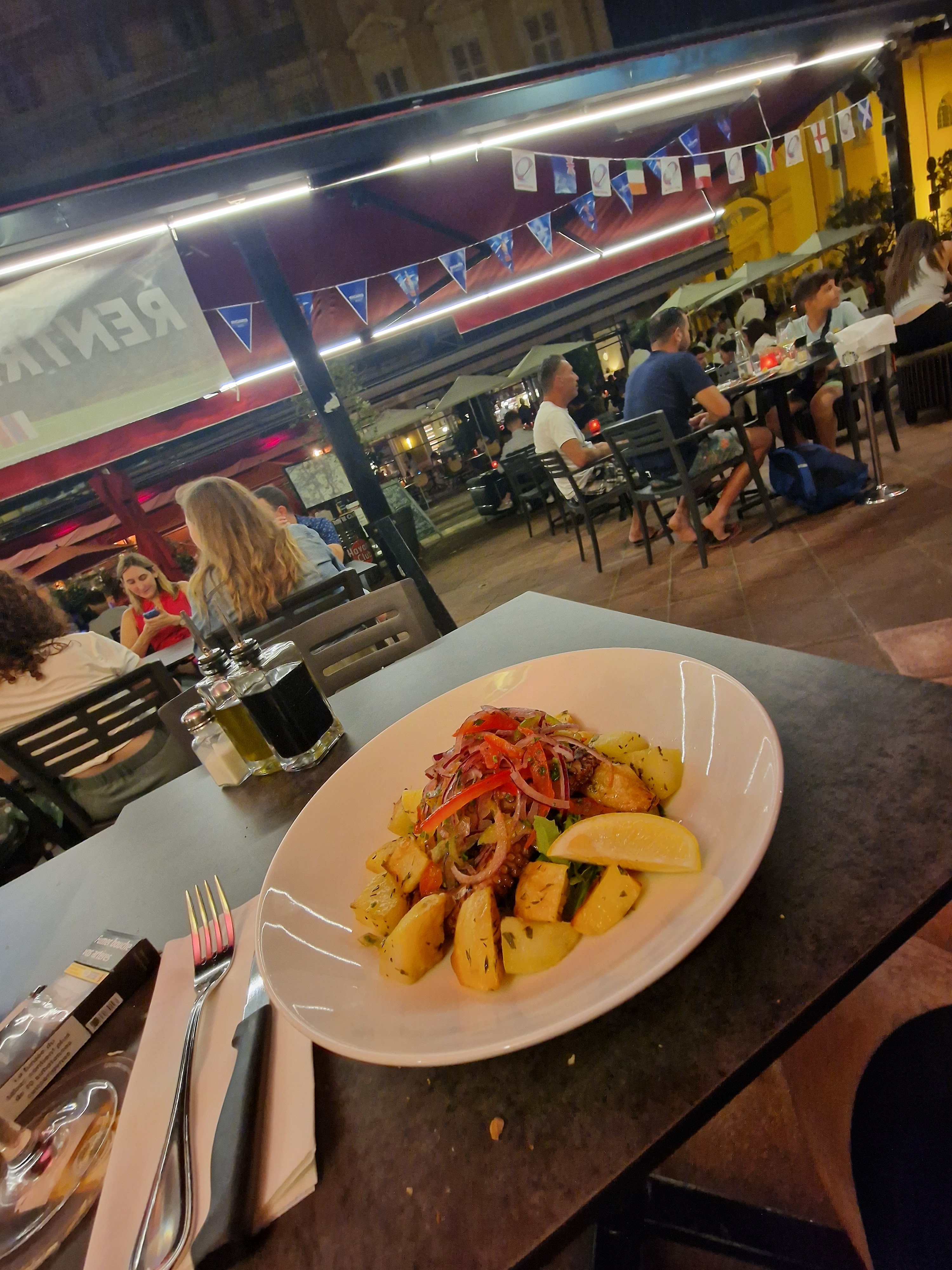Nous avons commandé 4 plats différents. Tout était très bon. Le poulpe grillé au top. La serveuse toujours souriante. Je recommande.