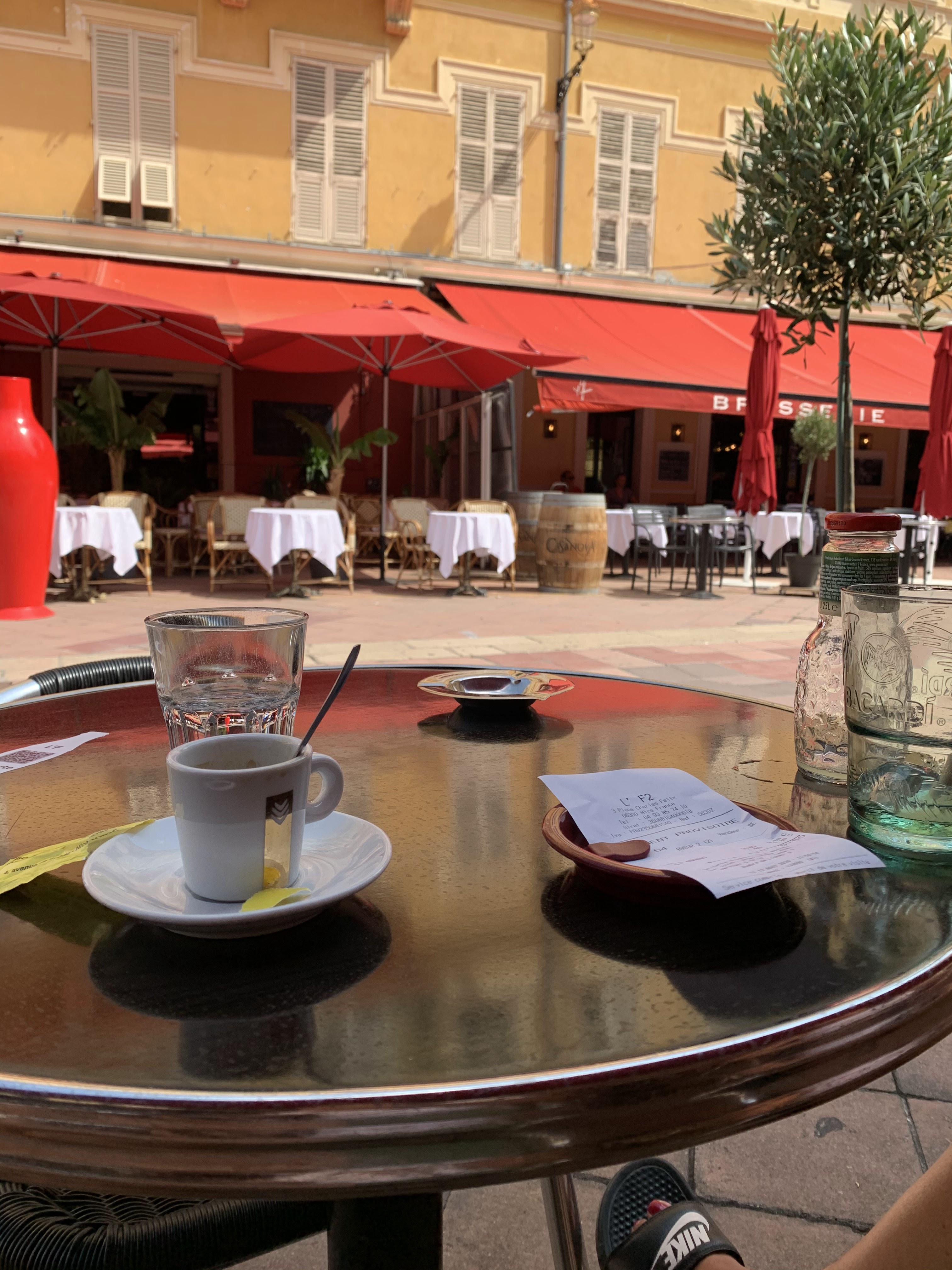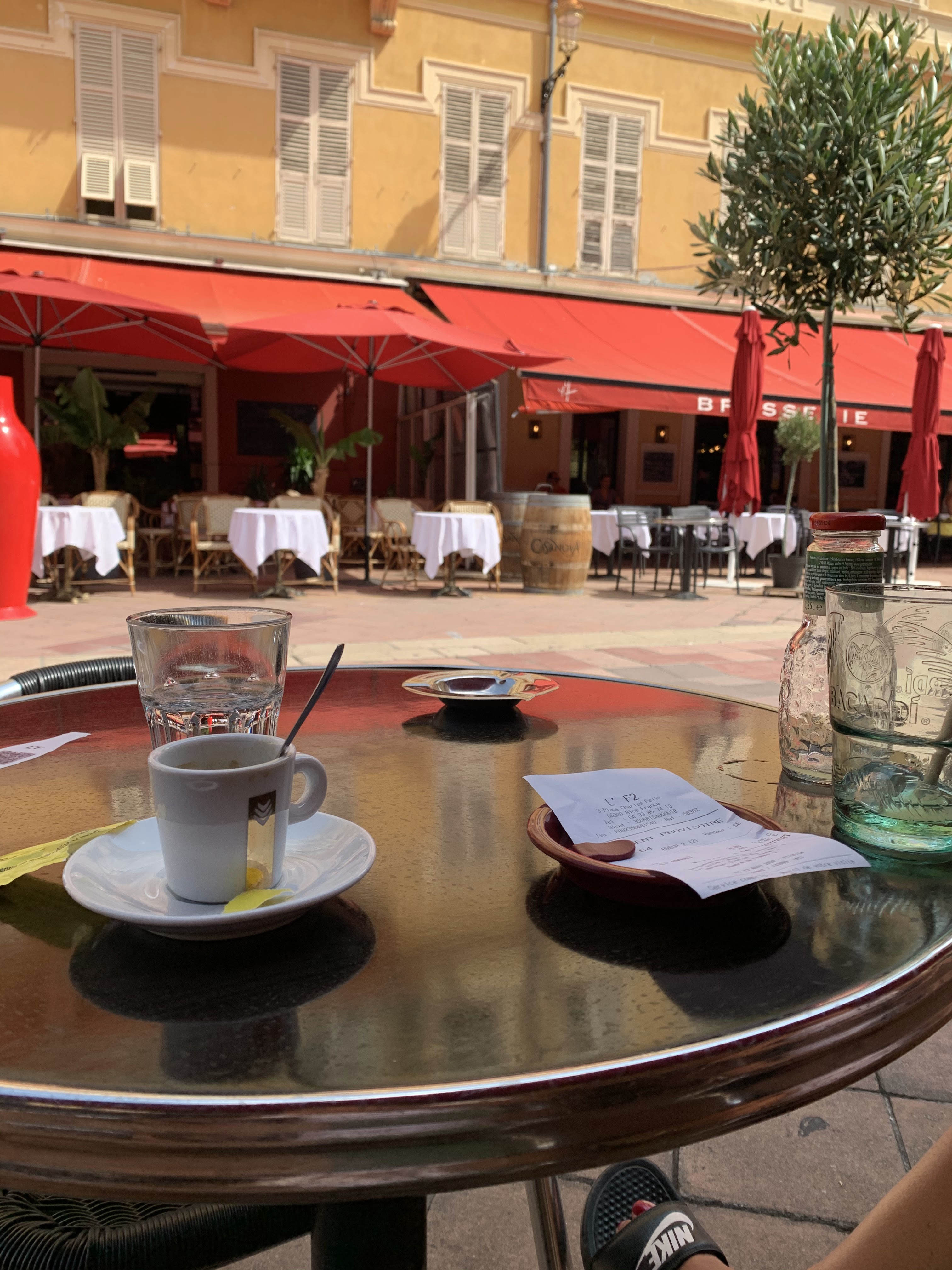Brasserie très agréable pour boire un verre en matinée. Beaucoup de place, et magnifique vue sur le bâtiment typiquement Niçois en face ! Seul bémol, il y a un peu d'attente…