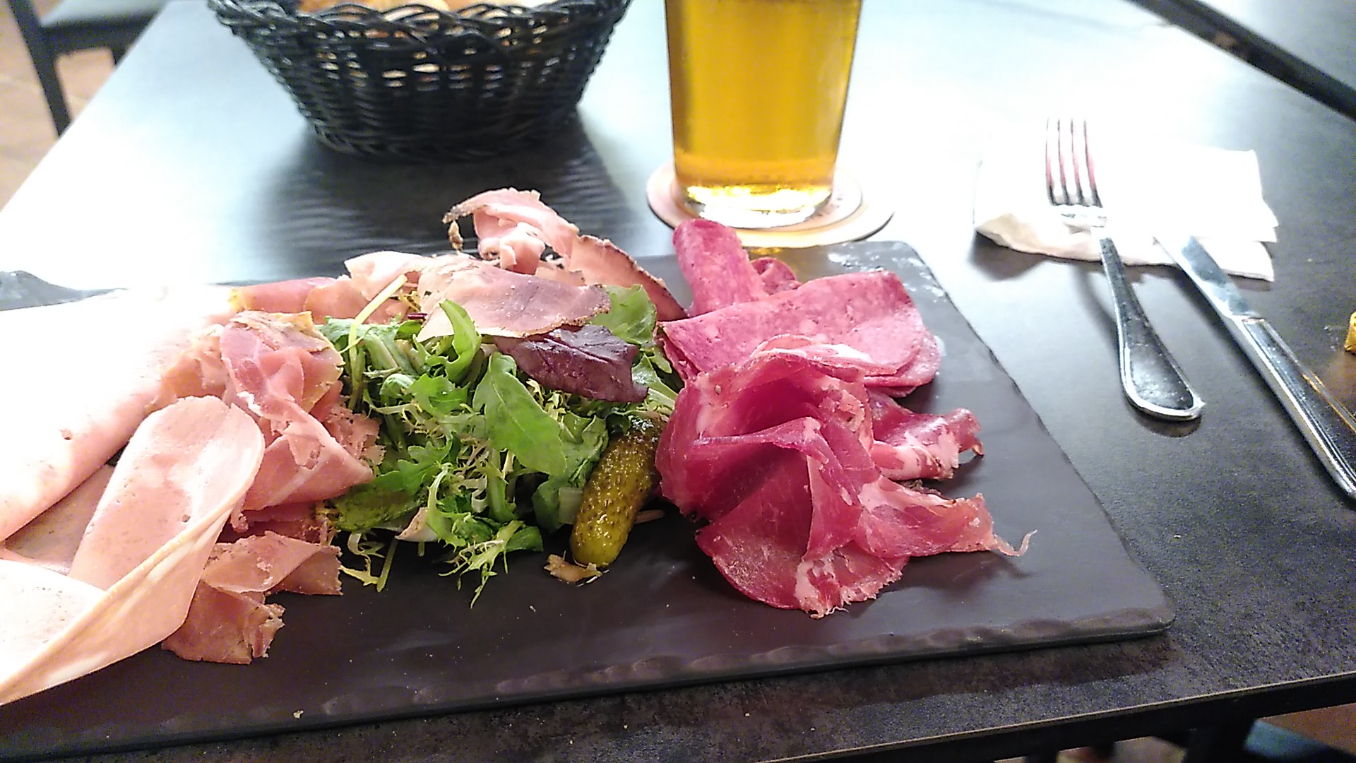 au bout de Saleya, un bar - brasserie accueillant. pour moi, c'était un en-cas tardif, (23 h!), et sympathique : assiette de charcuteries généreuse et une grande bière pression, d'abbaye. accueil chaleureux, style italien. merci!