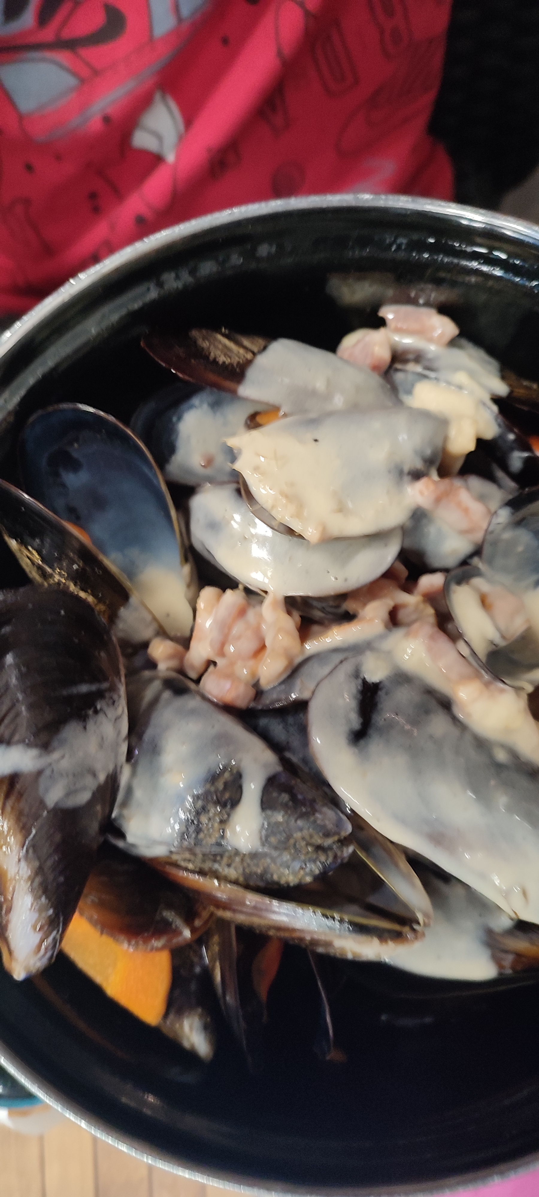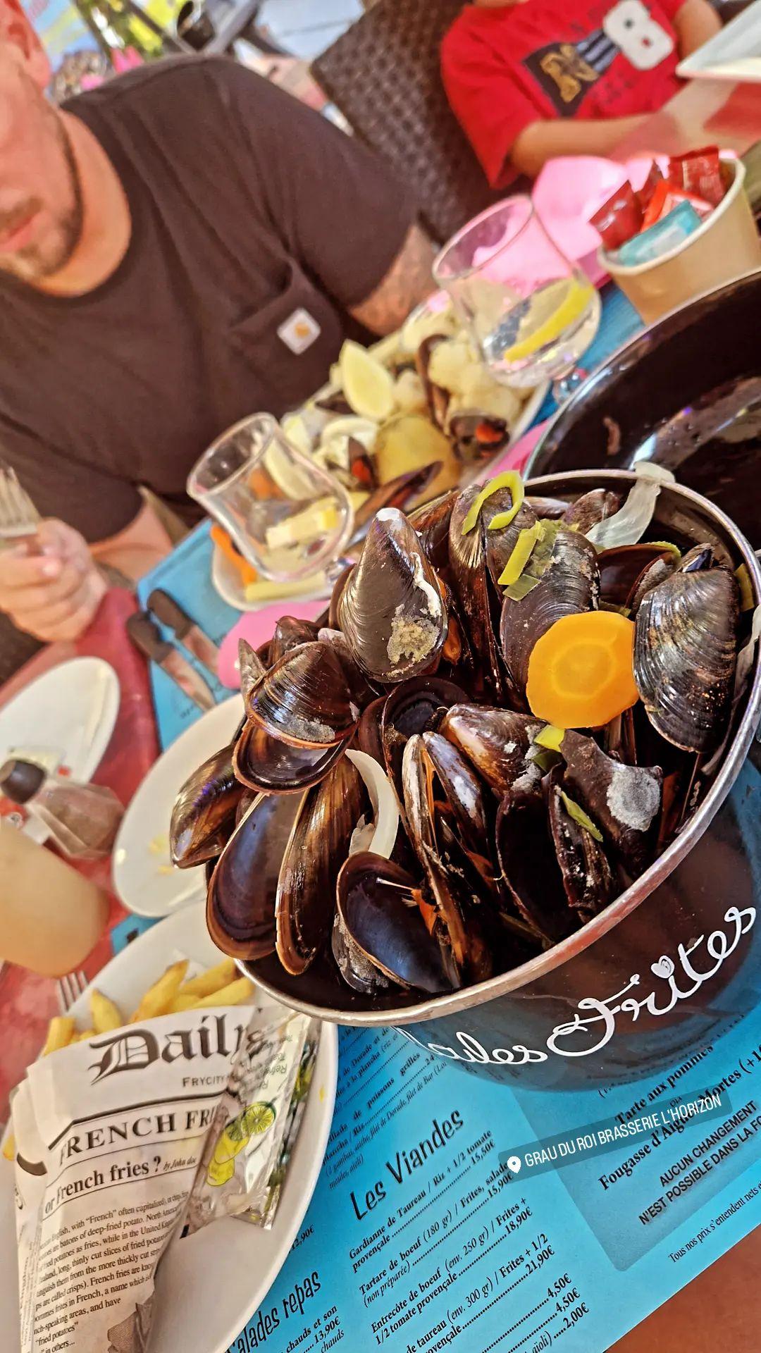 J ai lu les avis une fois a table. J ai eu très peur donc pas pris de moules. Nous avons pris pizza, hamburger et poissons. Pas déçus du tout. Cuisine simple mais bon. Les plats sont servis rapidement même si nous avons été servis les uns après les autres....
