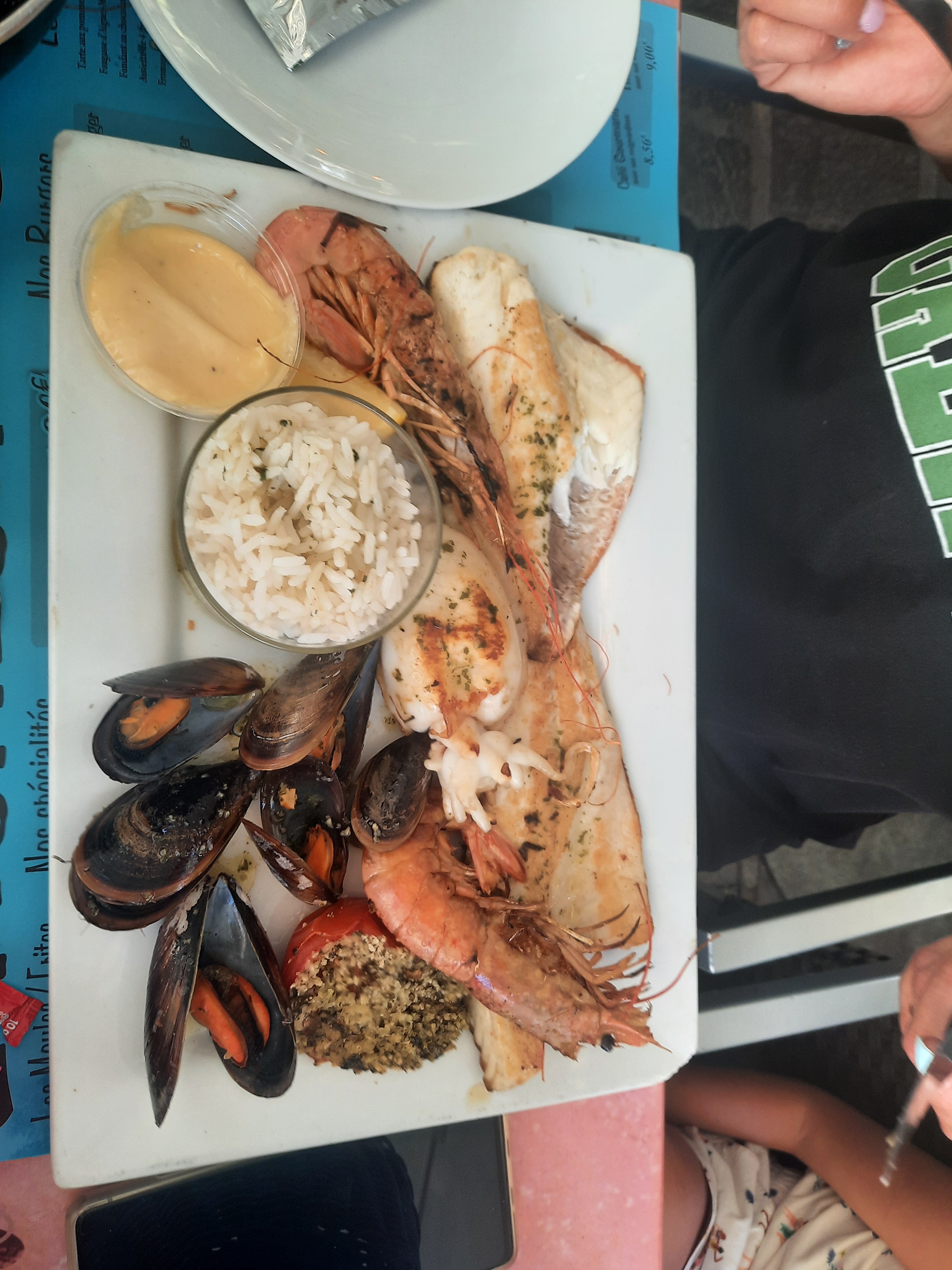 Le serveur pas très agréable même voir froid. Les plats pas terrible j'ai pris une parillada de poisson servi avec de la ratatouille pas assaisonner et le poisson, seiche et gambas trop cuit. Mes enfants on mangé pâtes aux saumon aucun goût. Une fois fini pas le temps de dire ouf qu'il fallait qu'on quitte la table. A fuir.