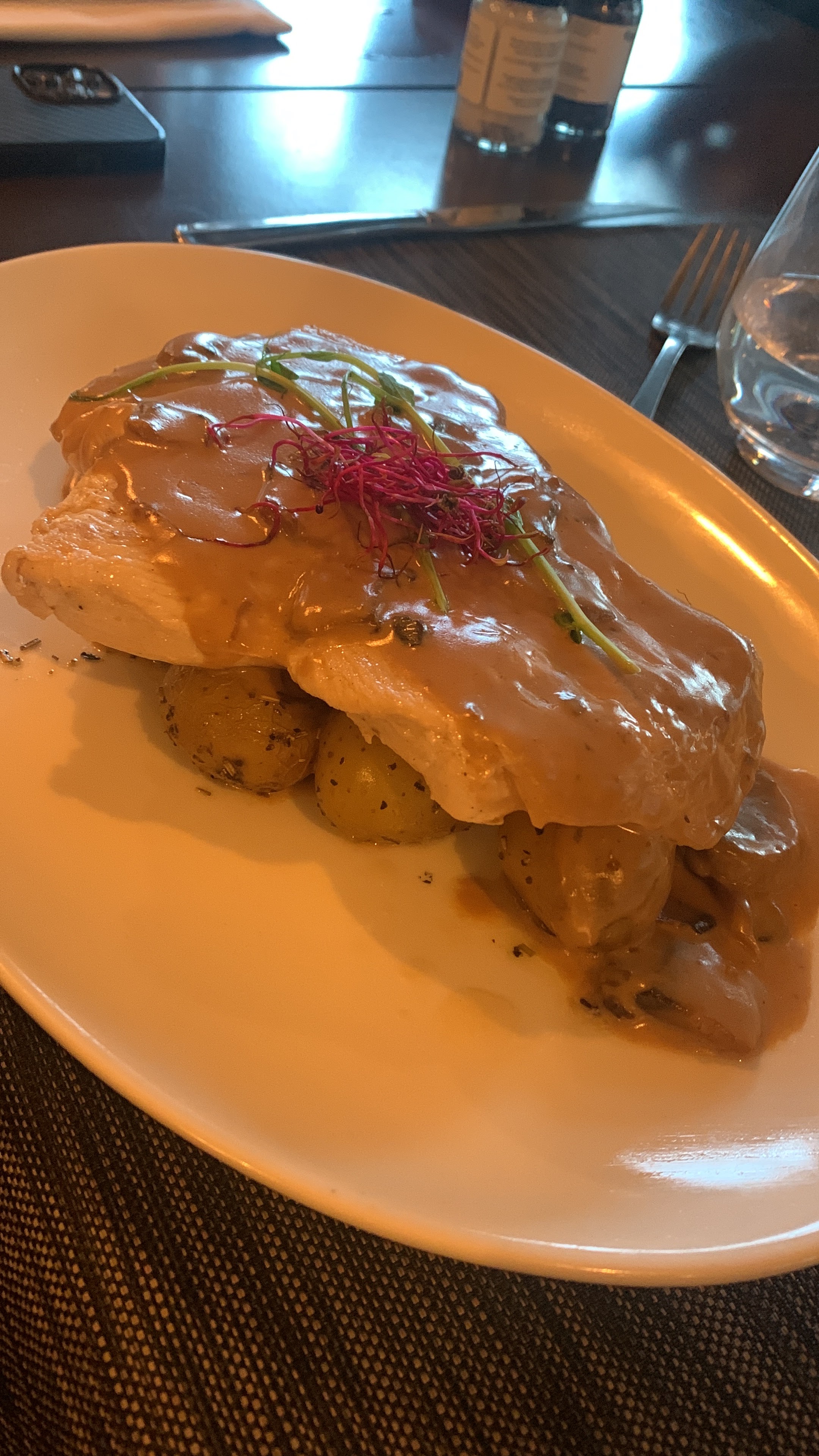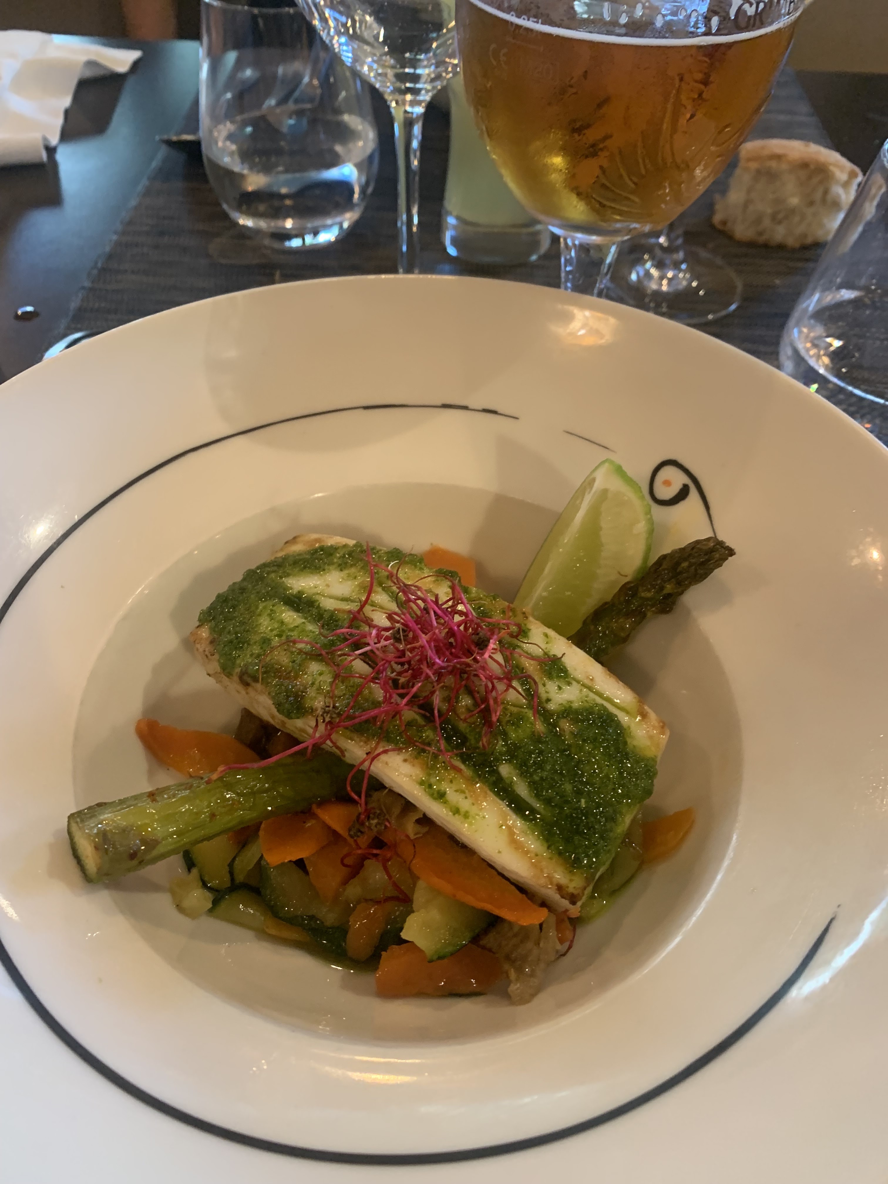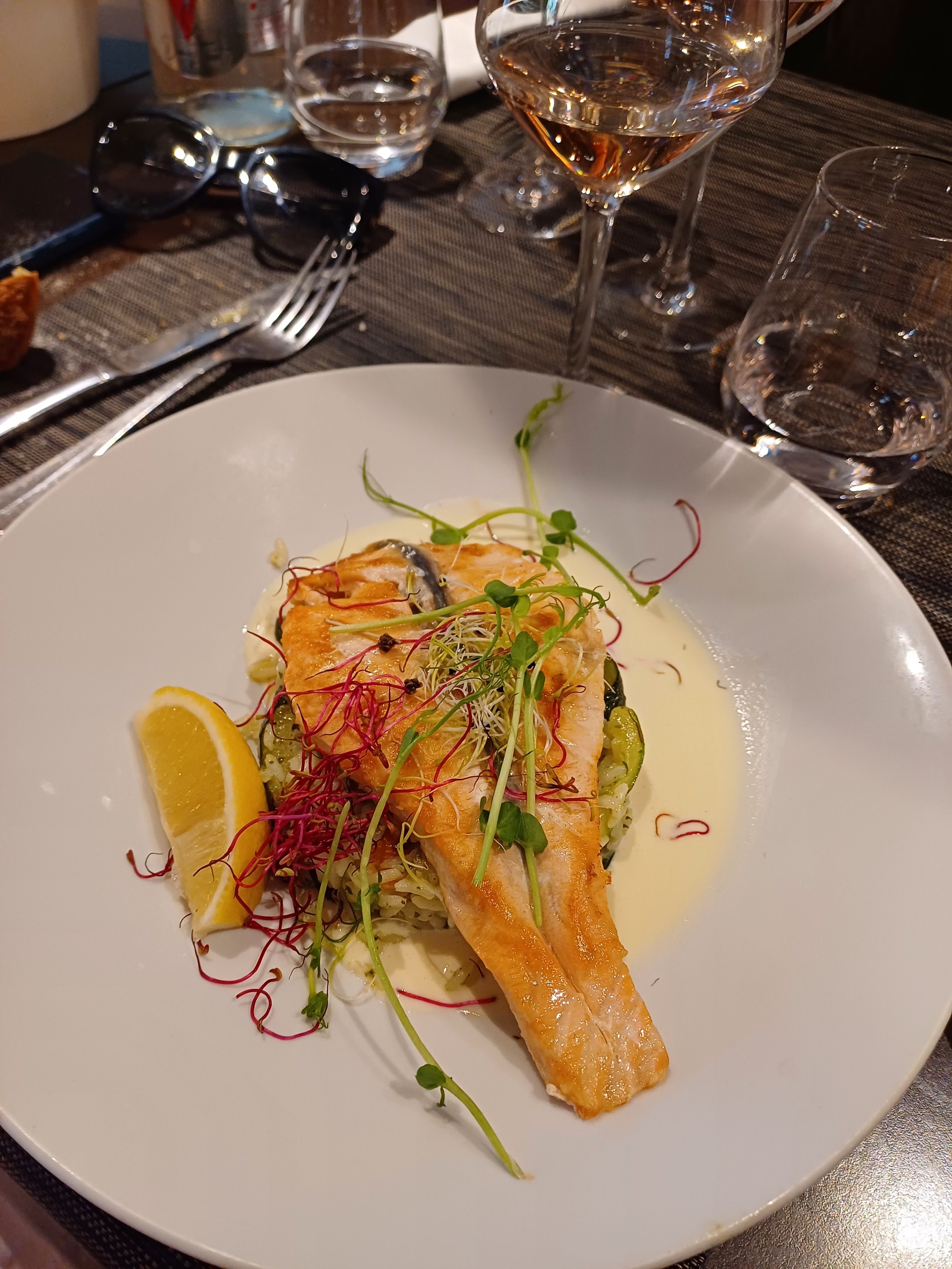 En famille (cinq personnes), nous avons passé une bonne soirée. Le serveur était agréable et souriant. Le cadre est contemporain et la cuisine plutôt moderne. Cependant, compte tenu des prix pratiqués on pouvait s'attendre à mieux. Notamment l'entrée reduite à la portion congrue. Mais la cuisine est goûteuse et l'endroit plaisant.