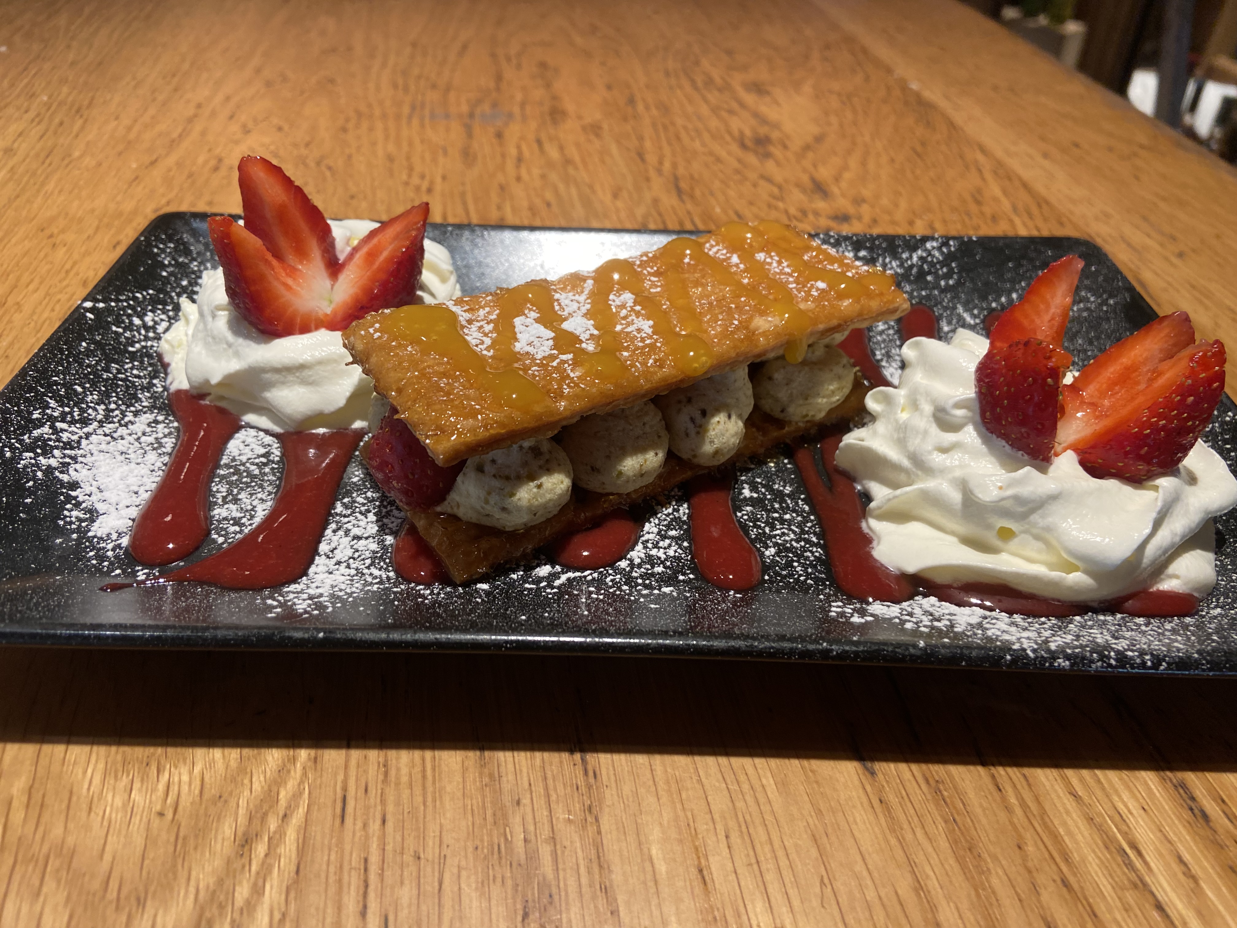 Très bon accueil, service rapide. Bon plats , bien présentés. Mais quelle déception arrivé au dessert : pas de chantilly maison mais en bombe .... Il serait convenable de le mentionner....