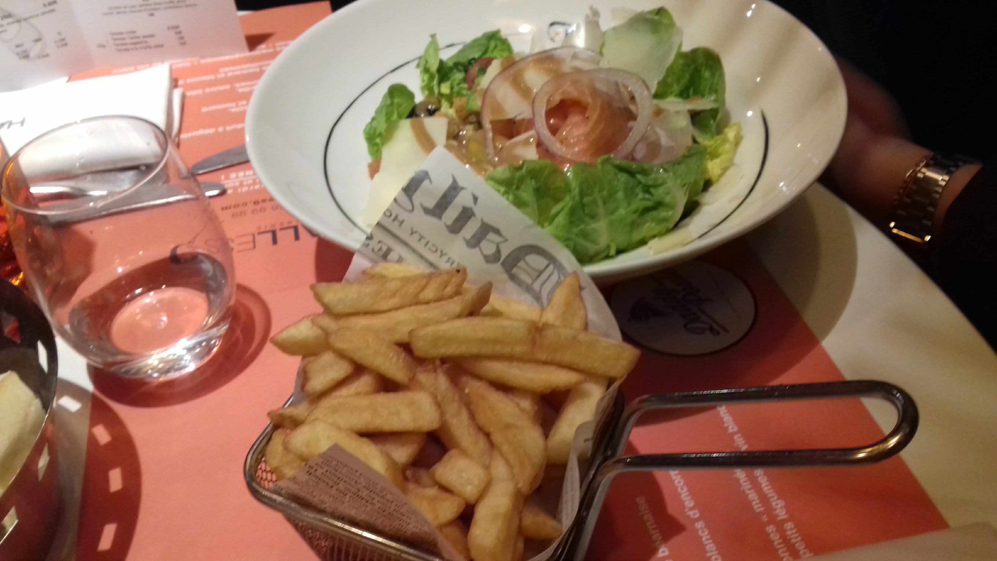 Restaurant type bistrot avec un atmosphère moderne et de grande taille. Les plats sont simples avec un service plutôt lent. Une table ronde relativement petite pour 4 personnes. Des prix bien bien élevés ..!