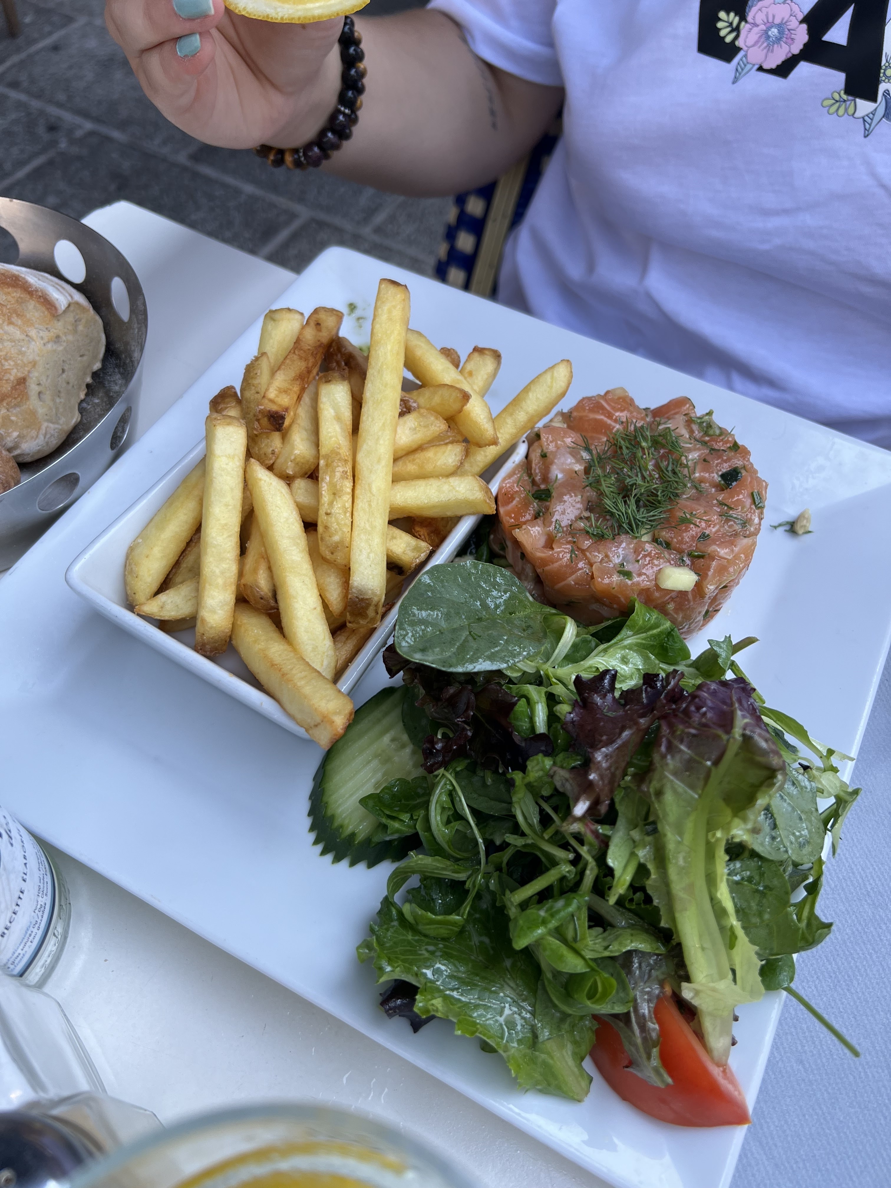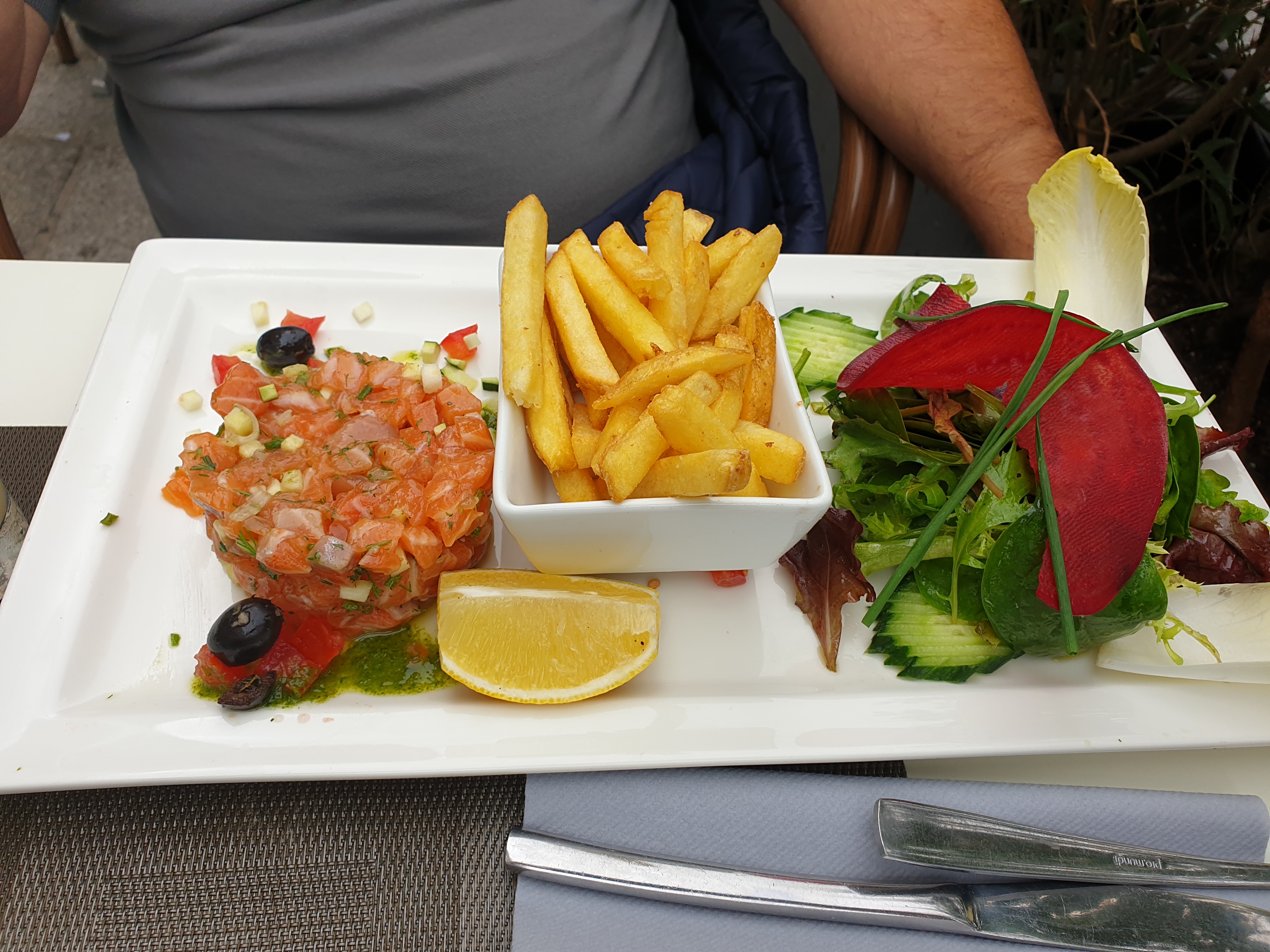 Superbe expérience culinaire, en terrasse, avec un soleil royal, en compagnie de mon Papa chéri. Le tartare de saumon est tout simplement un régal, d'une fraîcheur impeccable. C'est la digestion parfaite de ce met qui m'a confirmé la fraîcheur des produits utilisés. Je tiens à mettre en lumière et en avant tout particulièrement le professionnalisme, la gentillesse et la disponibilité sans faille de notre hôtesse LUDIVINE. J'espère que ce message pourra lui être transmis de ma part, de la part d'une jeune fille venue avec son Papa pour fêter un évènement spécial un jeudi ensoleillé. Merci à toute l'équipe en général. Service rapide, équipe accueillante et souriante sans jamais une once de stress au ressenti clientèle. BRAVO et à très vite avec le reste de la famille 😉