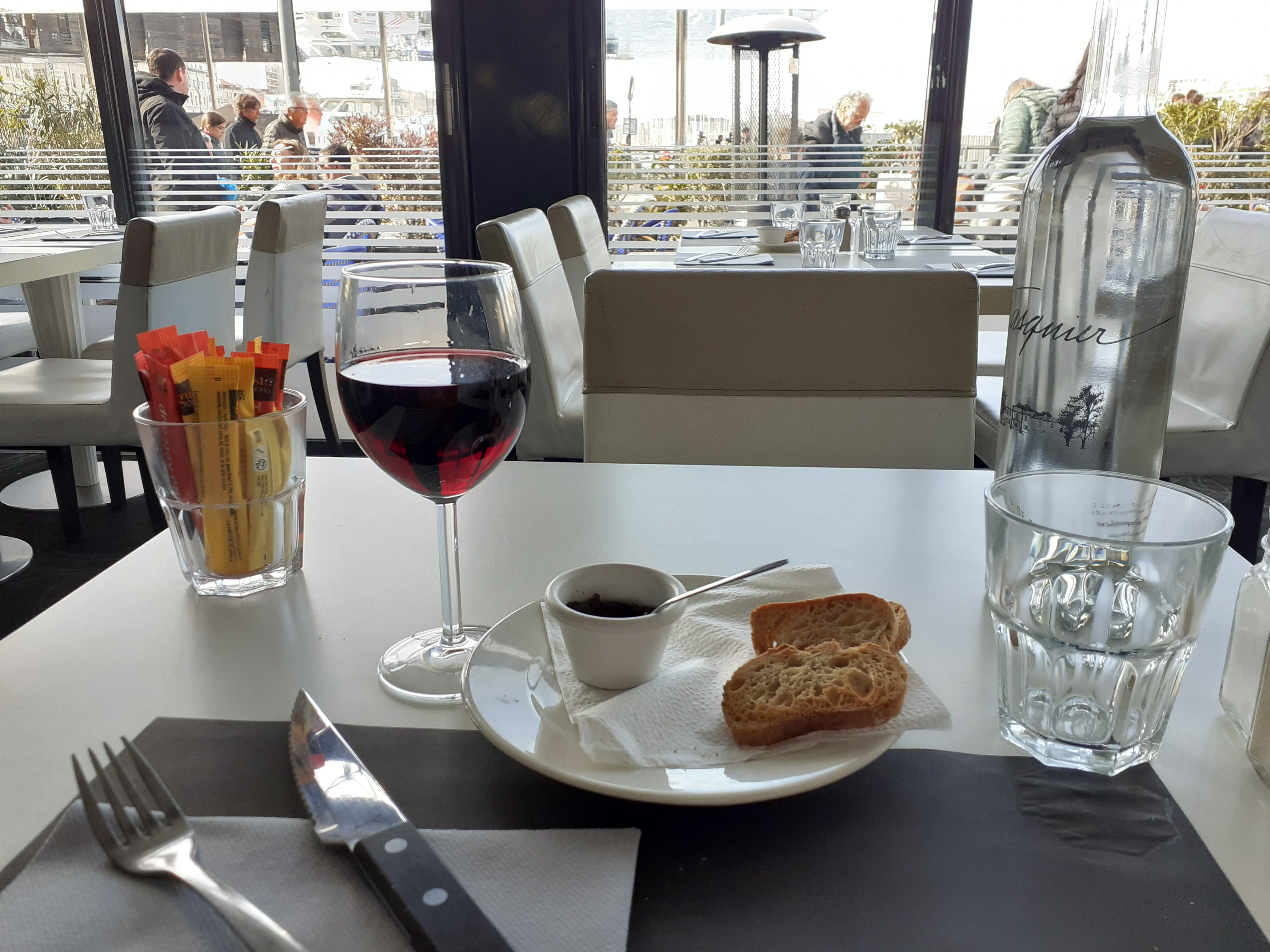 Venu pour prendre un cocktail-apéritif en fin de journée. Attablé dans un coin de la salle ensoleillé avec vue donnant sur le Vieux Port. Un agréable moment... que je me remémore !