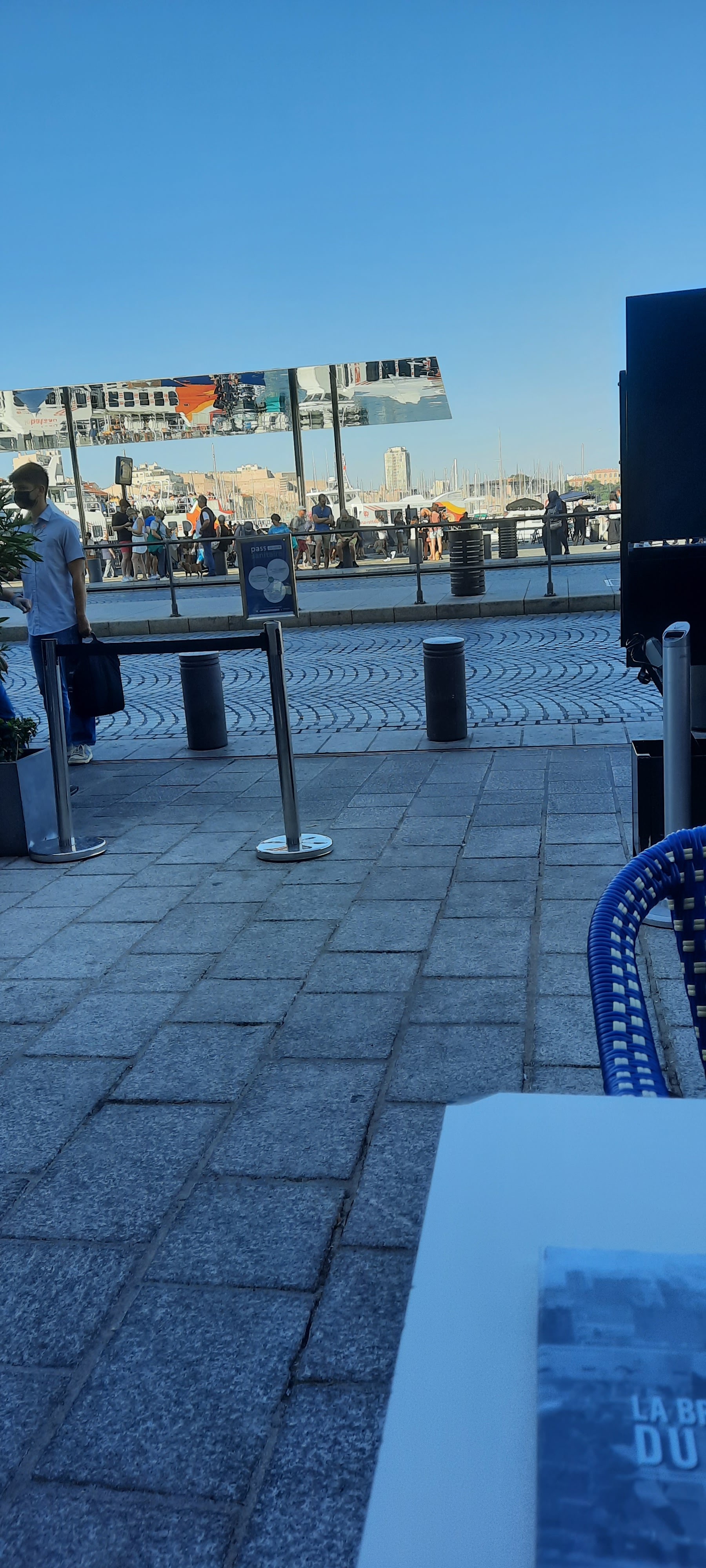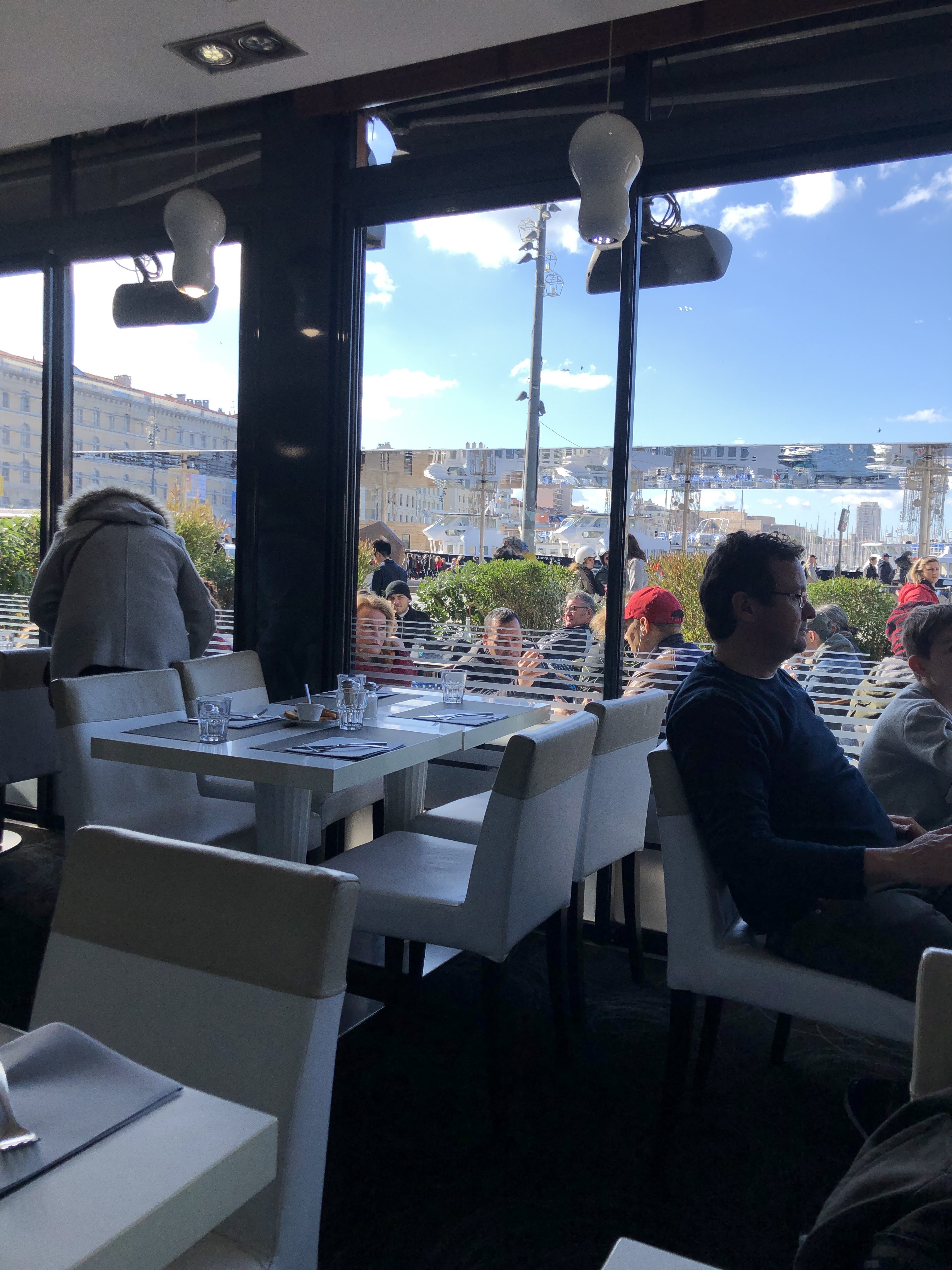Arrivé 30mn avant la réservation, nous avons été accueillis avec le sourire et avec une tapenade d'olives noires exquises (ma fille s'est regalé). Super service et de très bons plats (la daurade fraîche et excellente). Un bon déjeuner avec vue sur le vieux port et les forts de Marseille. A faire !!! Merci.