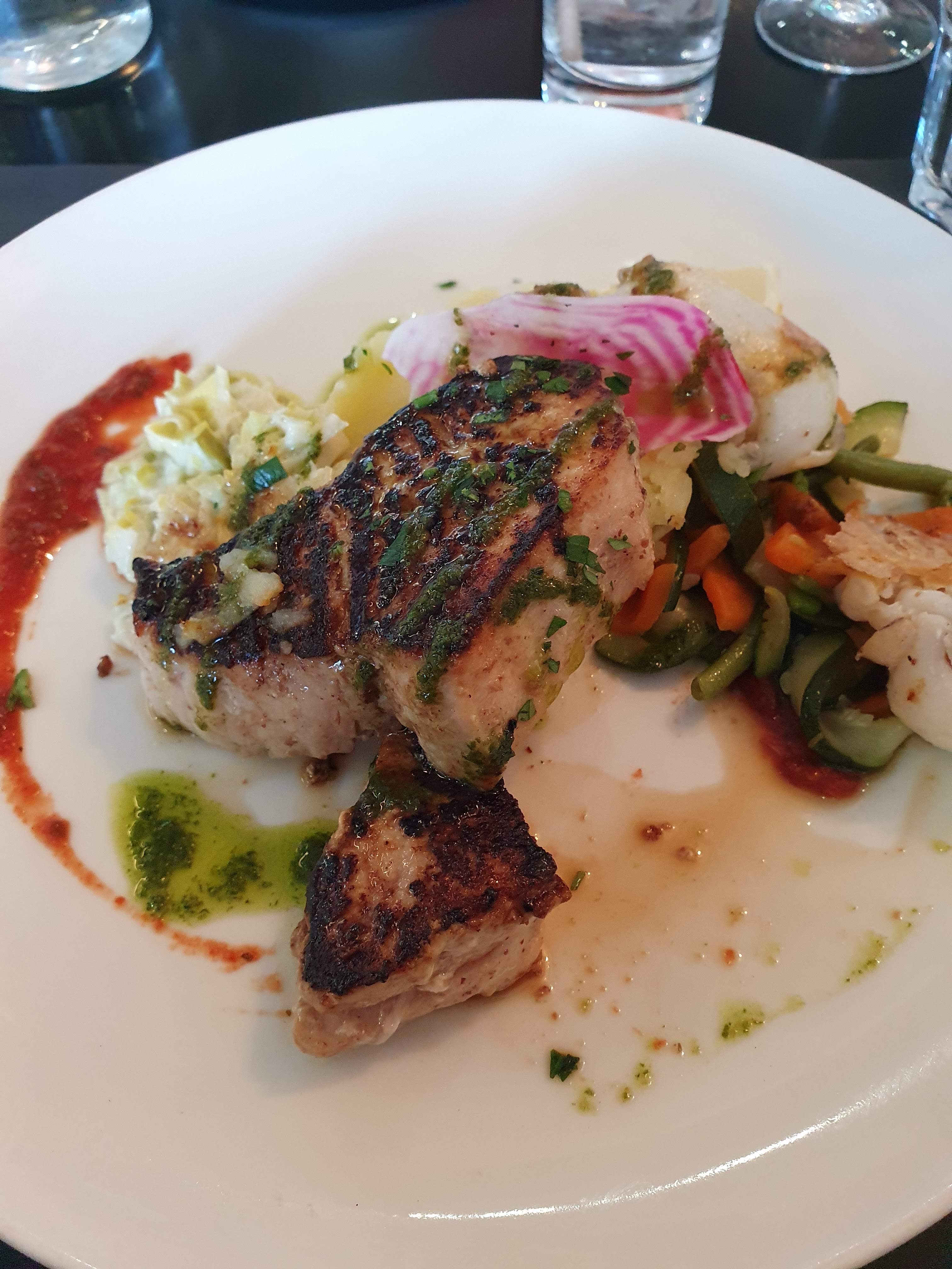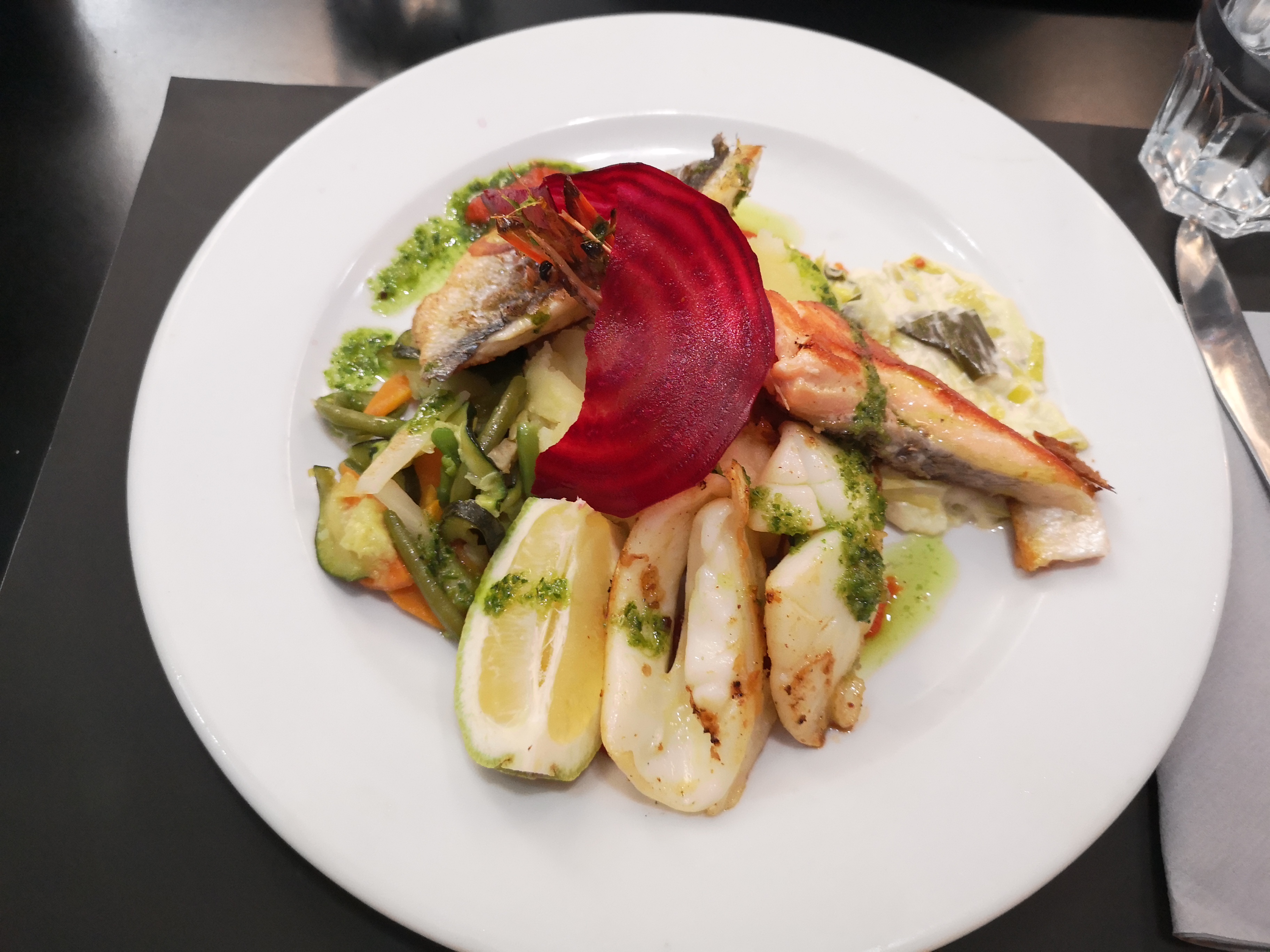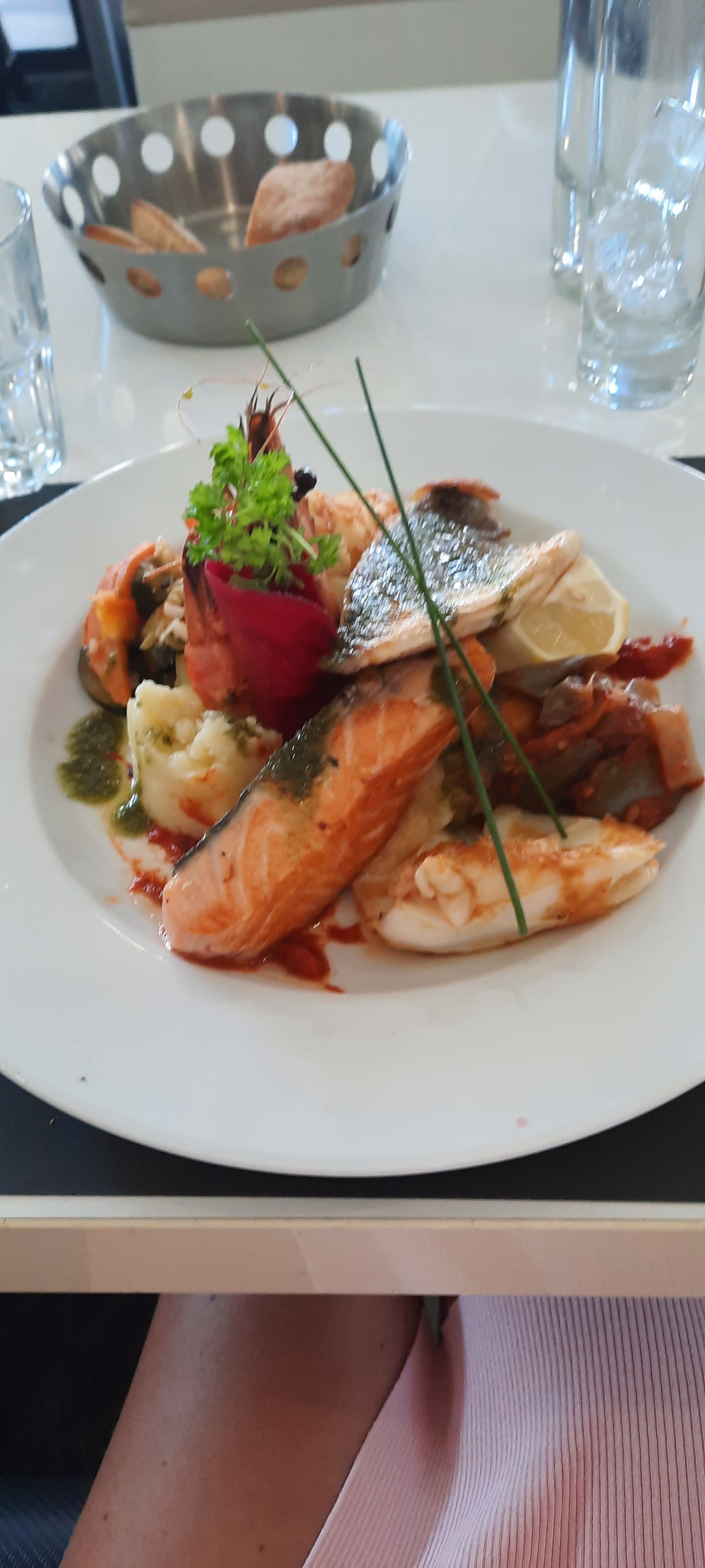 Accueil sympathique. Le service est impeccable. J'ai pris le saumon grillé. Le plat est élégant et bon. Je recommande cet établissement.
