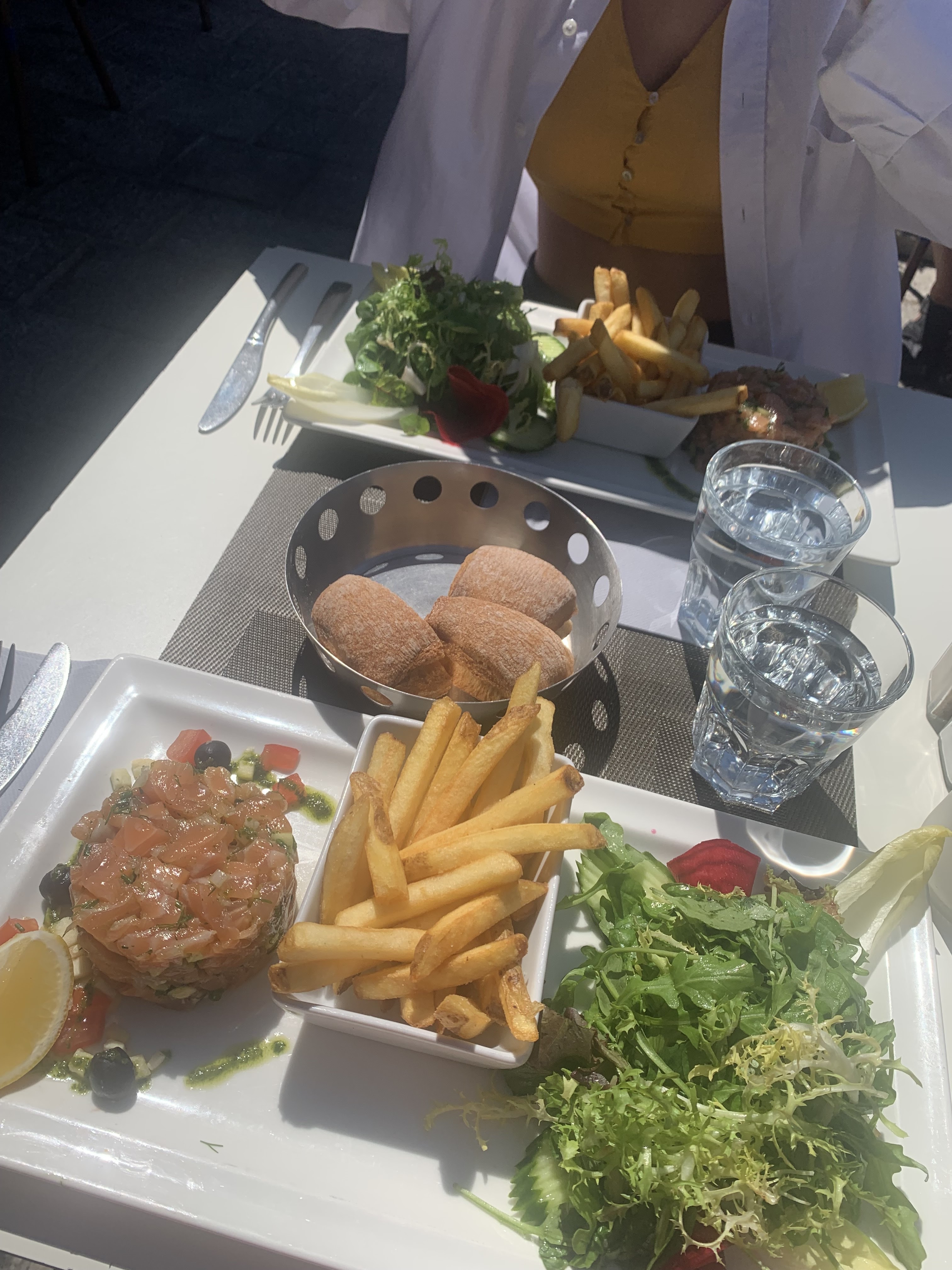 Les plats ne sont pas aussi bons que dans les autres revues...... On m'a recommandé de venir ici mais j'ai été déçue. J'ai commandé la spécialité marseillaise qui est la bouillabaisse, mais ce n'était pas bon... je n'ai pas pu la finir, ma mère non plus... le tartare n'était pas bon non plus par rapport aux autres que nous avons mangé lors de notre voyage en Europe. The dishes are not as good as in the other reviews...... I was recommended to come here but I was disappointed. I ordered the marseille specialty which is the bouillabaisse, but it was not good… I couldn’t finish it, neither did my mom… the tartare wasn’t good either compared to other ones we had during our trip in Europe.